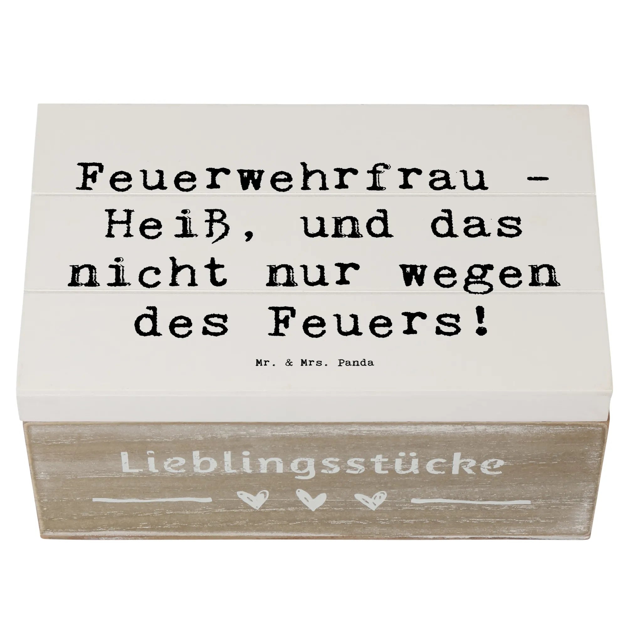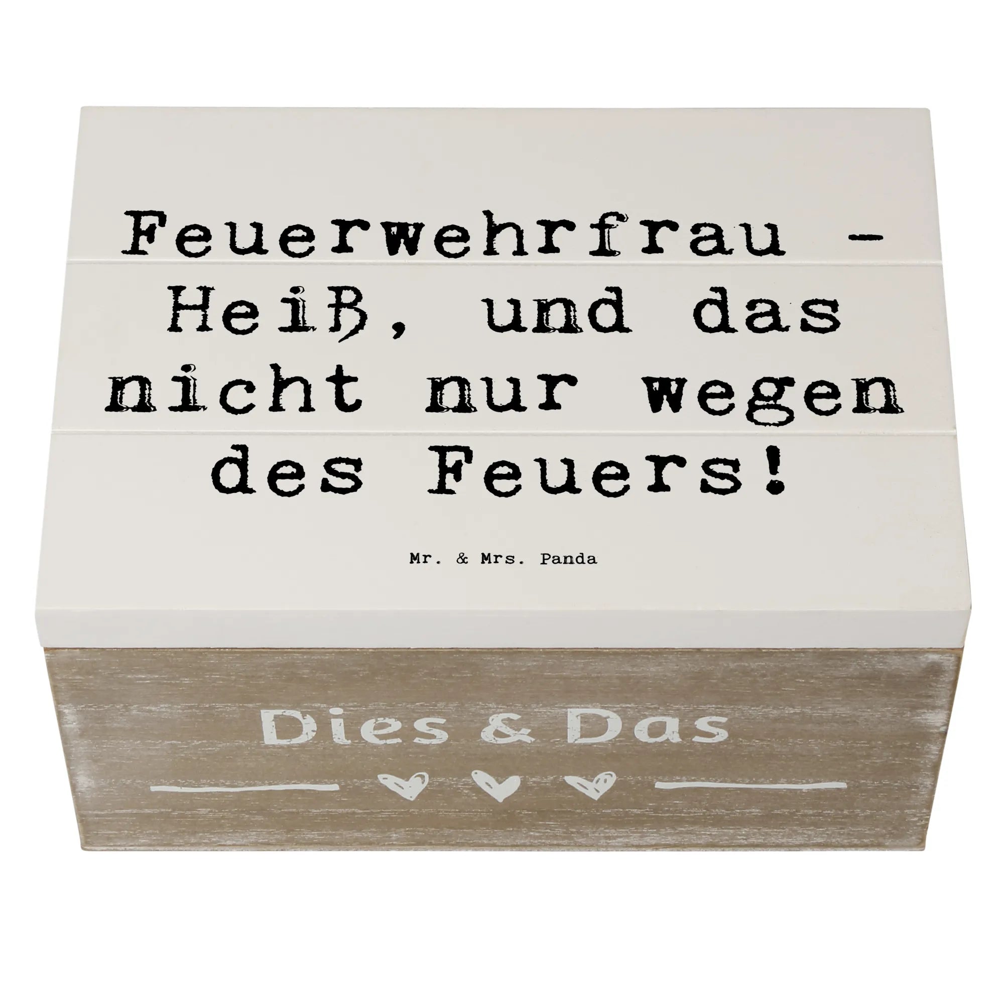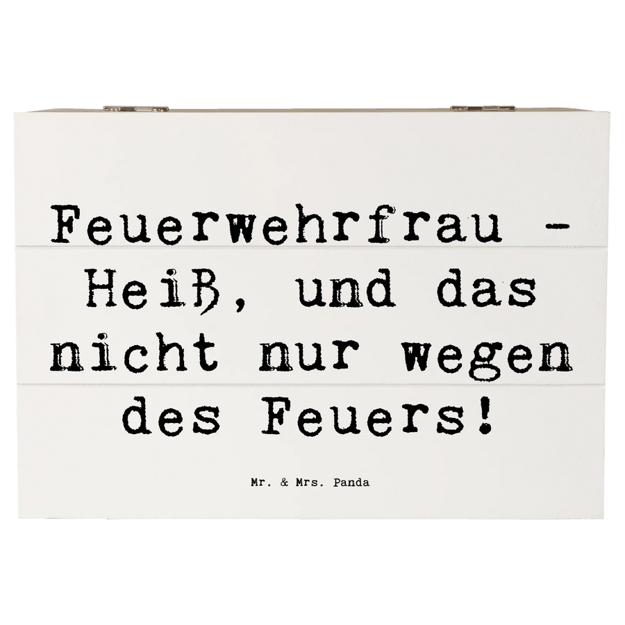 Die Holzkiste "Feuerwehrfrau - Heiß, und das nicht nur wegen des Feuers!" von Mr. & Mrs. Panda ist das perfekte Geschenk für alle Feuerwehrfrauen und solche, die es werden wollen! Diese wunderschöne Holzkiste mit einem liebevollen und humorvollen Spruch ist mehr als nur ein praktischer Aufbewahrungsort. Sie eignet sich hervorragend als Erinnerungskiste für wertvolle Momente aus der Kindheit, Kommunion oder Konfirmation und kann auch als nachhaltige Geschenkbox genutzt werden.