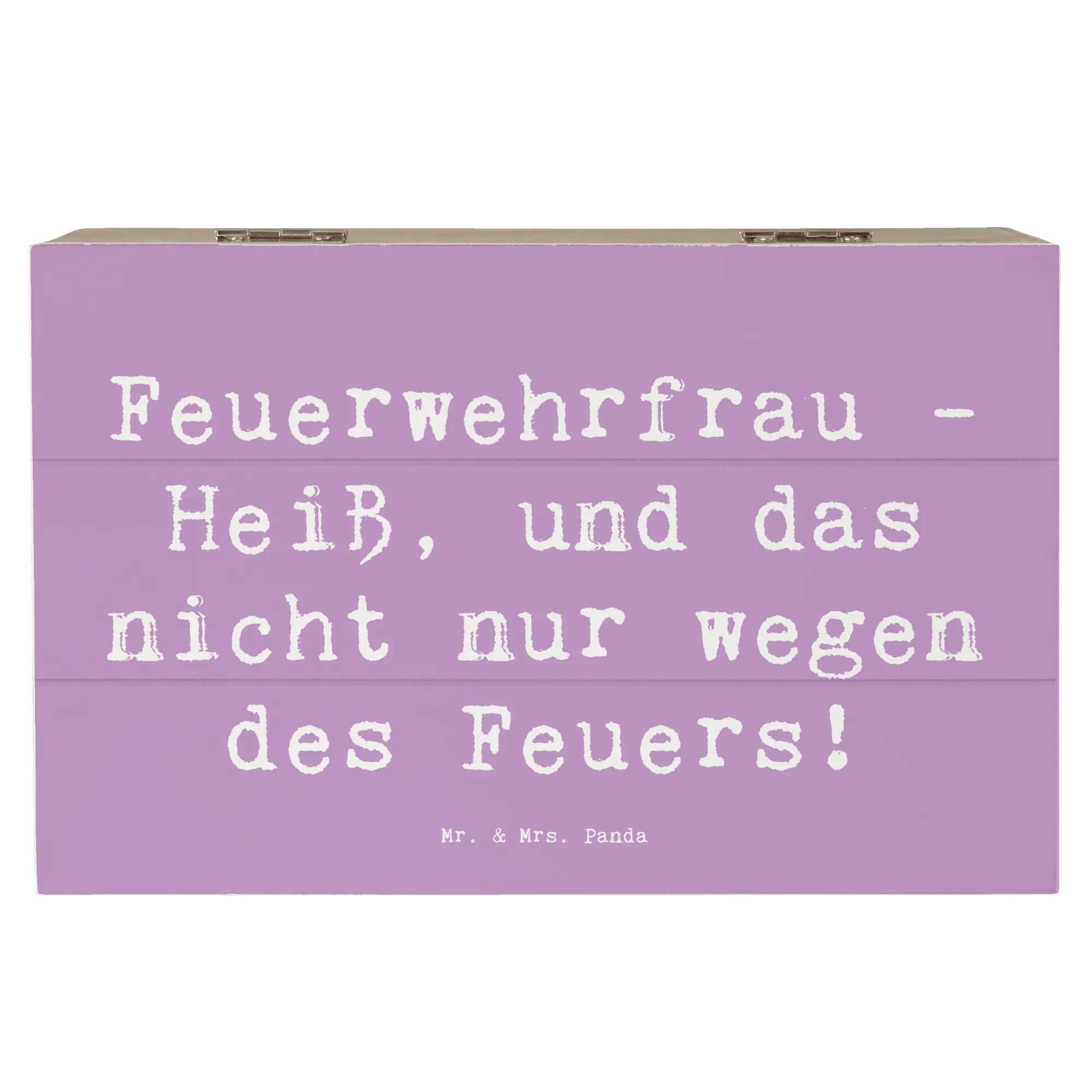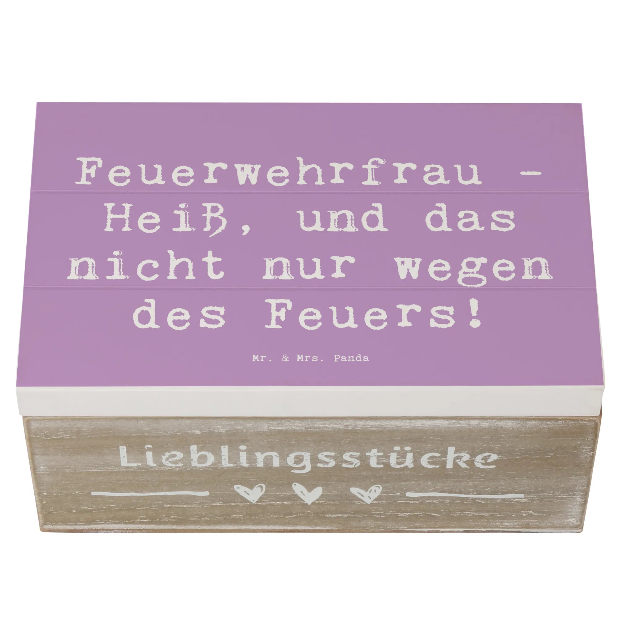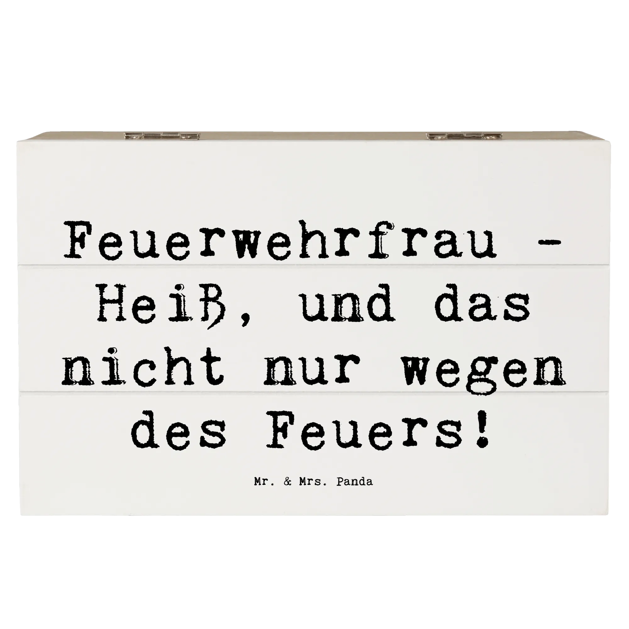Die Holzkiste "Feuerwehrfrau - Heiß, und das nicht nur wegen des Feuers!" von Mr. & Mrs. Panda ist das perfekte Geschenk für alle Feuerwehrfrauen und solche, die es werden wollen! Diese wunderschöne Holzkiste mit einem liebevollen und humorvollen Spruch ist mehr als nur ein praktischer Aufbewahrungsort. Sie eignet sich hervorragend als Erinnerungskiste für wertvolle Momente aus der Kindheit, Kommunion oder Konfirmation und kann auch als nachhaltige Geschenkbox genutzt werden.