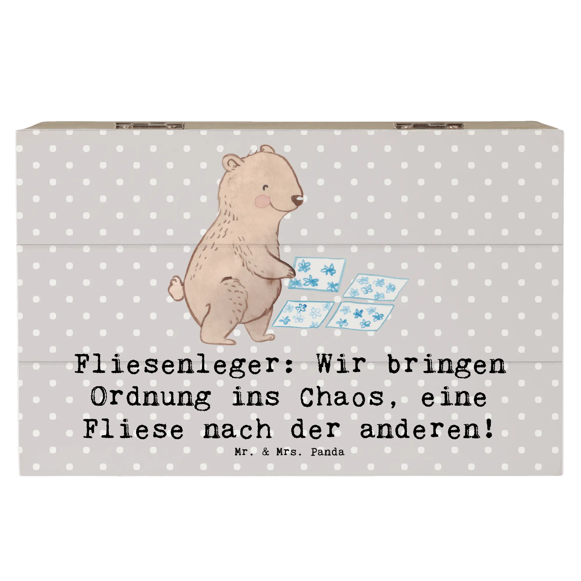 Die wunderschöne Holzkiste von Mr. & Mrs. Panda ist mehr als nur eine Aufbewahrungsbox – sie ist ein kleines Schatzkästchen für all deine wertvollen Erinnerungen! Mit dem liebevoll gestalteten Motiv "Fliesenleger: Wir bringen Ordnung ins Chaos, eine Fliese nach der anderen!" wird diese Kiste zum perfekten Begleiter für alle Handwerker und Fliesenleger.