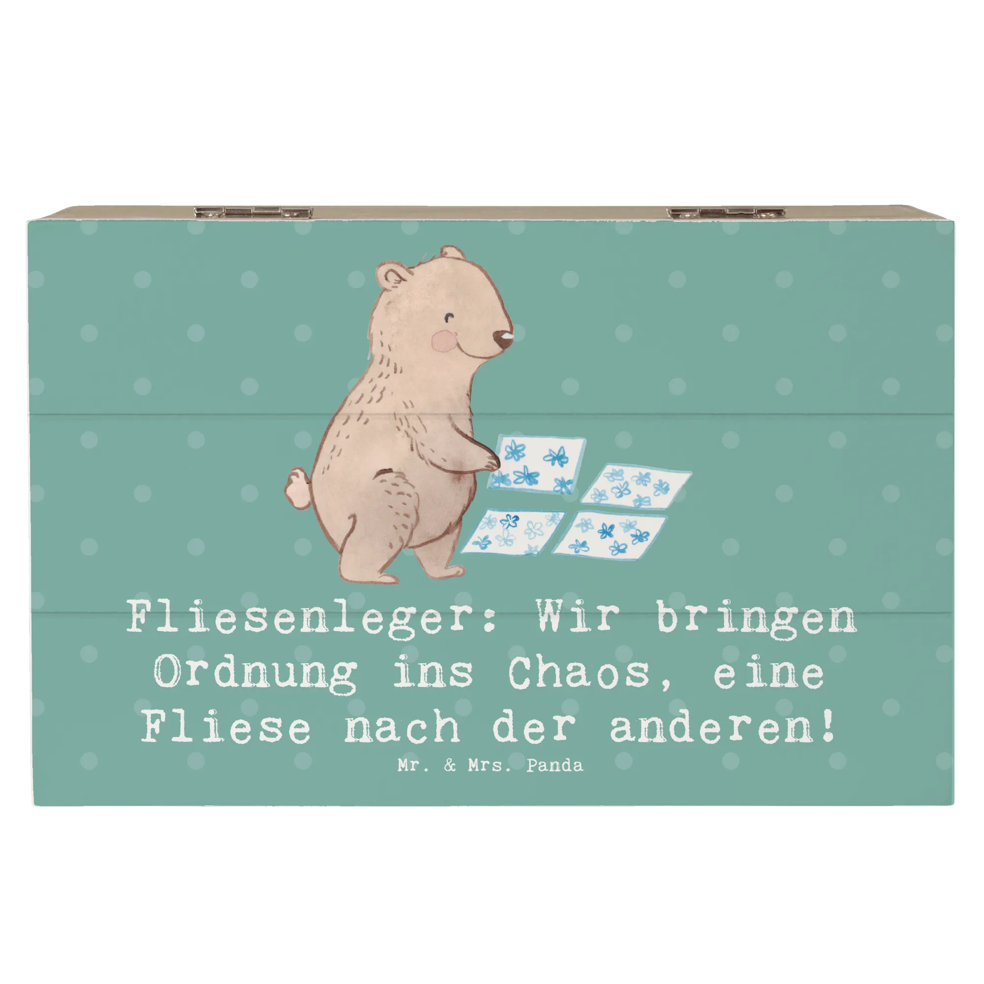 Die wunderschöne Holzkiste von Mr. & Mrs. Panda ist das perfekte Geschenk für all jene, die einen besonderen Platz für ihre Erinnerungen schaffen möchten. Mit dem liebevollen Motiv 'Fliesenleger: Wir bringen Ordnung ins Chaos, eine Fliese nach der anderen!' aus der charmanten Berufe-Kollektion ist diese Kiste nicht nur praktisch, sondern auch ein echter Hingucker.