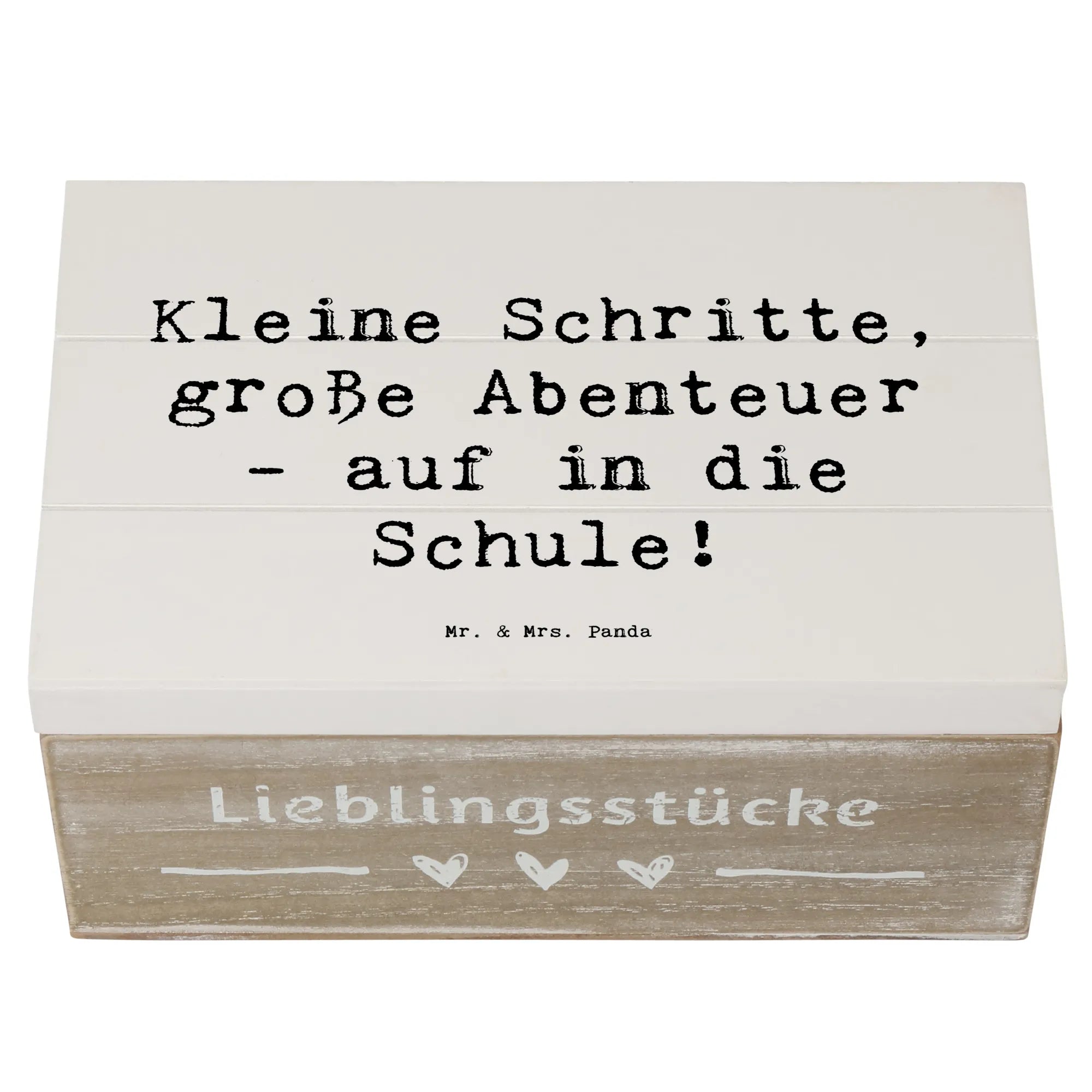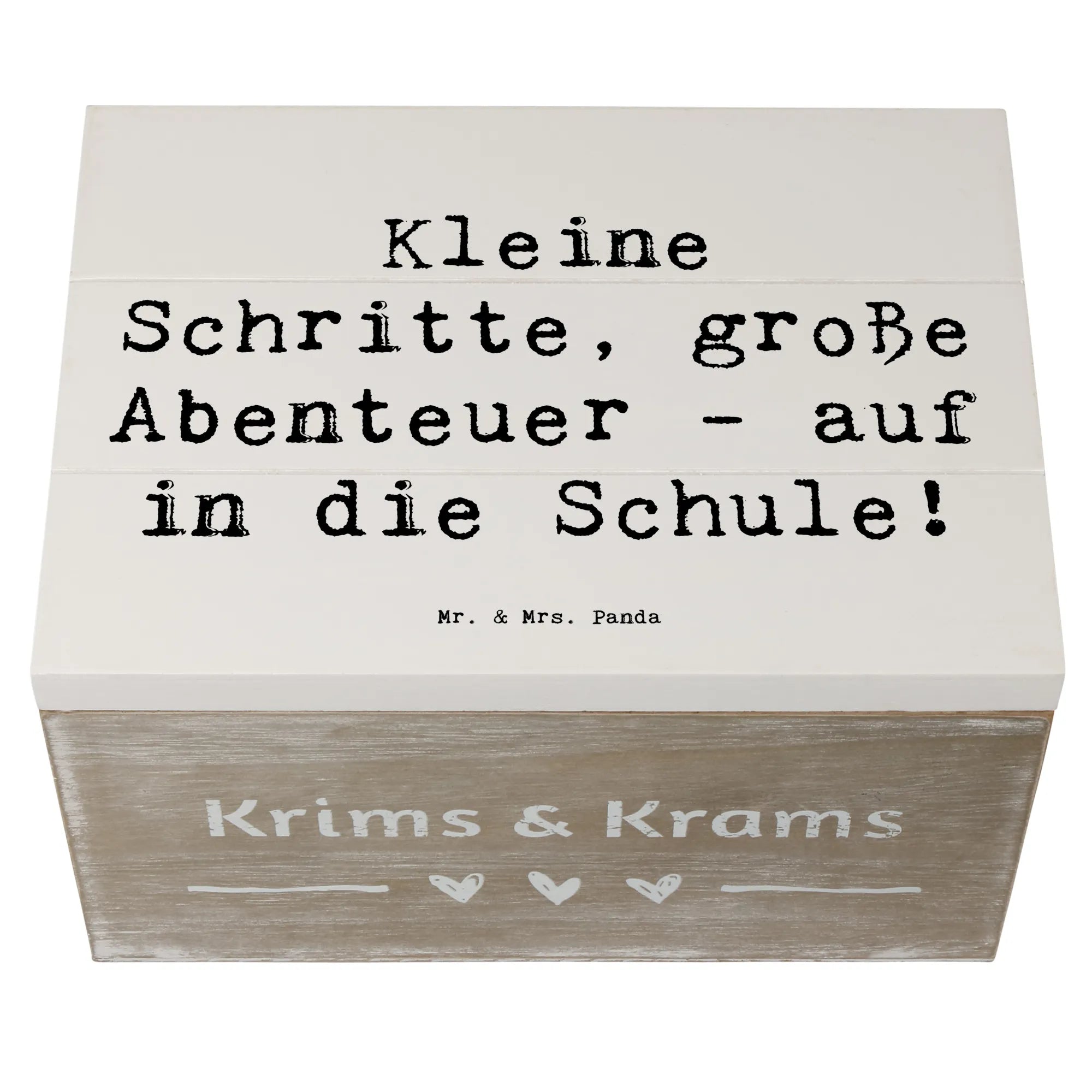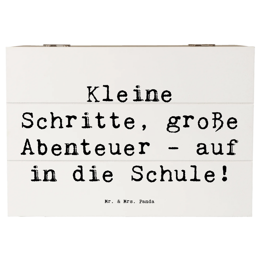 Die wunderschöne Holzkiste von Mr. & Mrs. Panda, bedruckt mit dem herzerwärmenden Spruch "Kleine Schritte, große Abenteuer - auf in die Schule!" aus der besonderen 'Mutmacher'-Kollektion, ist das perfekte Geschenk zum Schulanfang. Diese Erinnerungskiste ist nicht nur als stilvolle Aufbewahrung für die ersten Schätze deines Kindes gedacht, sondern auch als liebevolles Symbol für all die großen Abenteuer, die noch kommen werden.