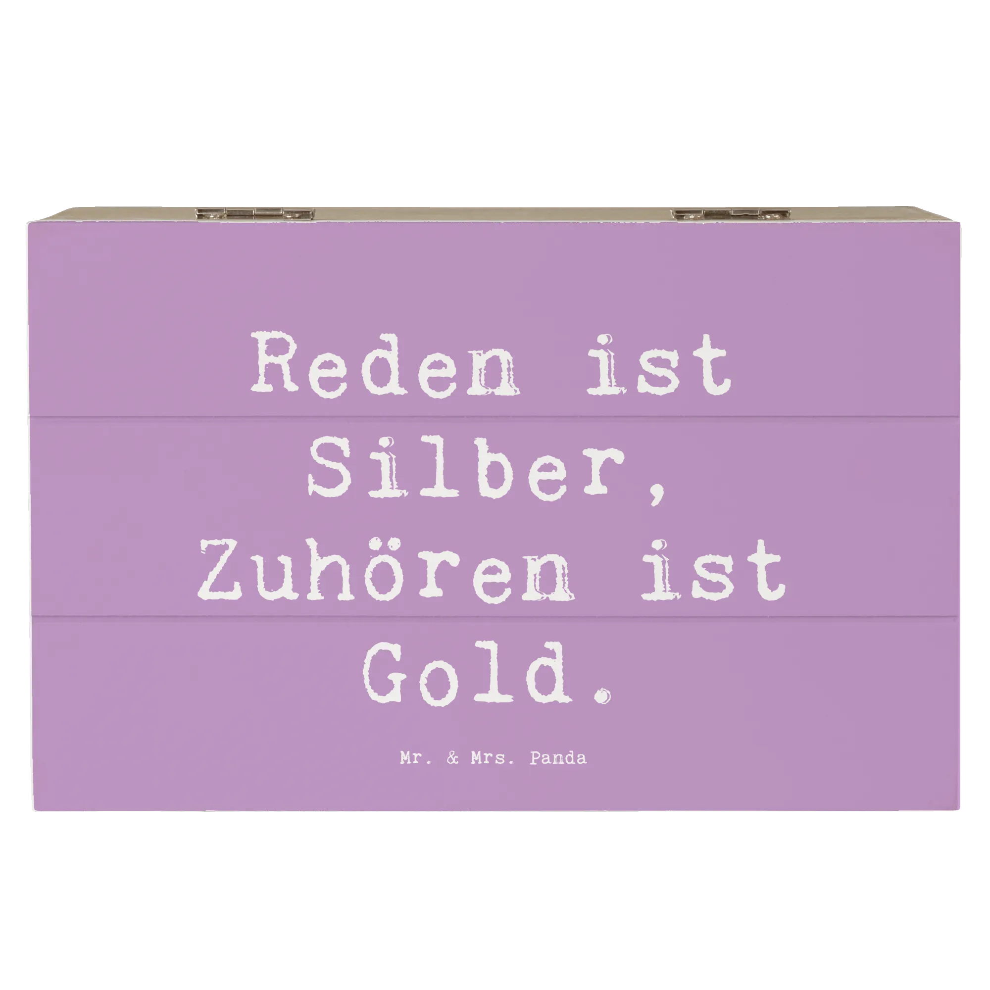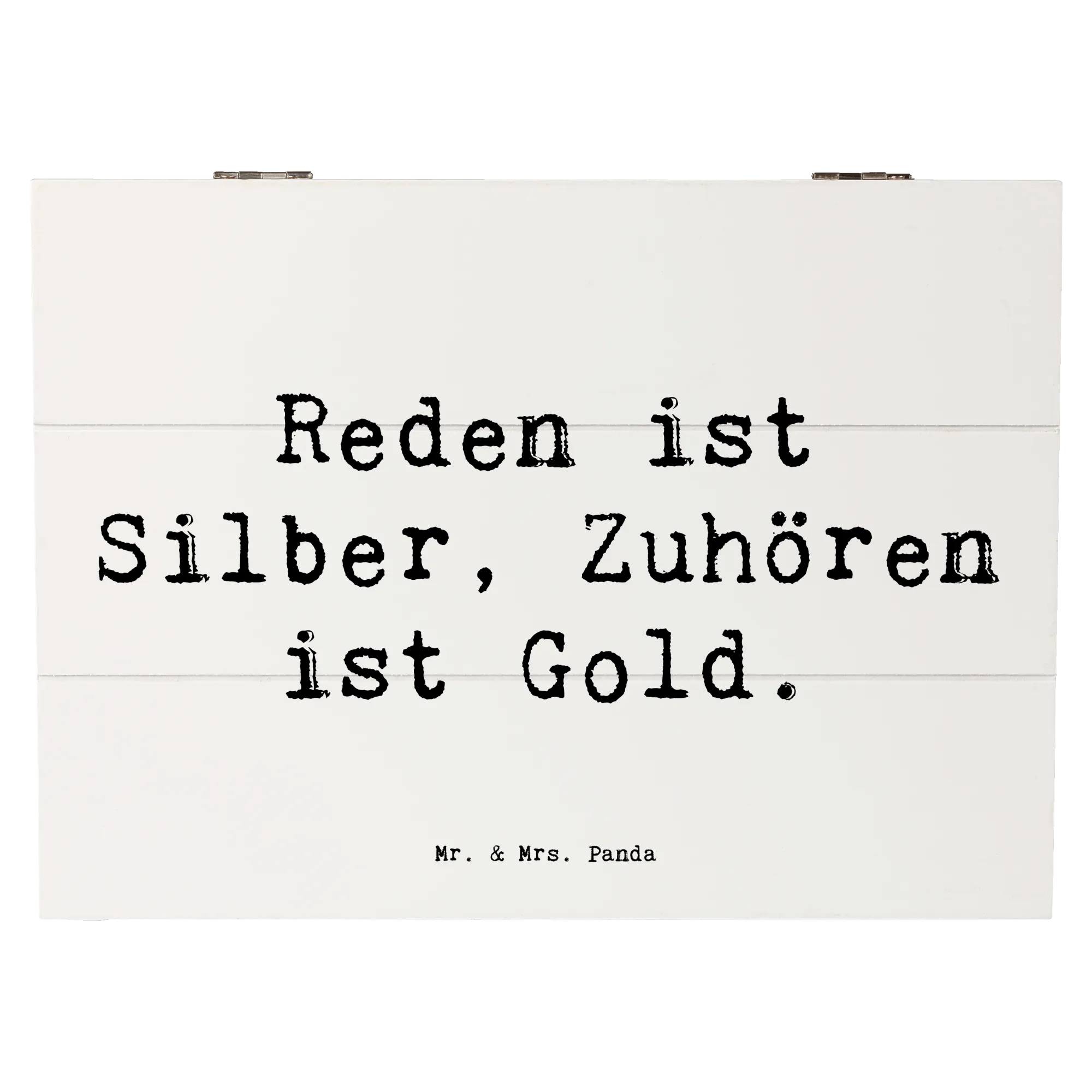 Die Botschaft "Reden ist Silber, Zuhören ist Gold." ziert die Kiste und erinnert sowohl den Beschenkten als auch den Schenkenden daran, wie wichtig Verständnis und Kommunikation in jedem zwischenmenschlichen Verhältnis sind. Diese Kiste ist die perfekte Wahl für Menschen, die auf ein harmonisches Miteinander Wert legen und sich für friedliche Lösungen in Konfliktsituationen einsetzen möchten.
