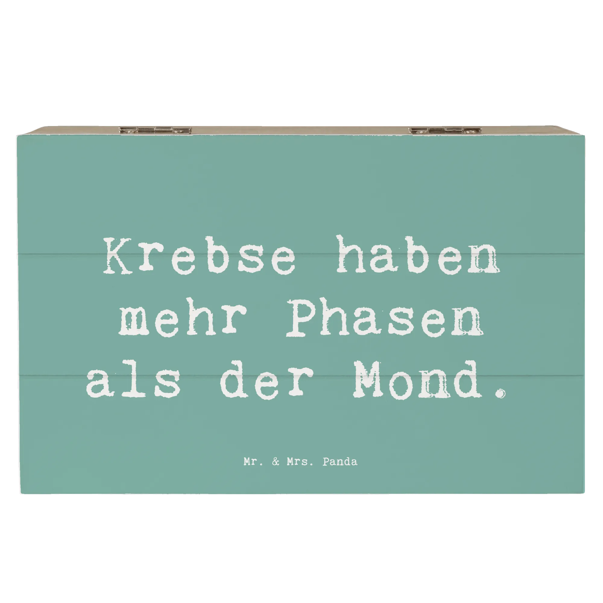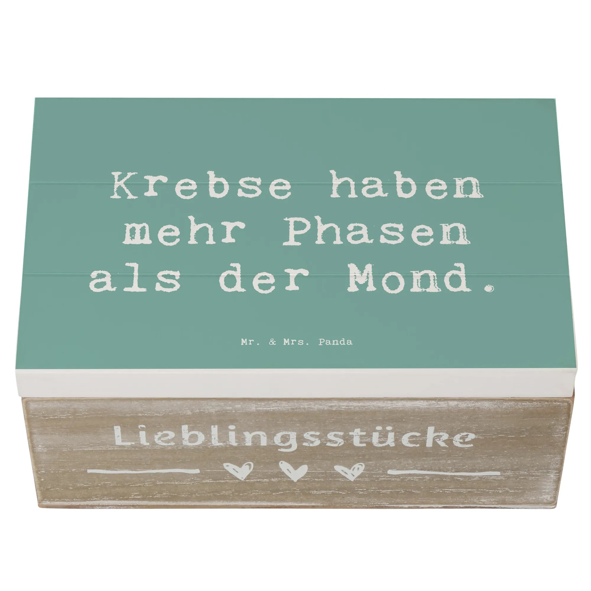 Die wunderschöne Holzkiste von Mr. & Mrs. Panda ist das ideale Geschenk für jeden Krebs-Geborenen! Mit dem liebevollen Spruch "Krebse haben mehr Phasen als der Mond" gespickt, enthält diese Erinnerungskiste nicht nur Platz für all deine besonderen Schätze, sondern bringt auch ein Lächeln auf die Gesichter deiner Liebsten.