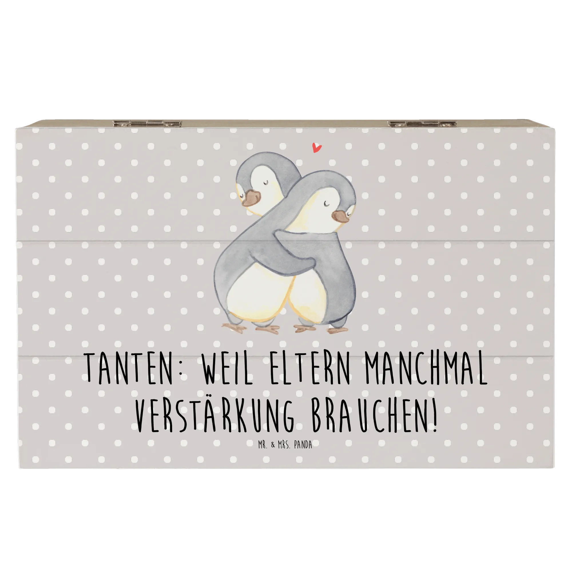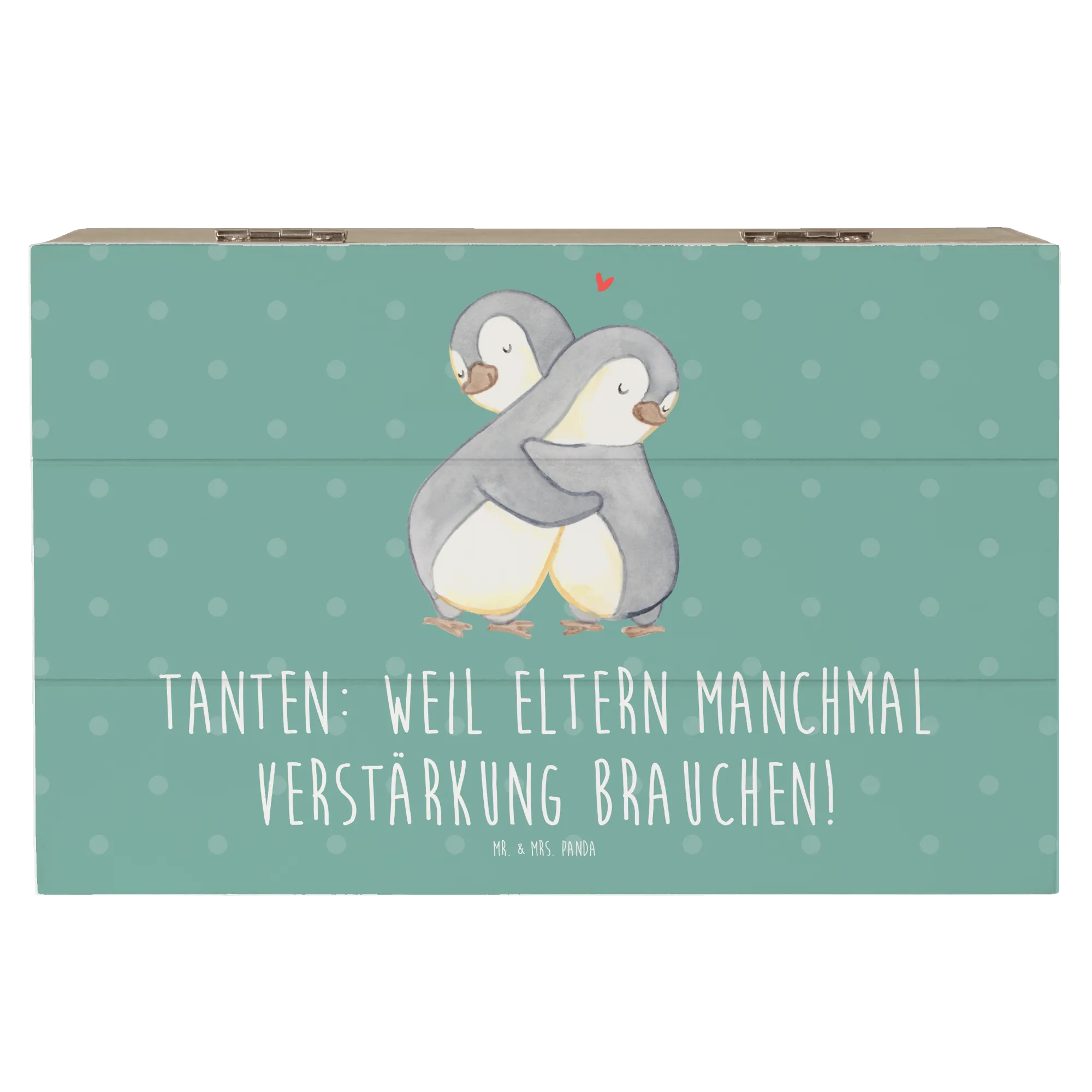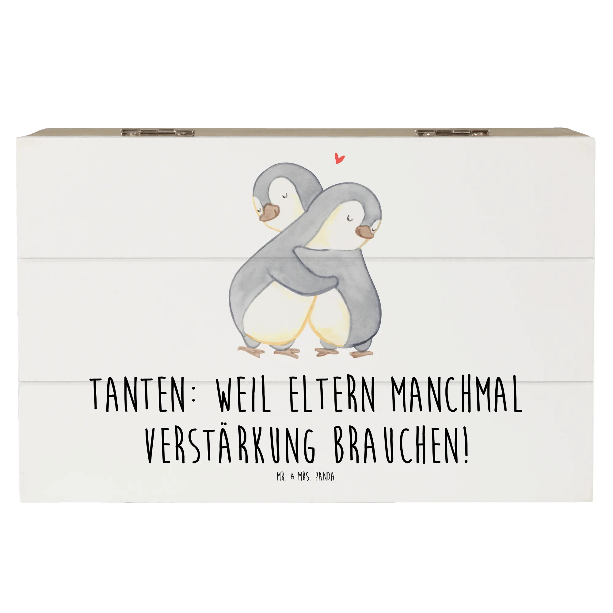 Die wunderschöne Holzkiste von Mr. & Mrs. Panda ist das perfekte Geschenk für deine Tante! Mit dem liebevollen Motiv und dem Spruch "Tanten: Weil Eltern manchmal Verstärkung brauchen!" wird diese Kiste nicht nur zum Aufbewahrungsort von besonderen Schätzen, sondern auch zu einem Symbol der Wertschätzung für all die lieben Tanten da draußen.