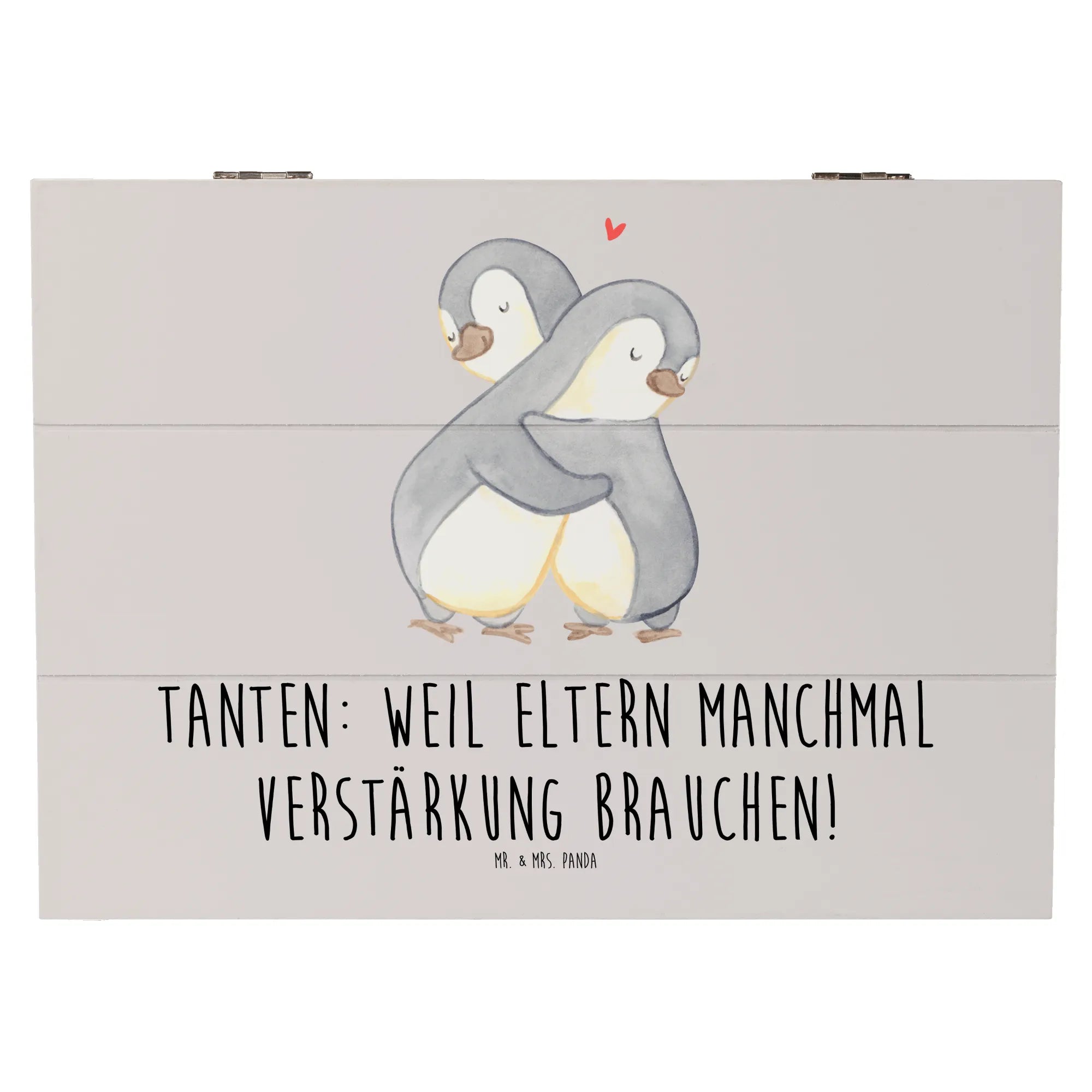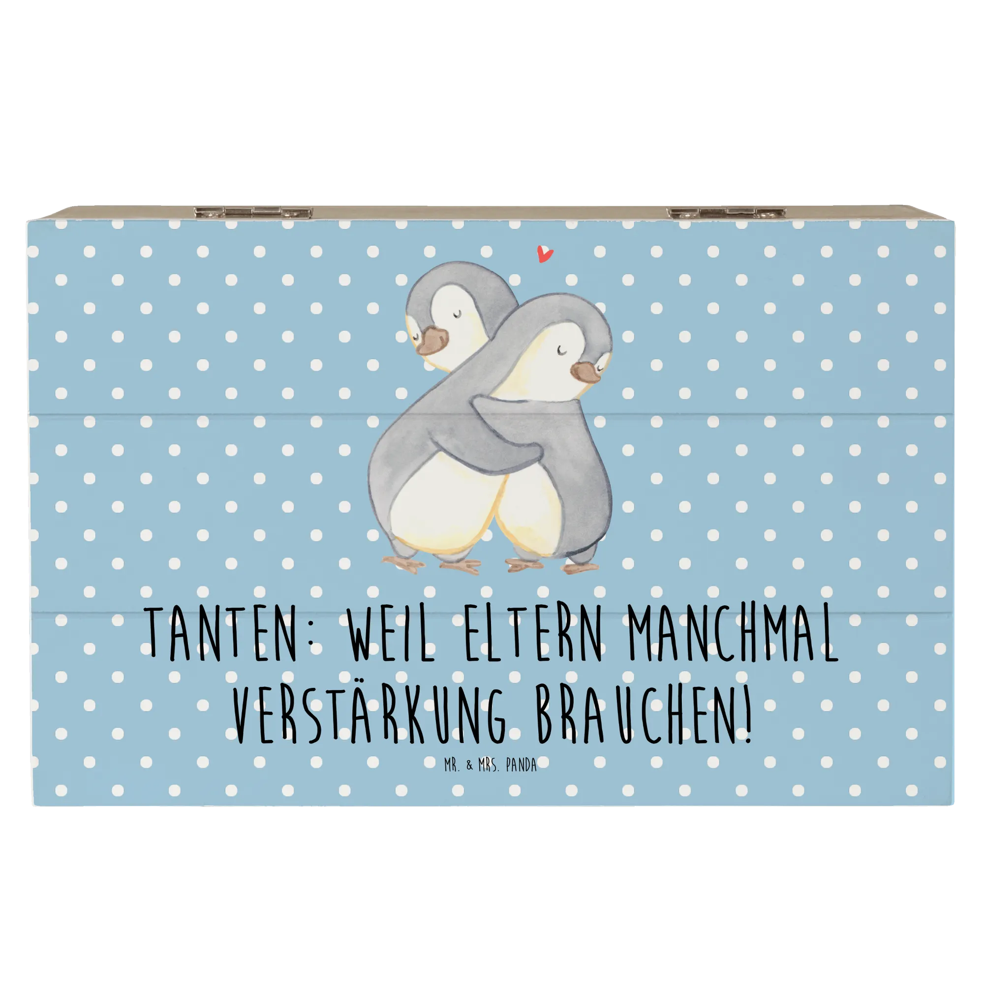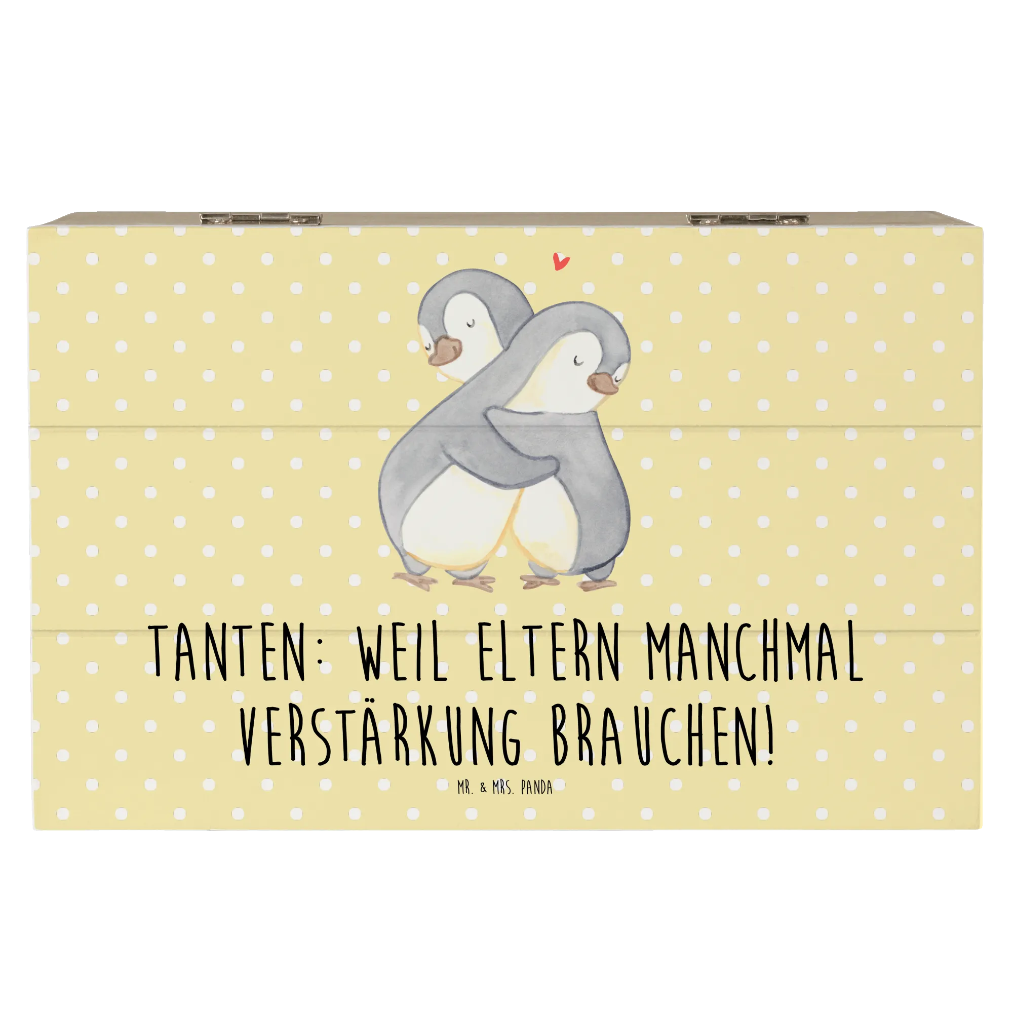 Die wunderschöne Holzkiste von Mr. & Mrs. Panda ist das perfekte Geschenk für deine Tante! Mit dem liebevollen Motiv und dem Spruch "Tanten: Weil Eltern manchmal Verstärkung brauchen!" wird diese Kiste nicht nur zum Aufbewahrungsort von besonderen Schätzen, sondern auch zu einem Symbol der Wertschätzung für all die lieben Tanten da draußen.