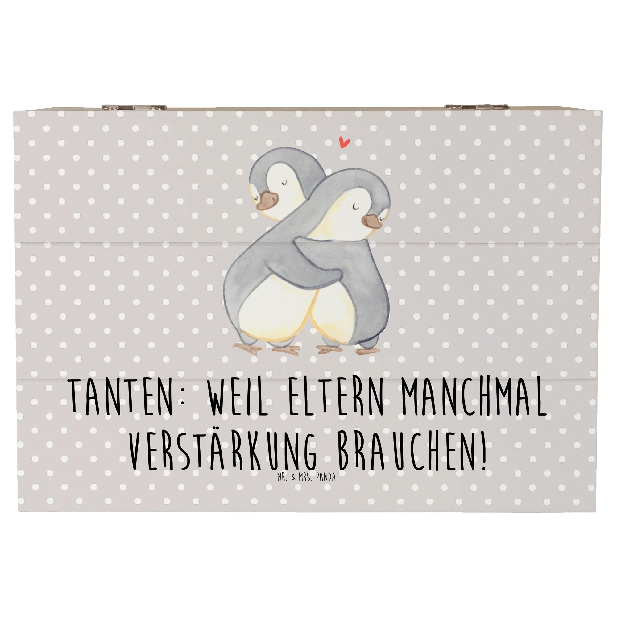 Die wunderschöne Holzkiste von Mr. & Mrs. Panda ist das perfekte Geschenk für Deine Tante und alle, die Dir am Herzen liegen. Mit dem liebevollen Motiv 'Tante' und dem herzerwärmenden Spruch 'Tanten: Weil Eltern manchmal Verstärkung brauchen!', wird diese Kiste zu einem ganz besonderen Aufbewahrungsort für liebevolle Erinnerungen. Egal ob zum Geburtstag, als Dankeschön oder zur Feier der besonderen Beziehung zwischen Tanten und Neffen oder Nichten, diese Kiste ist ideal für jeden Anlass.