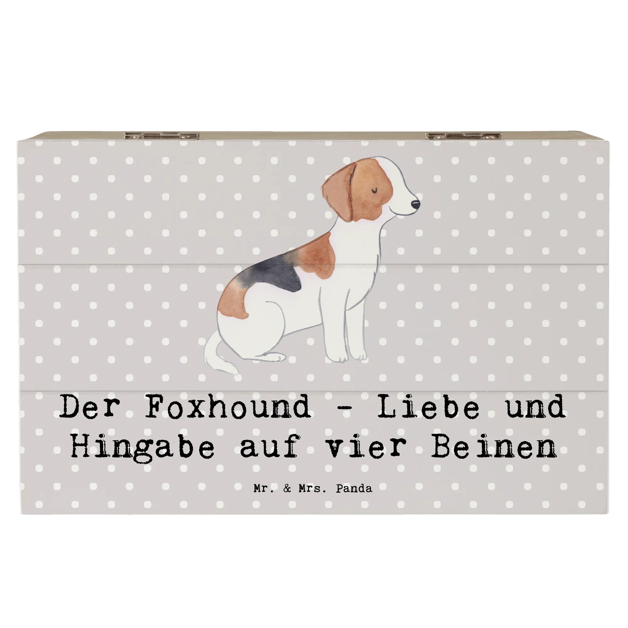 Holzkiste Liebevoller Foxhound - 22 x 15 cm - Grau Pastell