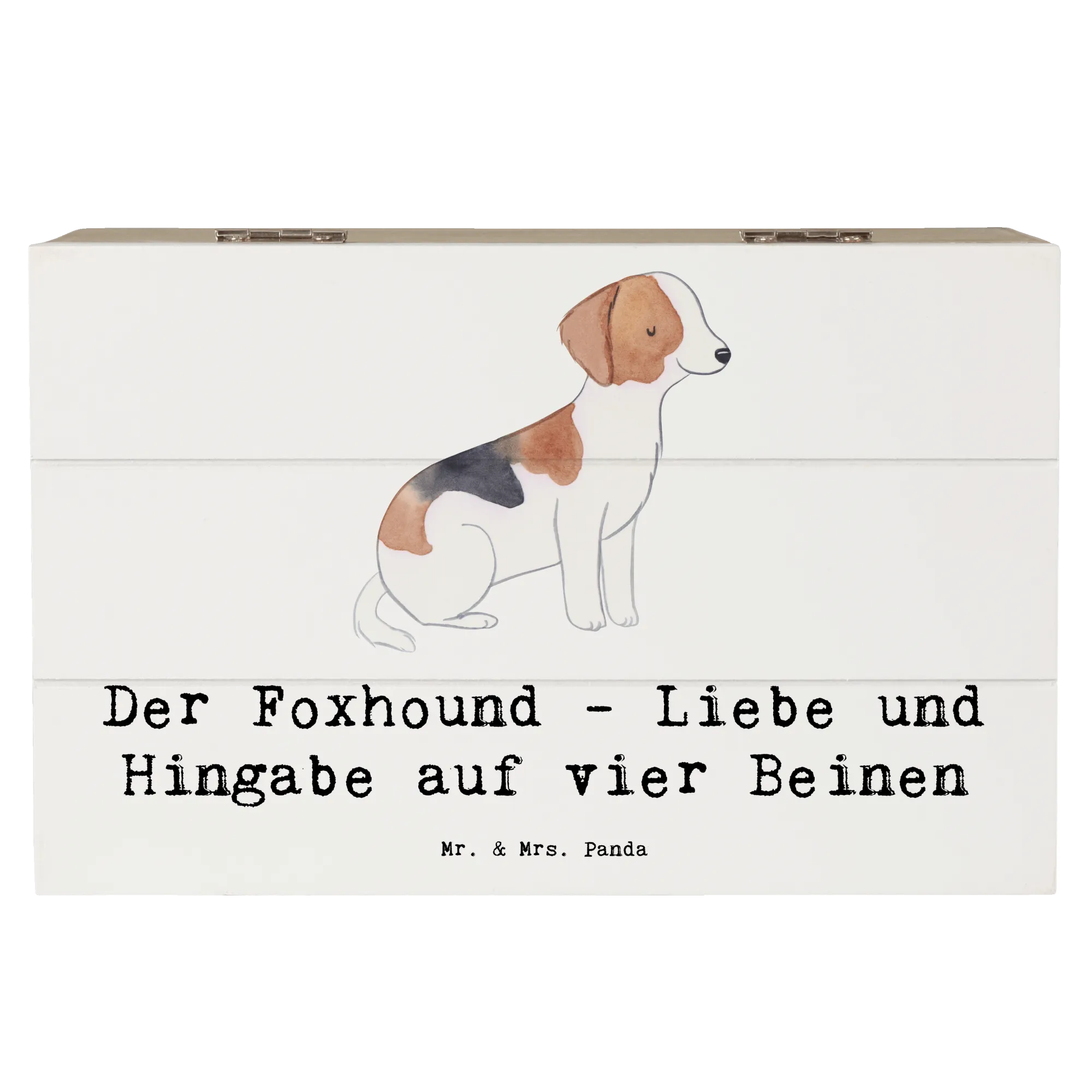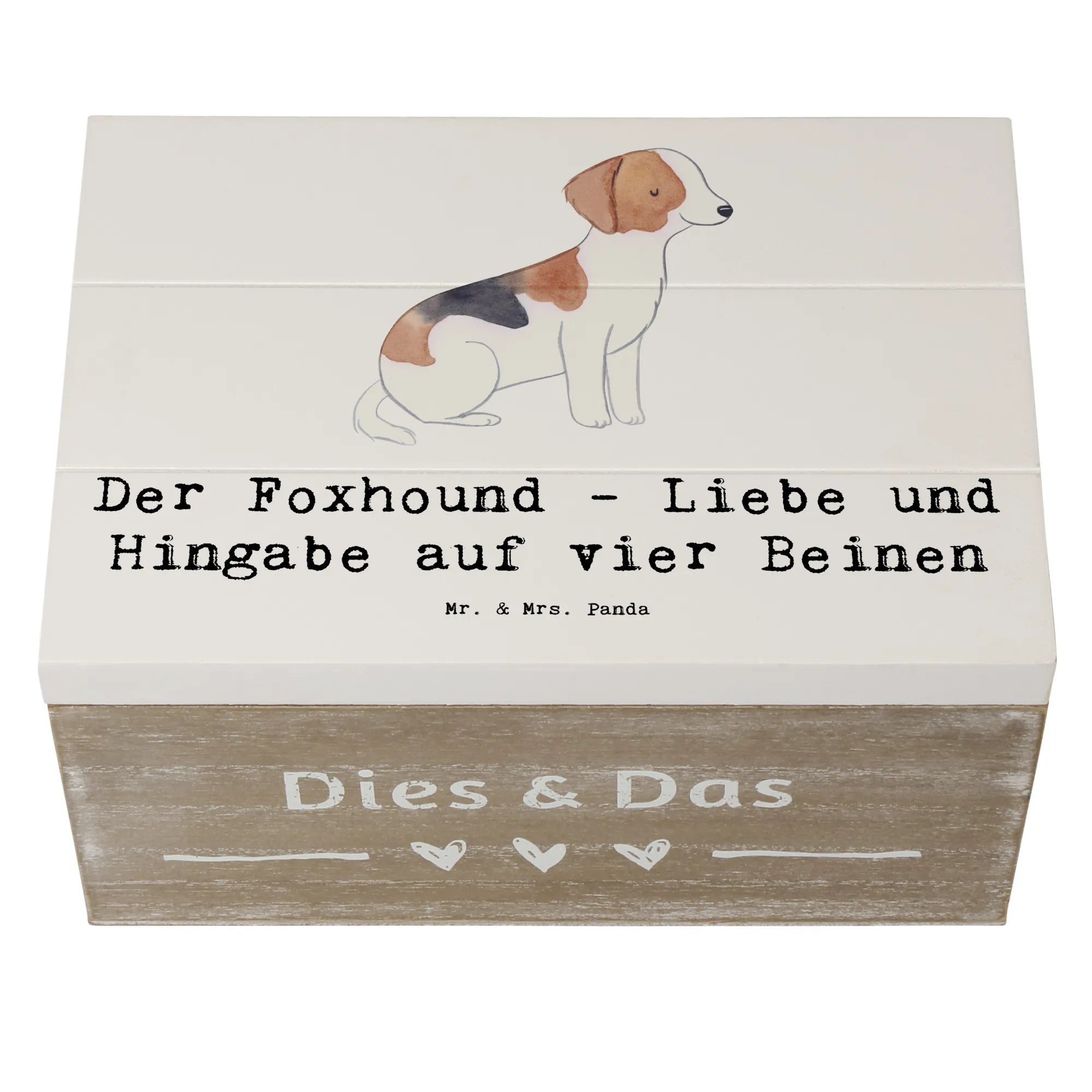 Das besondere Motiv des Foxhound, verziert mit dem liebevollen Slogan 'Der Foxhound - Liebe und Hingabe auf vier Beinen', ist perfekt für alle Hundeliebhaber und ziert die Kiste mit einem Hauch von Freude. Die Hunderasse-Kollektion von Mr. & Mrs. Panda umfasst eine Vielzahl von Motiven, die mit viel Liebe und Leidenschaft von Mrs. Panda handgezeichnet wurden.