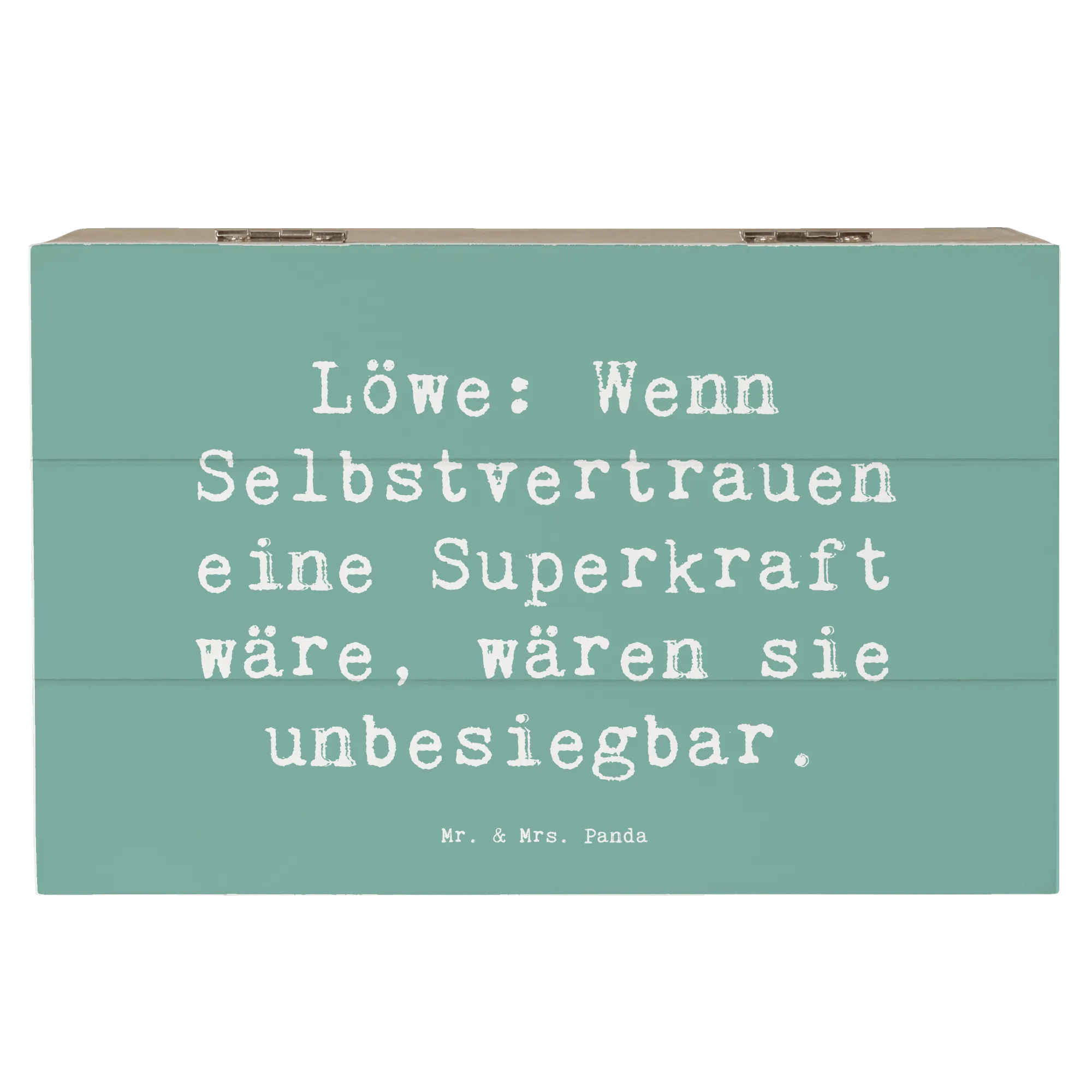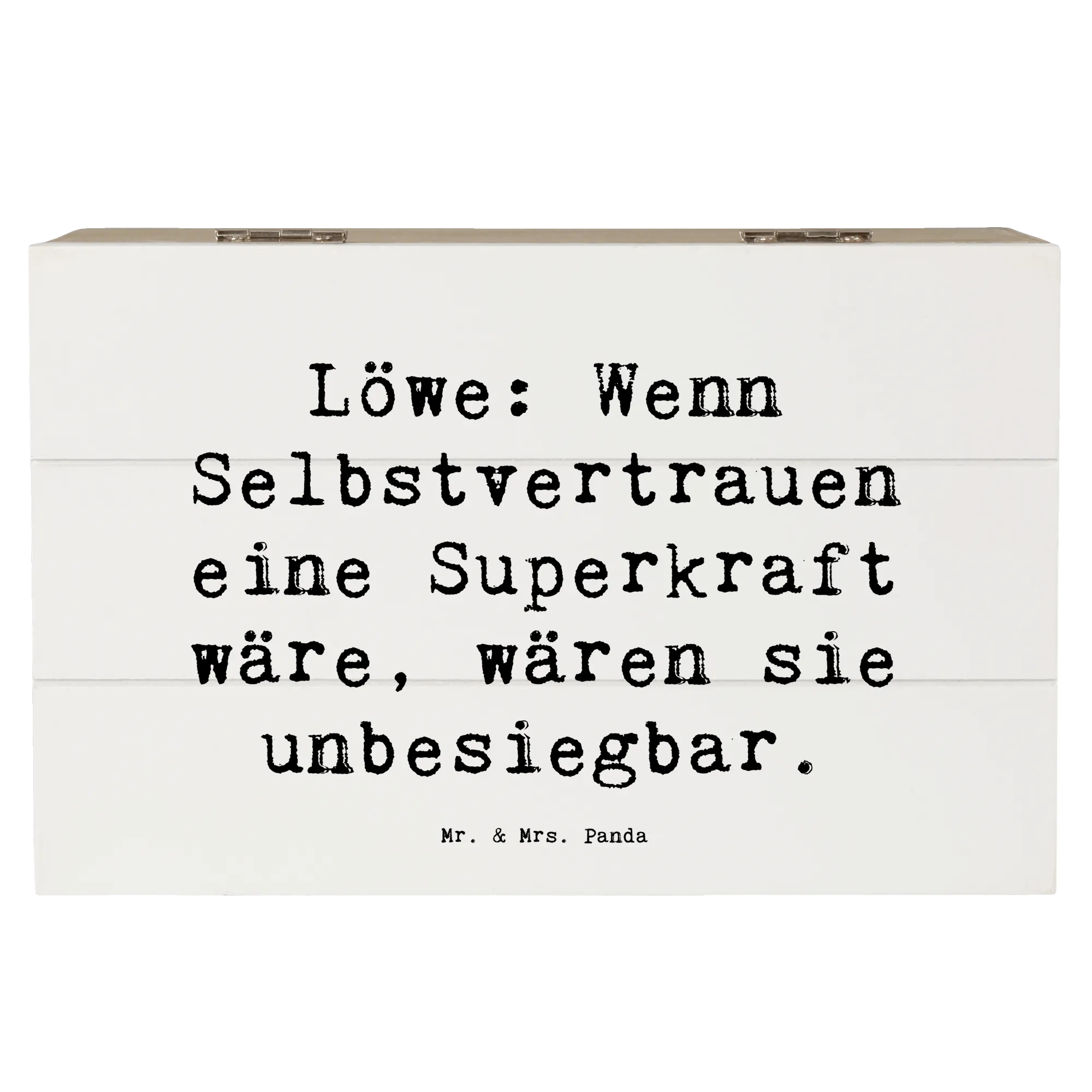 Mit den Maßen 25 x 18 cm und einem robusten Material aus hochwertiger Holzfaser bietet sie ausreichend Platz für deine Erinnerungen, Fotos oder besondere Andenken. Der niedliche Löwe, der auf der Kiste prangt, wird mit dem Spruch "Löwe: Wenn Selbstvertrauen eine Superkraft wäre, wären sie unbesiegbar." ergänzt, was sie zu einem besonders bedeutungsvollen Geschenk macht.