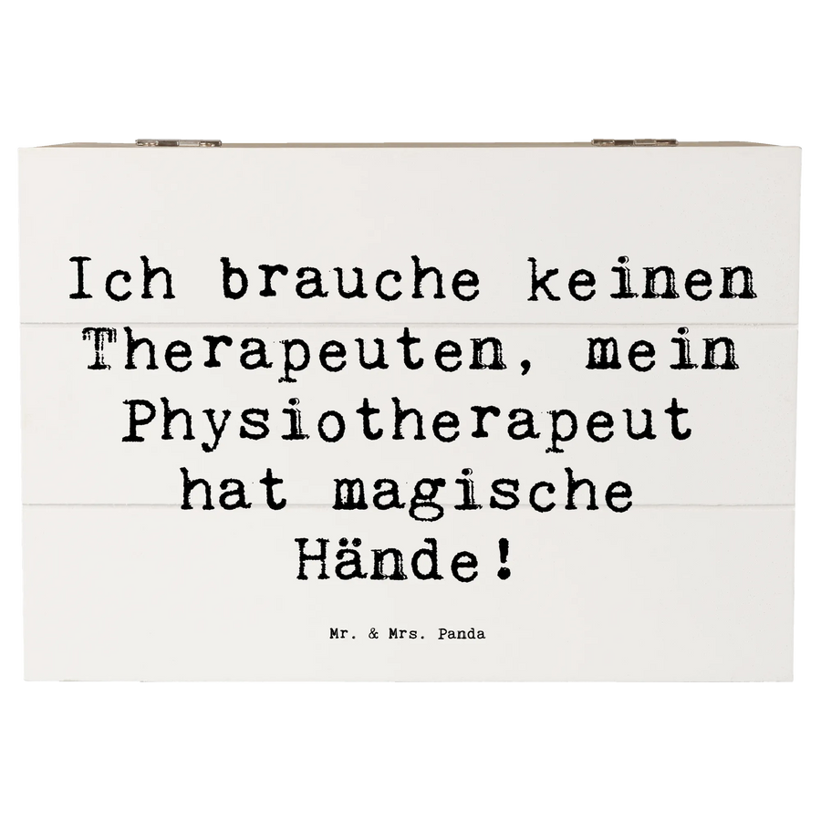 Die wunderschöne Holzkiste von Mr. & Mrs. Panda mit dem liebevollen Motive "Ich brauche keinen Therapeuten, mein Physiotherapeut hat magische Hände!" ist das perfekte Geschenk für alle, die in der Welt der Physiotherapie tätig sind oder große Wertschätzung für diese wichtige Berufsgruppe haben.