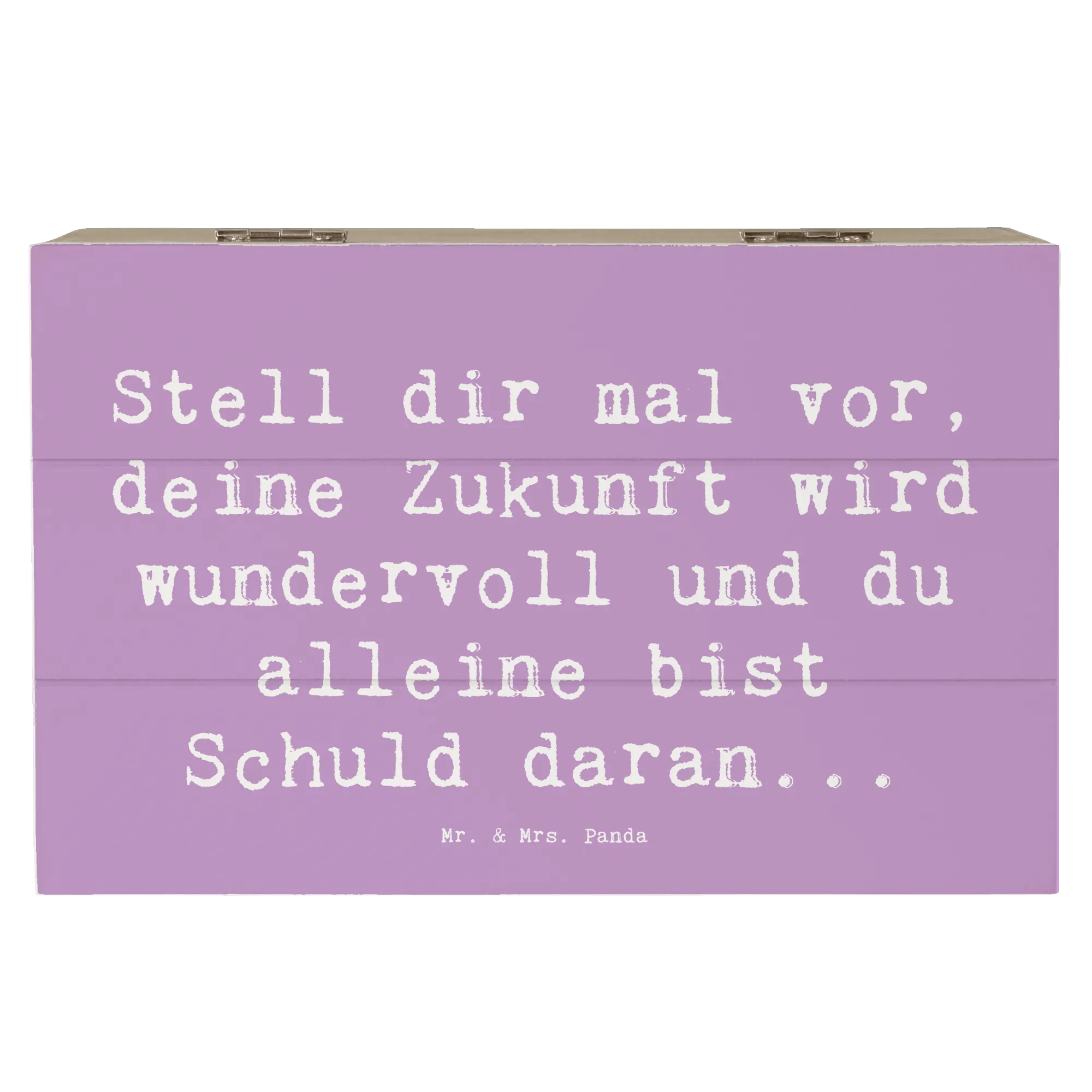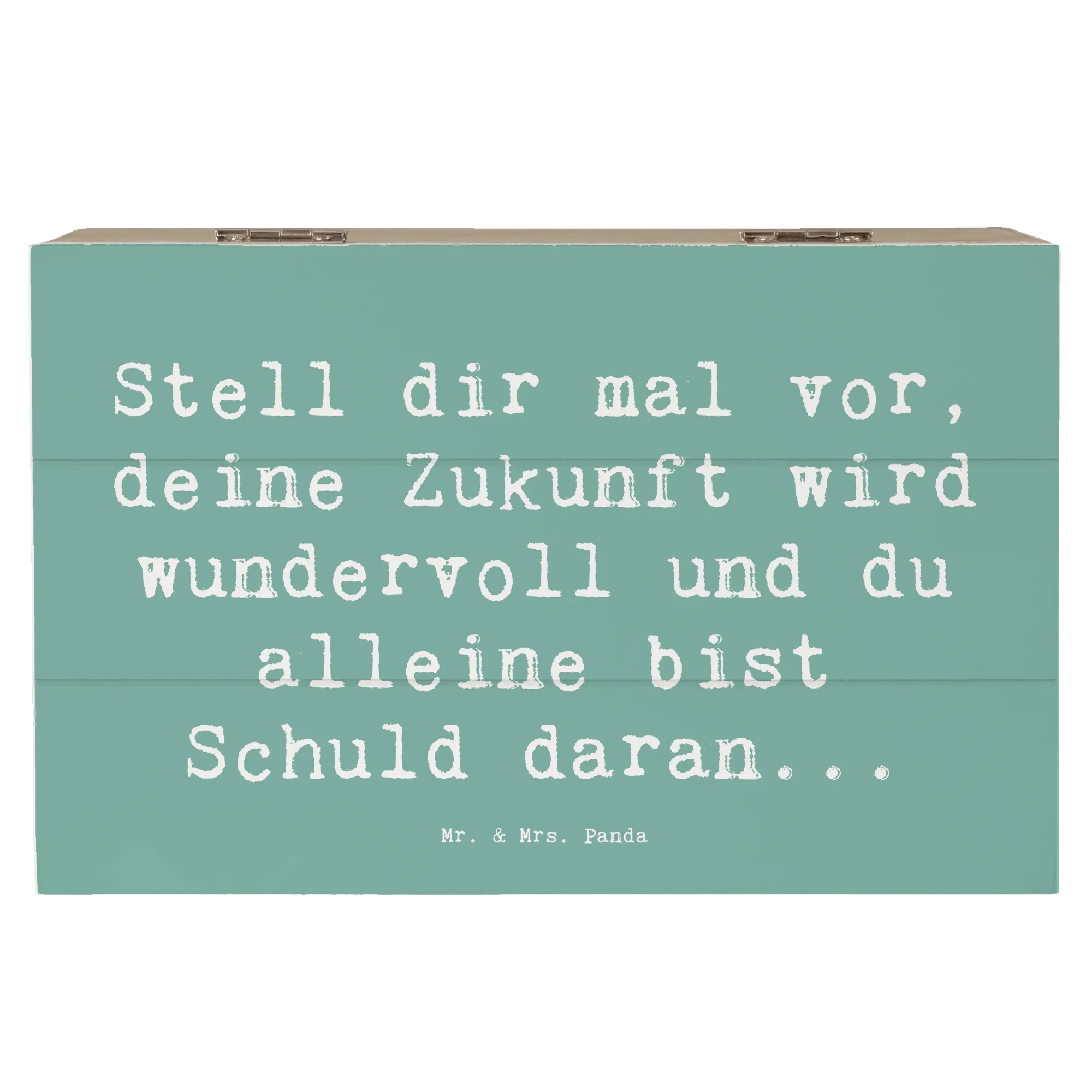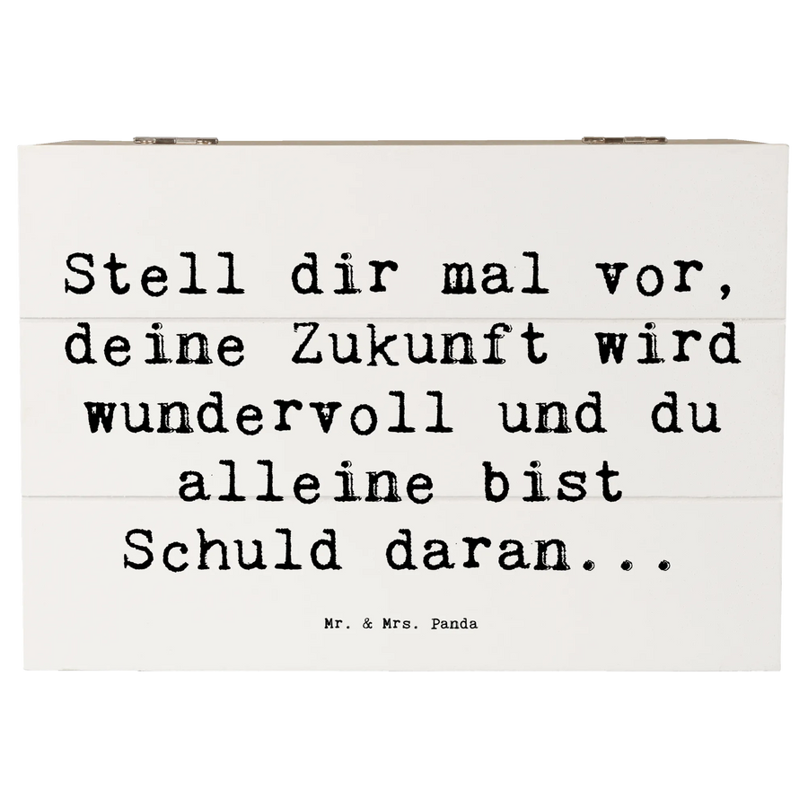 Und wie sieht es mit der Botschaft aus? Die Kiste ist mit dem inspirierenden Spruch "Stell dir mal vor, deine Zukunft wird wundervoll und du alleine bist Schuld daran..." bedruckt. Dieser Satz ist nicht nur ein Mutmacher, sondern auch eine tägliche Erinnerung daran, dass du selbst die Zügel in der Hand hast und deine Zukunft gestalten kannst.