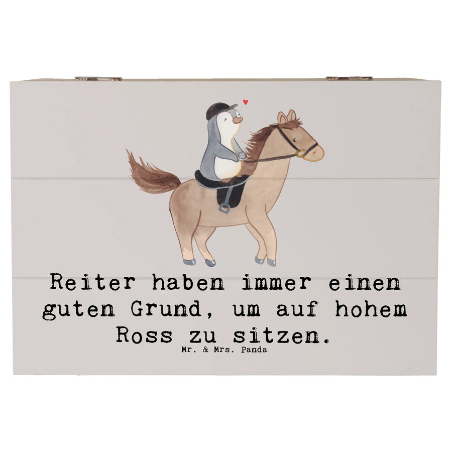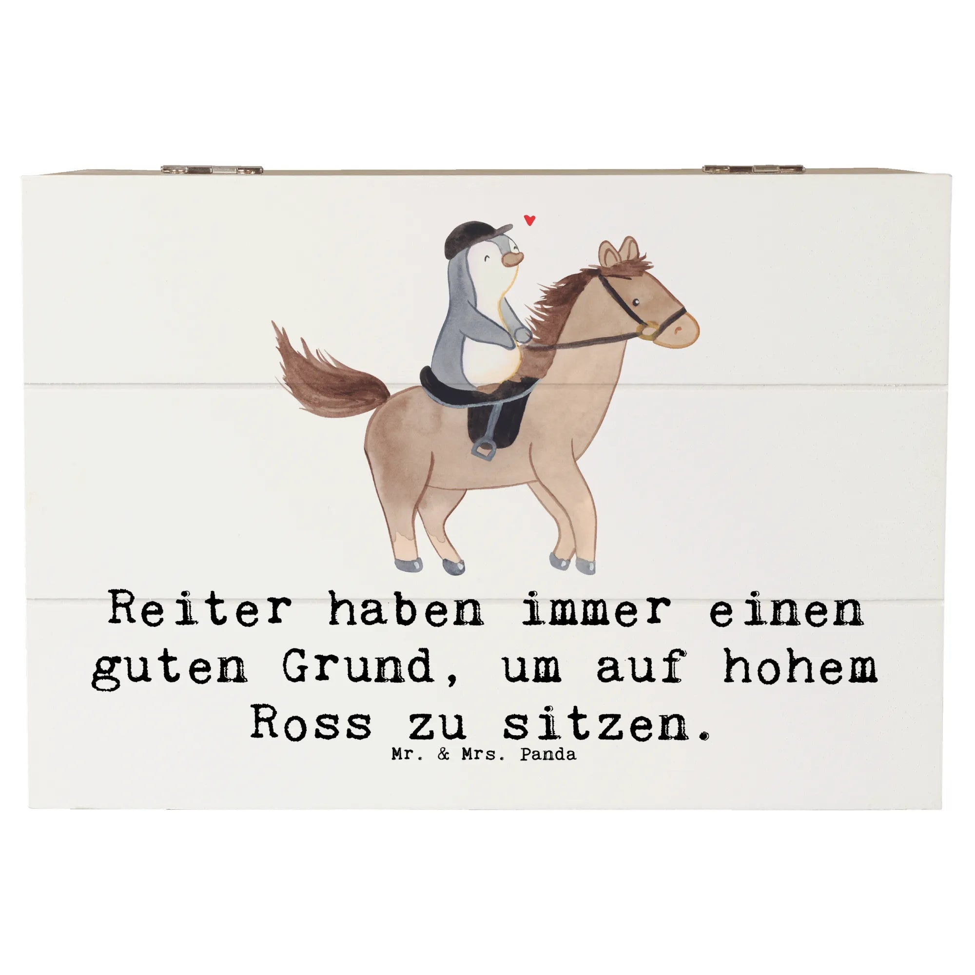 Mit ihrem liebevollen Motiv aus dem Bereich Reitsport und dem Slogan 'Reiter haben immer einen guten Grund, um auf hohem Ross zu sitzen', wird sie zum Highlight jedes Zimmers. Die robuste Holzkiste ist ideal als Aufbewahrungsort für wertvolle Schätze, Fotos oder Andenken und sorgt dafür, dass alles sicher und ordentlich verstaut ist.