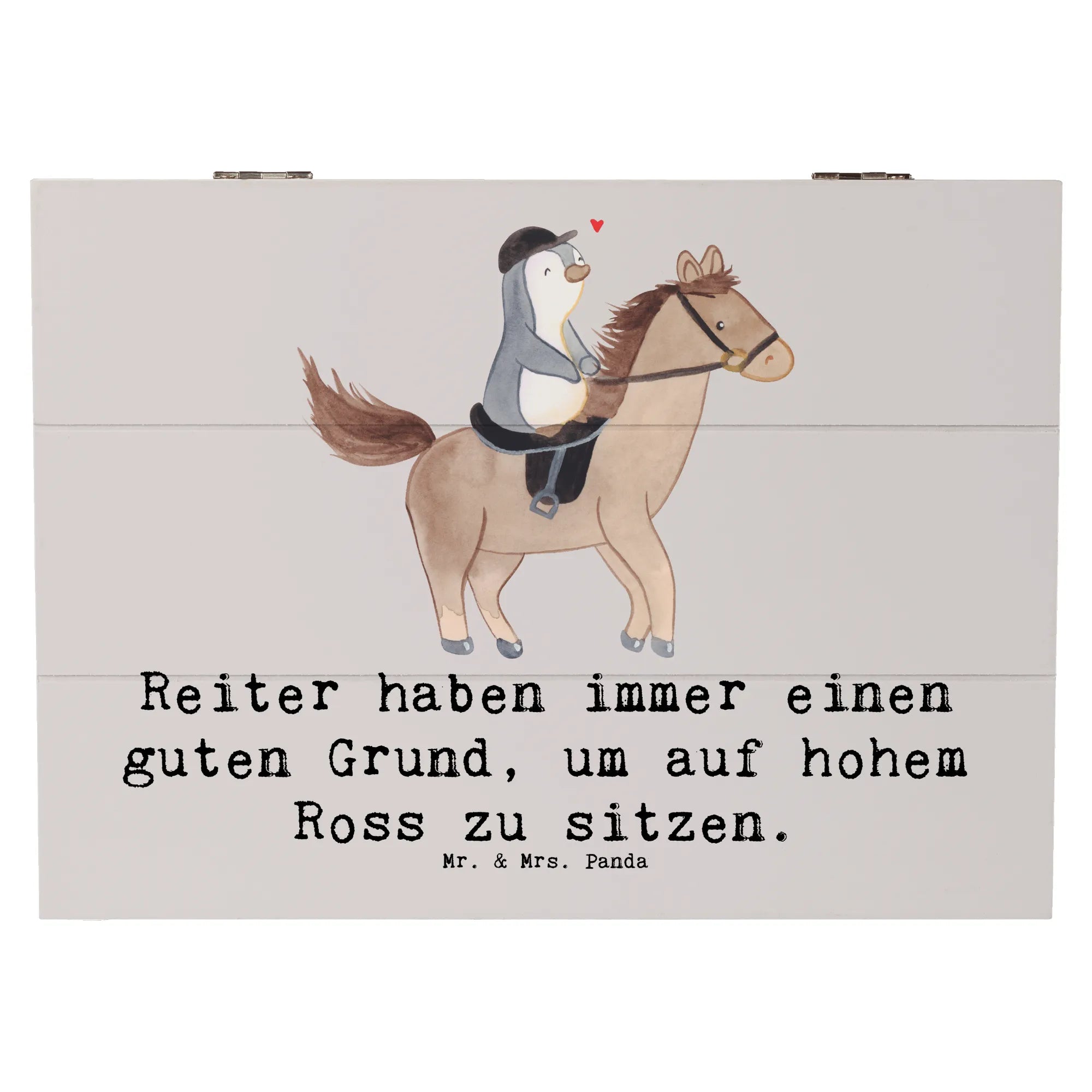 Die wunderschöne Holzkiste von Mr. & Mrs. Panda ist der perfekte Aufbewahrungsort für alle Deine wertvollen Schätze. Ob für Erinnerungen aus Deiner Kindheit, besondere Fotos oder als festliche Geschenkbox – diese Erinnerungskiste macht jeden Moment zu etwas ganz Besonderem. Auf der Kiste prangt das liebevoll gestaltete Motiv 'Reitsport', ergänzt durch den witzigen Spruch: 'Reiter haben immer einen guten Grund, um auf hohem Ross zu sitzen.' Damit bringst Du nicht nur Stil, sondern auch eine Prise Humor in jeden Raum!
