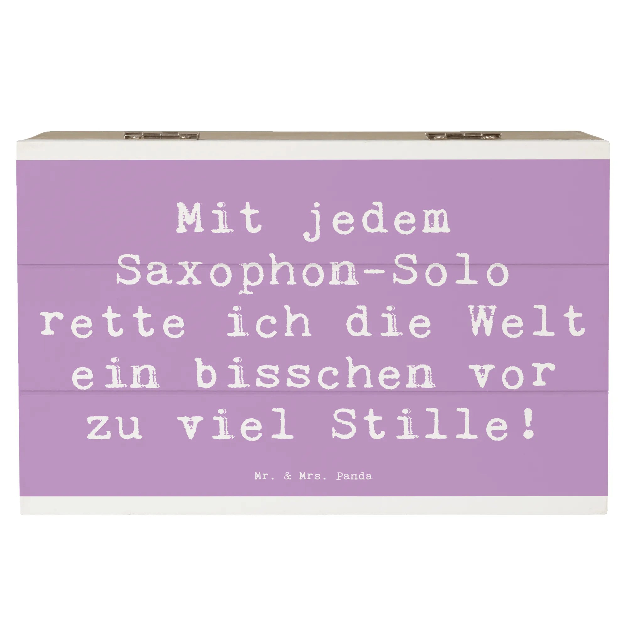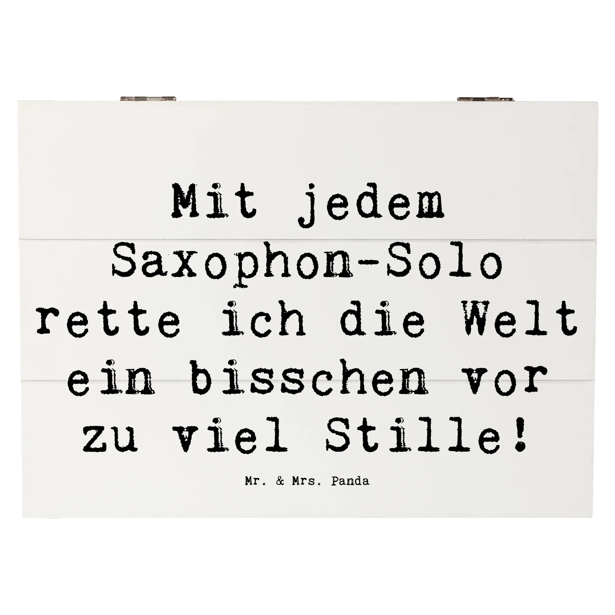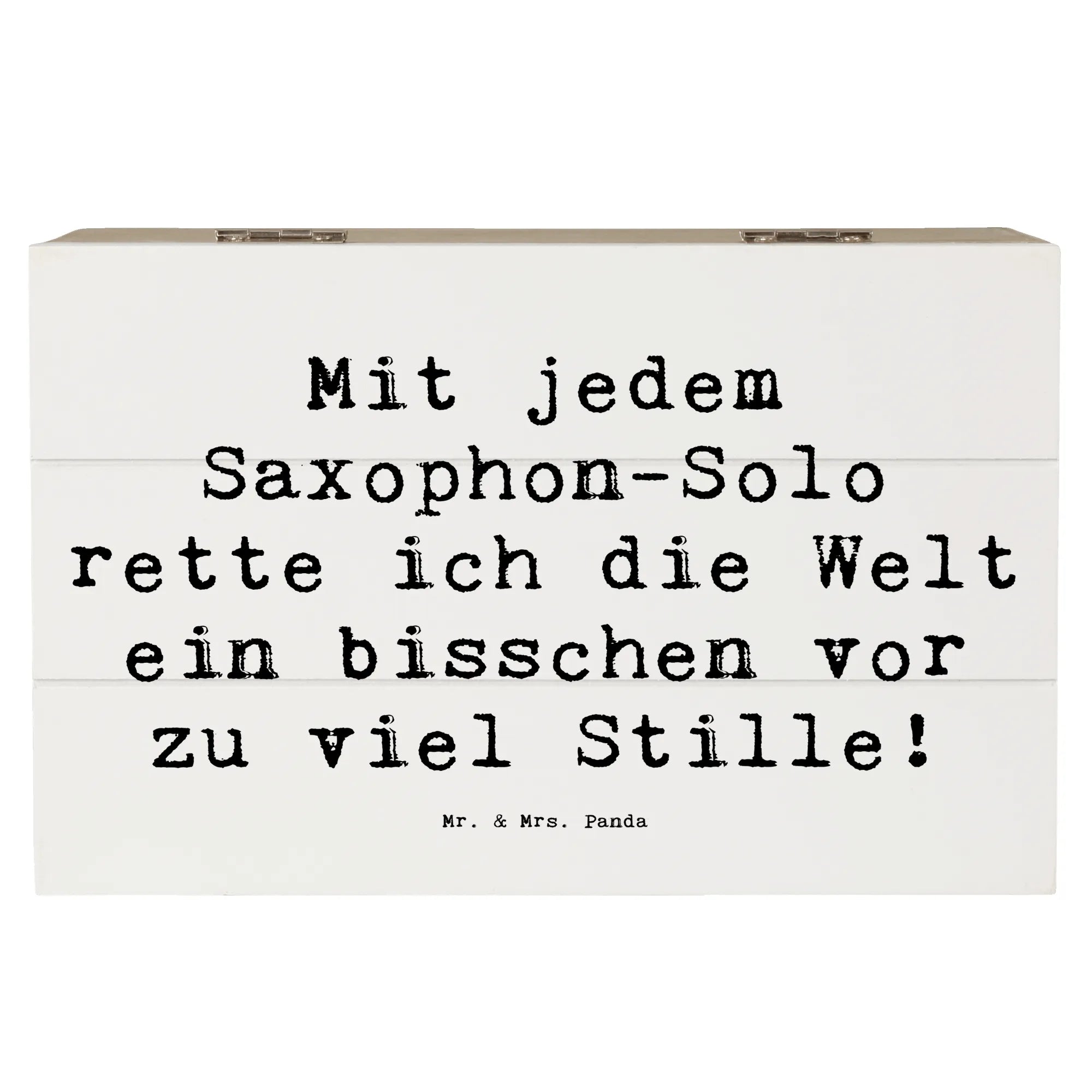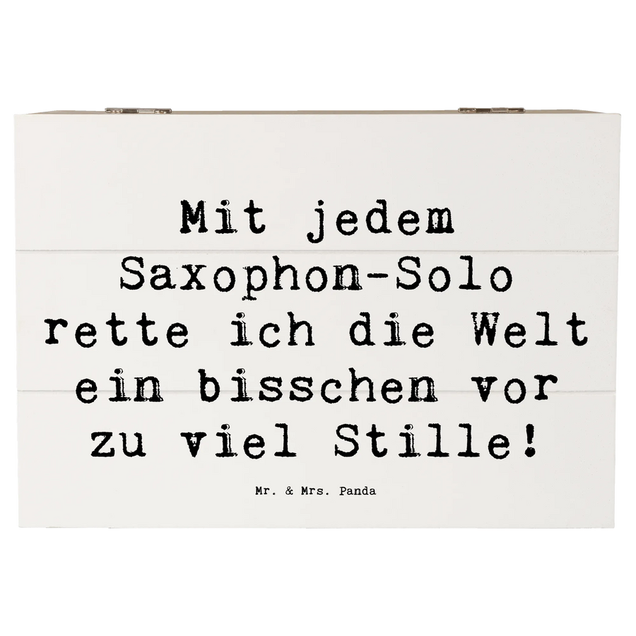 Die wunderschöne Holzkiste von Mr. & Mrs. Panda mit dem Motiv Saxophon ist das perfekte Geschenk für alle Musikliebhaber und Musiker! Egal, ob für einen Freund, ein Familienmitglied oder für dich selbst – diese Erinnerungskiste ist ideal, um all deine besonderen Schätze zu bewahren. Die robuste Holzkiste ist nicht nur ein stilvolles Deko-Element, sondern dient auch als praktische Aufbewahrungsbox für Erinnerungen,