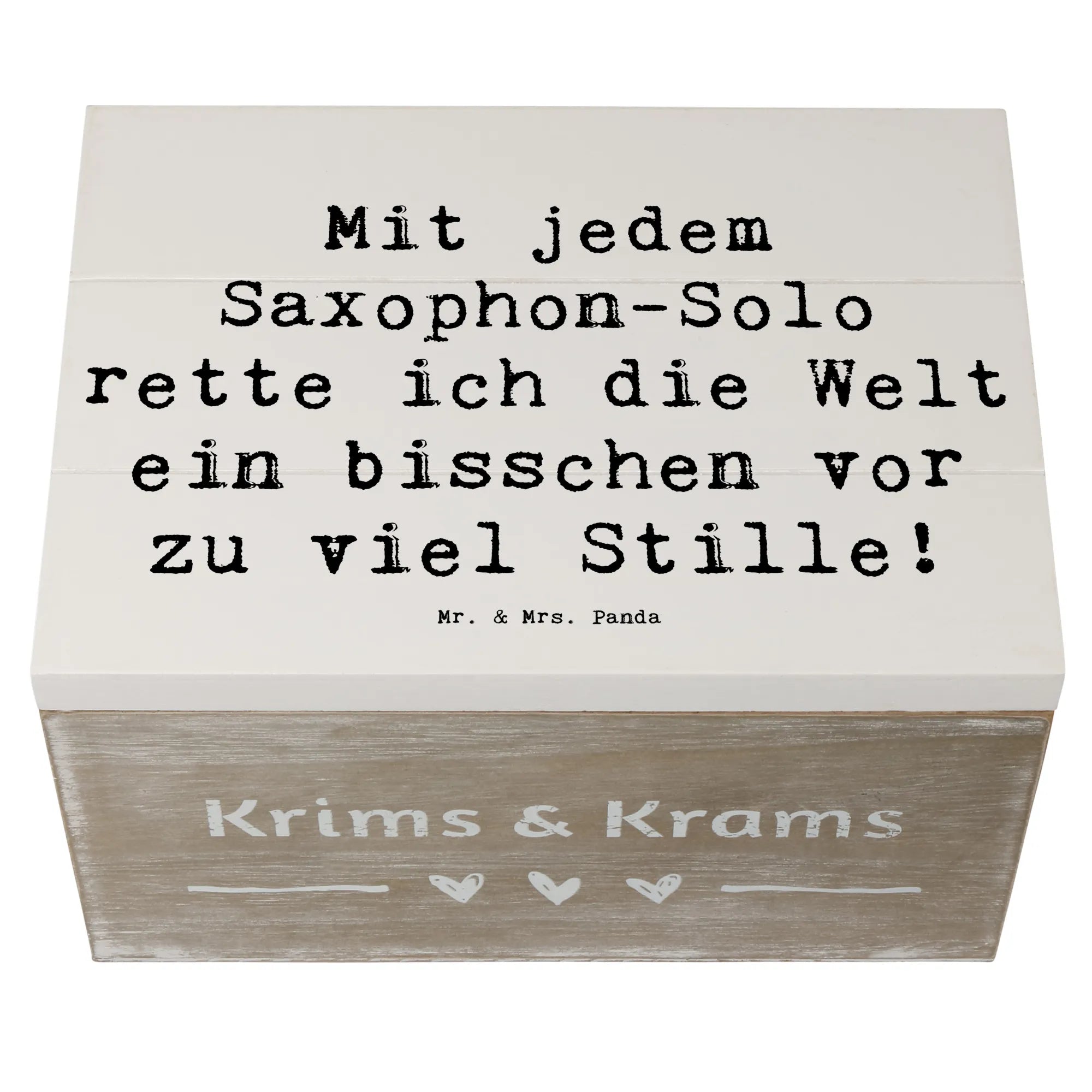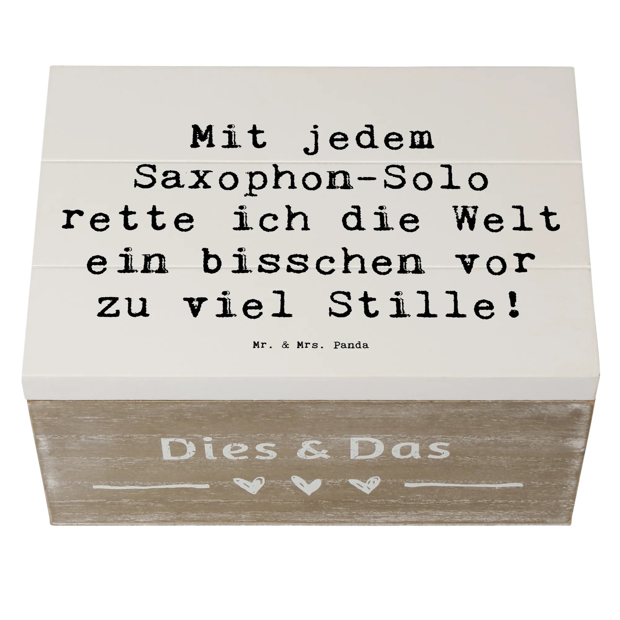 Die wunderschöne Holzkiste von Mr. & Mrs. Panda mit dem einzigartigen Motiv „Saxophon“ ist das perfekte Geschenk für jeden Musikliebhaber. Diese Kiste, die in der Kollektion "Musizieren & Instrumente" erhältlich ist, bringt nicht nur dein Herz zum Schwingen, sondern auch die Erinnerungen an unvergessliche musikalische Momente. Ideal als Dekokiste für dein Zuhause oder als Aufbewahrungsort für all die kleinen Schätze, die du im Leben sammelst. Egal, ob zur Kommunion, zum Geburtstag oder einfach für zwischendurch – eine Erinnerungskiste mit einem eingängigen Spruch wie „Mit jedem Saxophon-Solo rette ich die Welt ein bisschen vor zu viel Stille!“ ist ein Geschenk, das von Herzen kommt.