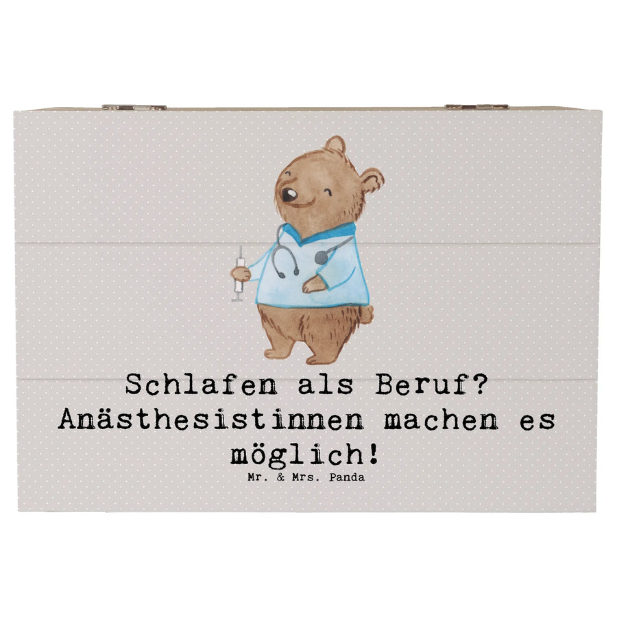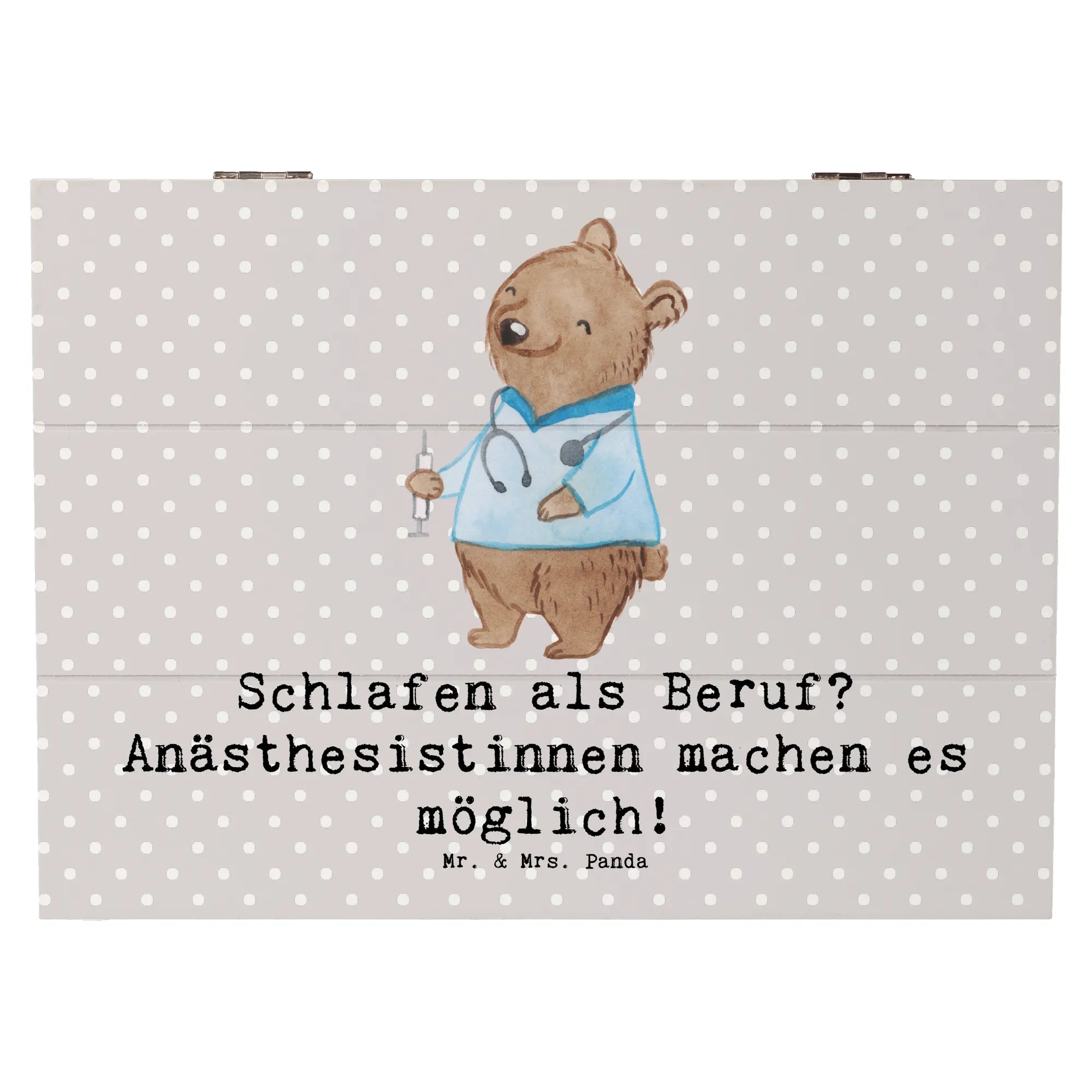 Die Holzkiste Anästhesistin von Mr. & Mrs. Panda ist das perfekte Geschenk für alle, die in der Welt des Gesundheitswesens arbeiten, insbesondere für Anästhesistinnen. Diese liebevoll gestaltete Kiste hat nicht nur ein wunderschönes Design, sondern auch einen witzigen Slogan: "Schlafen als Beruf? Anästhesistinnen machen es möglich!".
