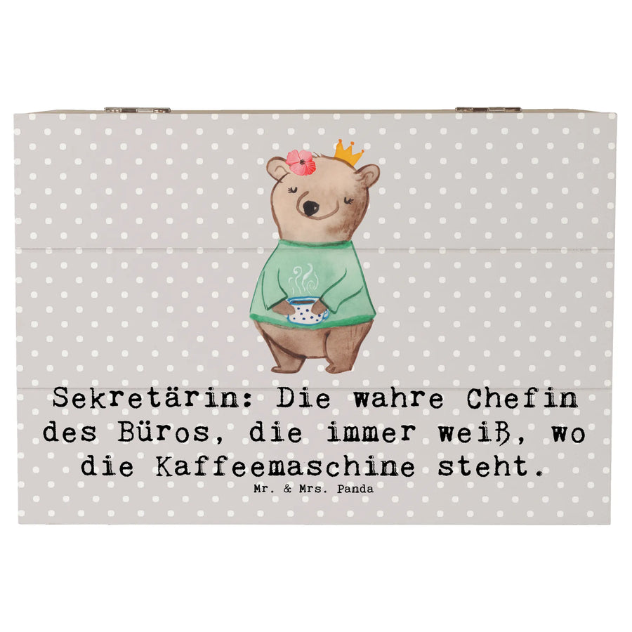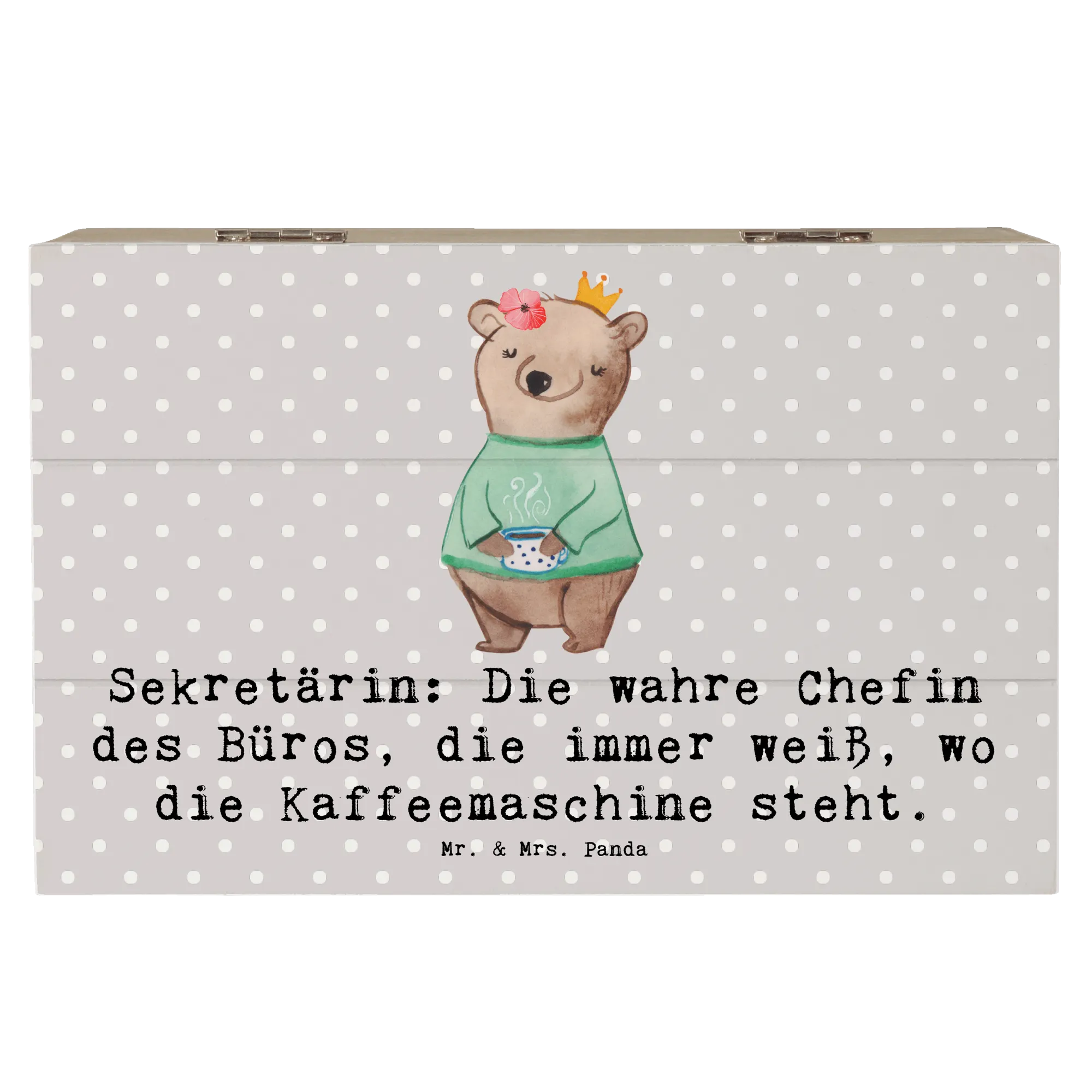 Holzkiste Sekretärin: Die wahre Chefin des Büros, die immer weiß, wo die Kaffeemaschine steht. - 22 x 15 cm - Grau Pastell
