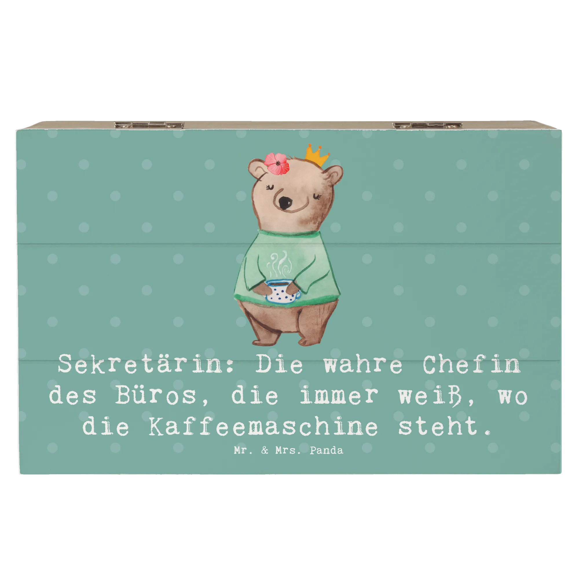 Die wunderschöne Holzkiste mit dem Motto "Sekretärin: Die wahre Chefin des Büros, die immer weiß, wo die Kaffeemaschine steht." ist das perfekte Geschenk für alle, die in einem Büro arbeiten oder als Sekretärin tätig sind. Sie ist nicht nur nützlich, sondern auch ein echter Blickfang!