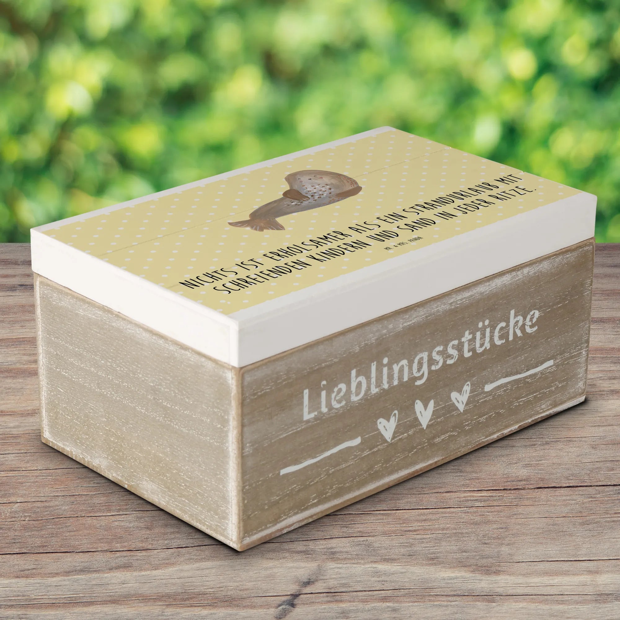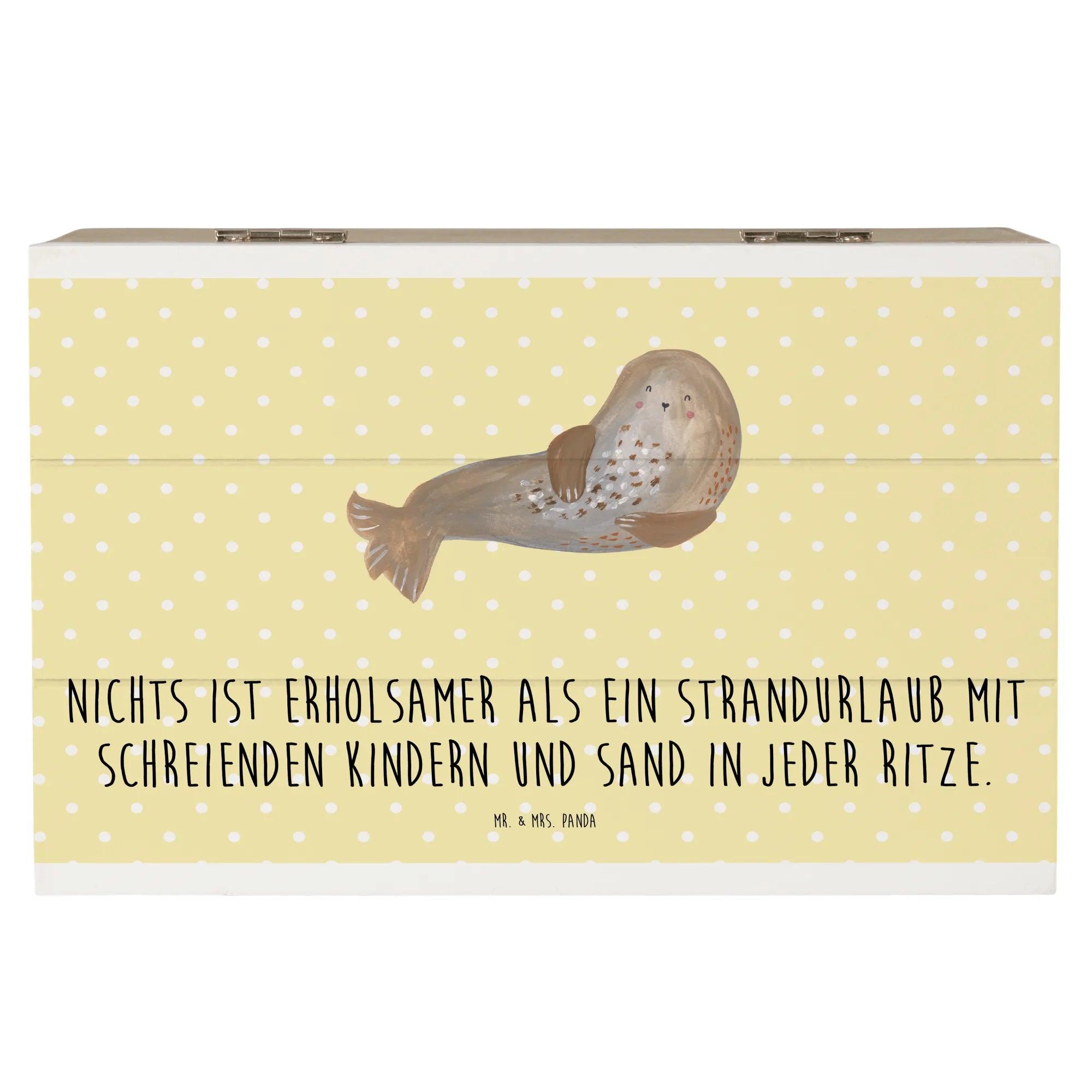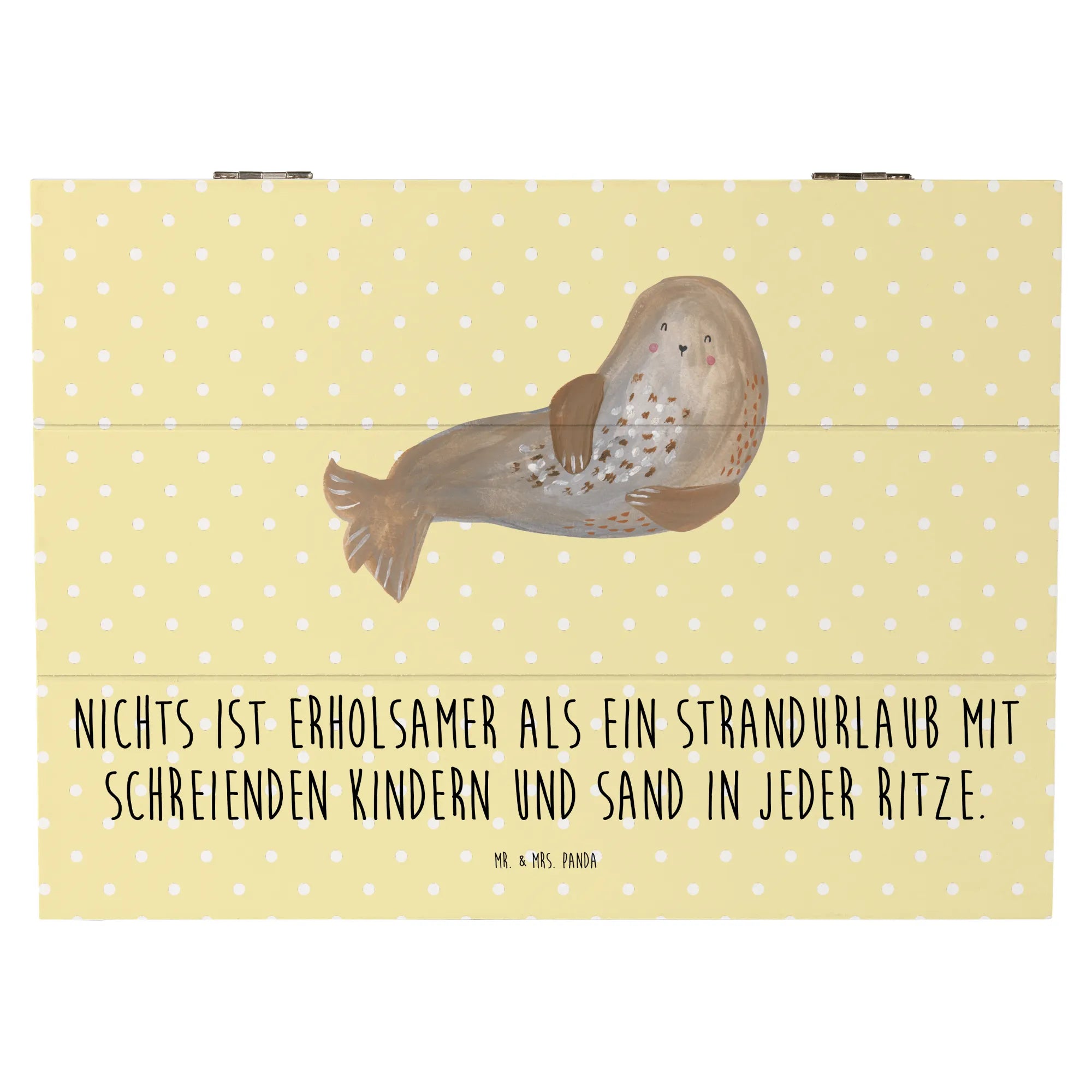 Die wunderschöne Holzkiste von Mr. & Mrs. Panda ist nicht nur ein praktischer Aufbewahrungsort, sondern auch ein echtes Schmuckstück für deine Erinnerungen! Mit einem zauberhaften Sommer-Motiv und dem witzigen Spruch 'Nichts ist erholsamer als ein Strandurlaub mit schreienden Kindern und Sand in jeder Ritze.' bringt diese Kiste pures Sommergefühl in dein Zuhause.