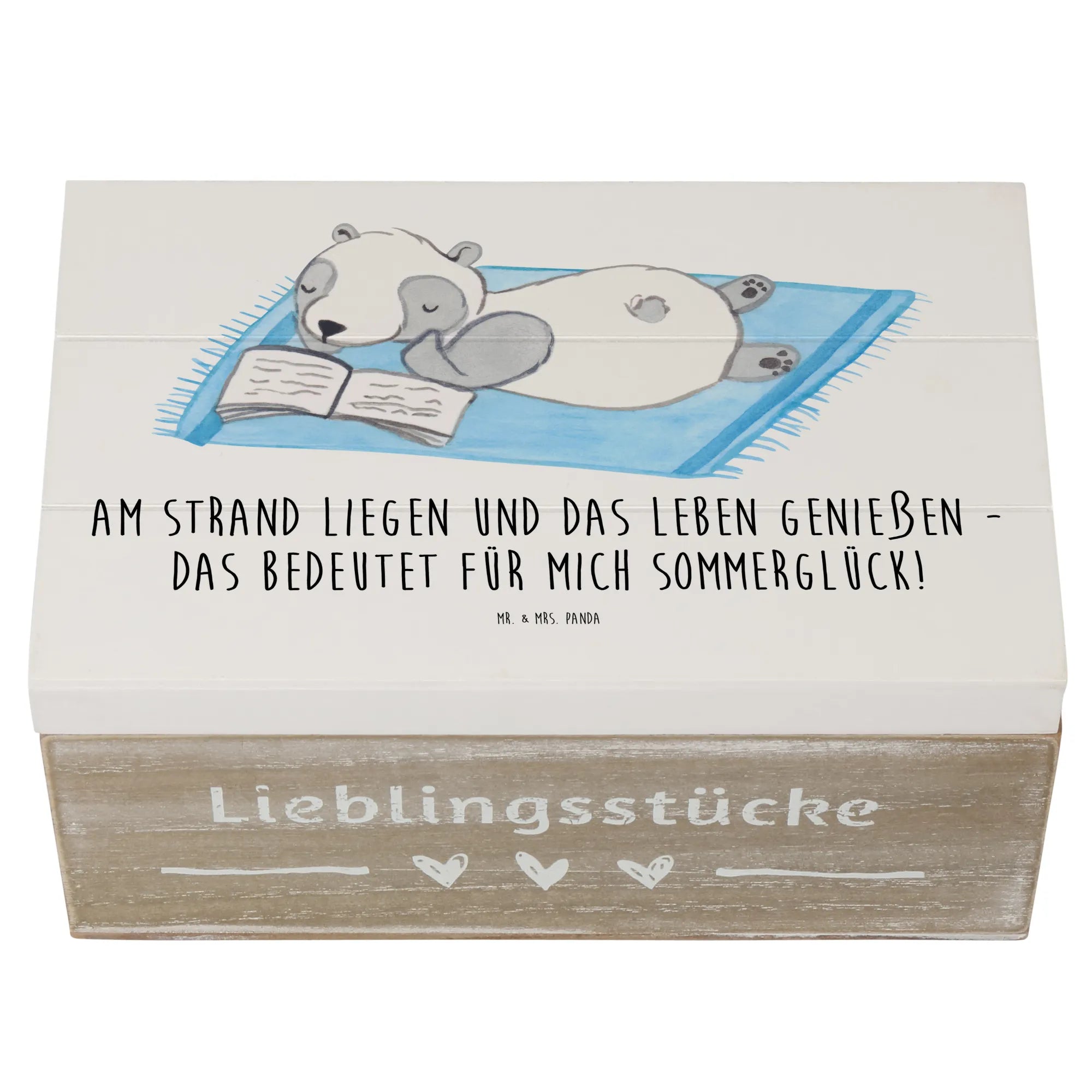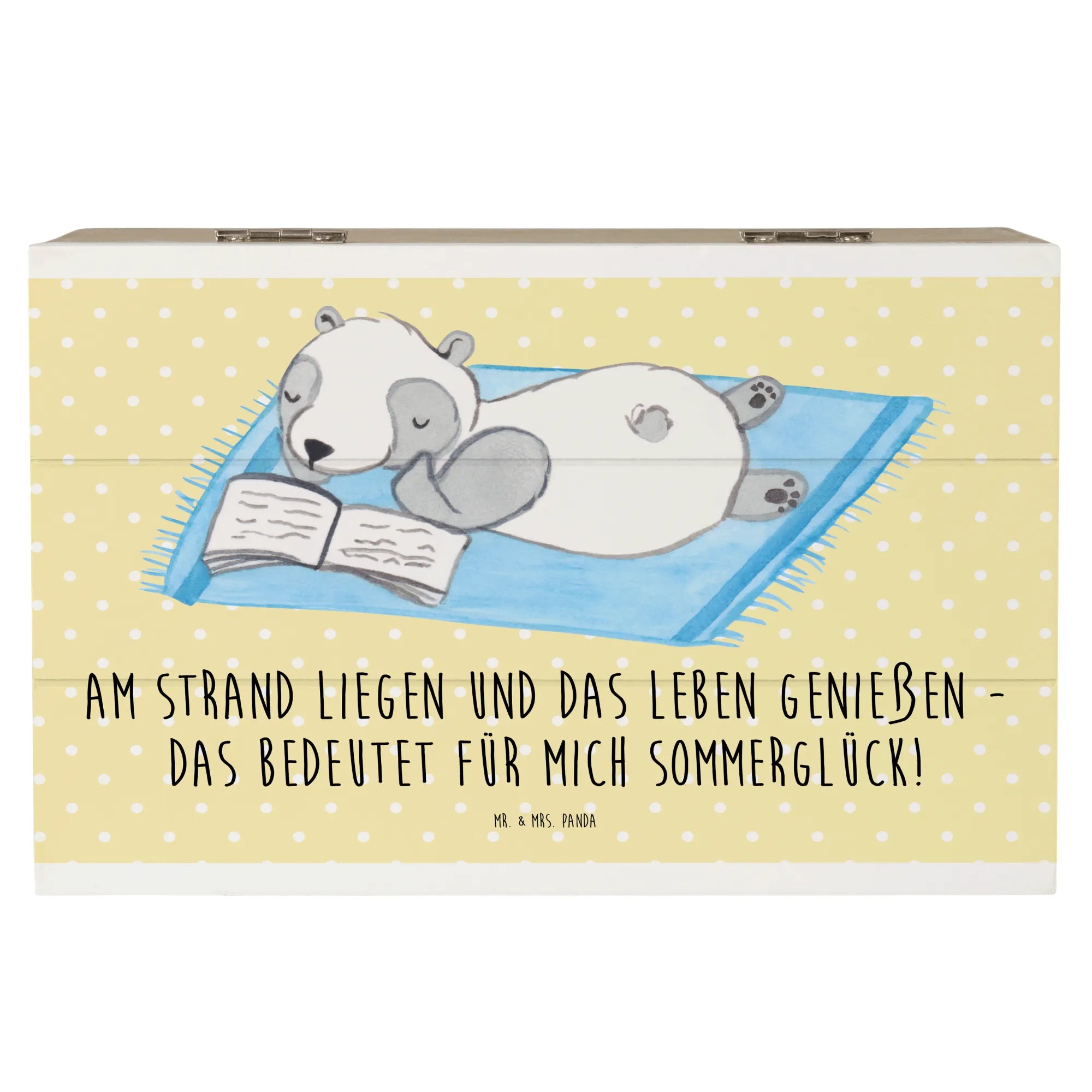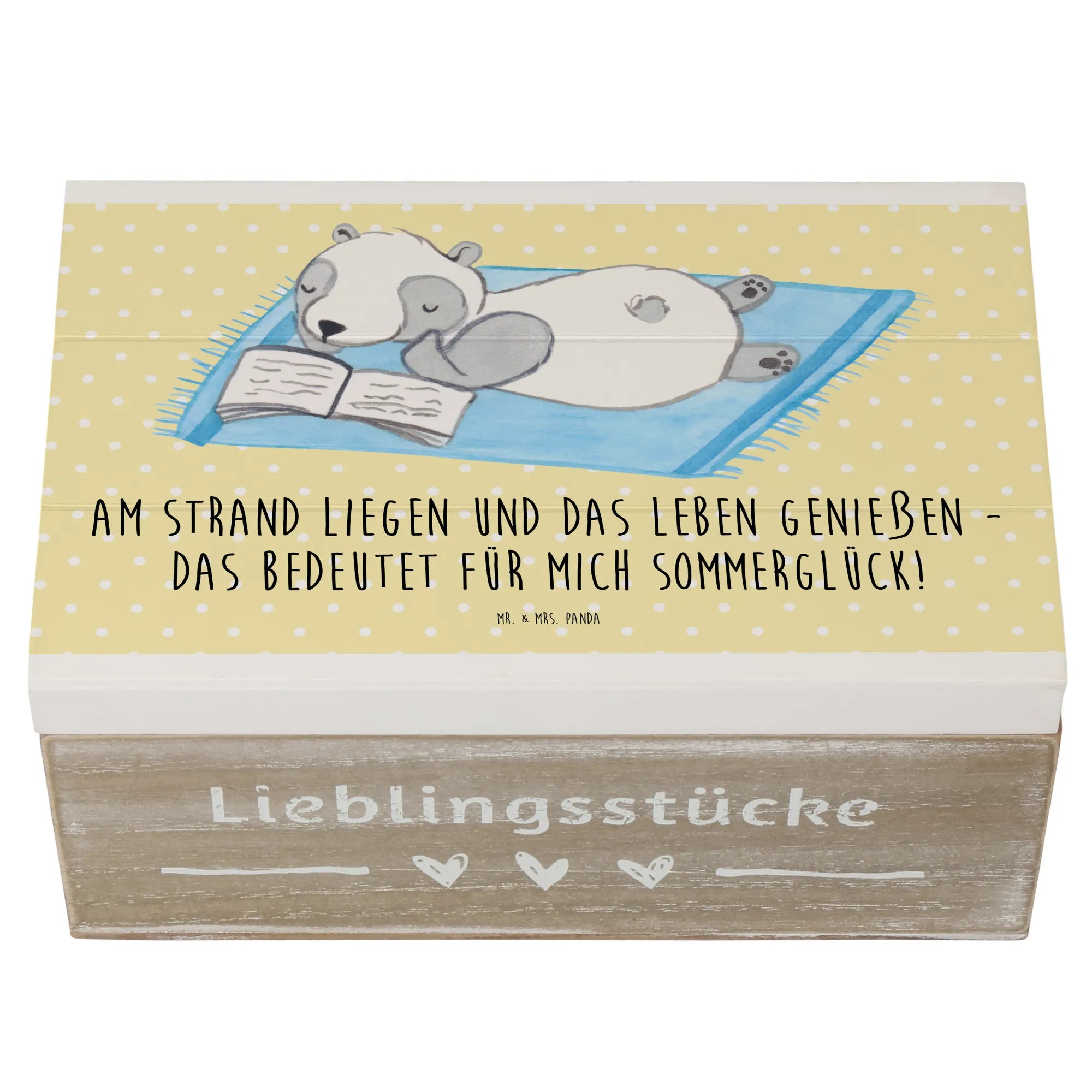 Die wunderschöne Holzkiste "Sommer" von Mr. & Mrs. Panda ist der perfekte Begleiter für alle, die die sonnige Jahreszeit in vollen Zügen genießen möchten. Mit ihrem charmanten Design und dem inspirierenden Slogan "Am Strand liegen und das Leben genießen - das bedeutet für mich Sommerglück!" fängt diese Kiste die Essenz des Sommers ein.