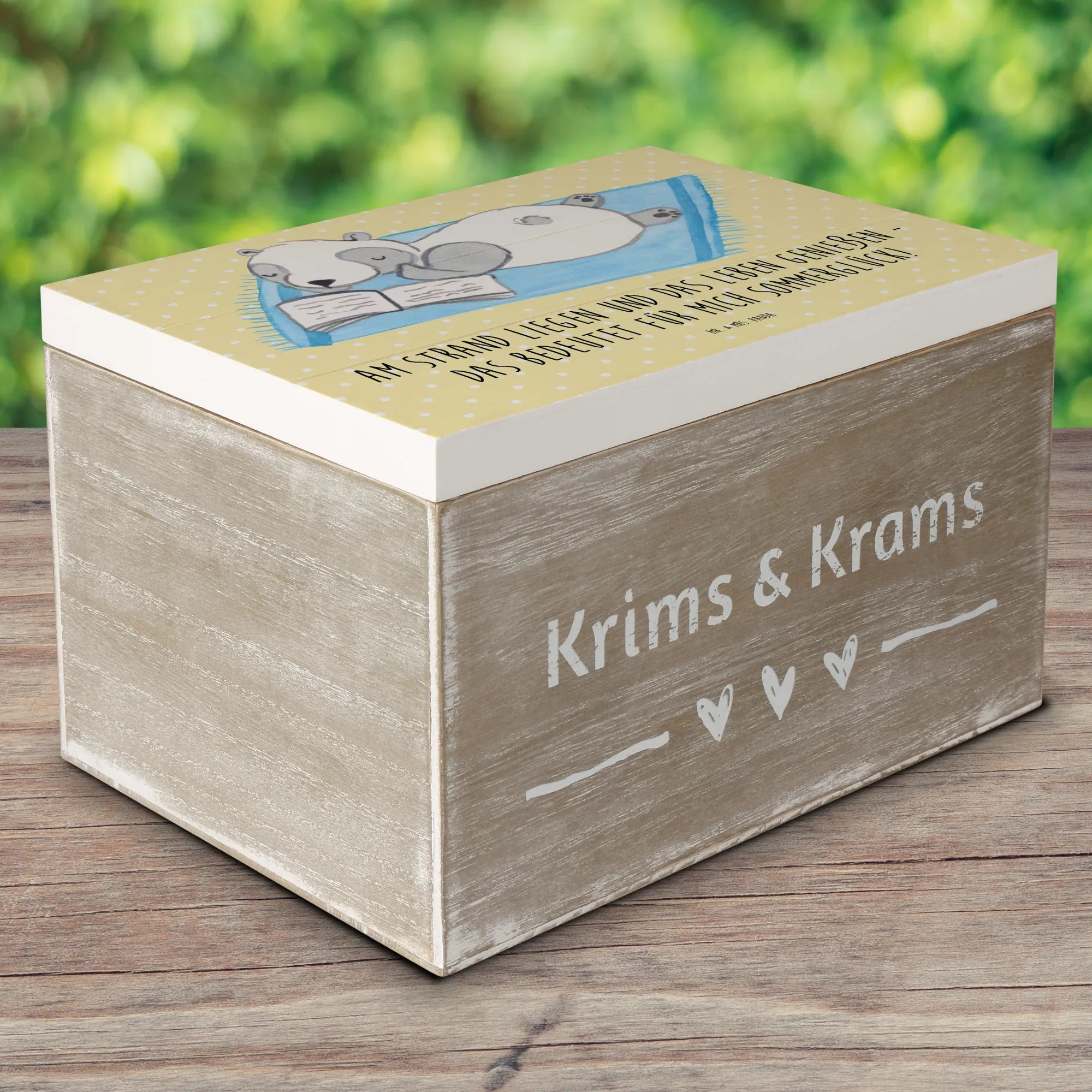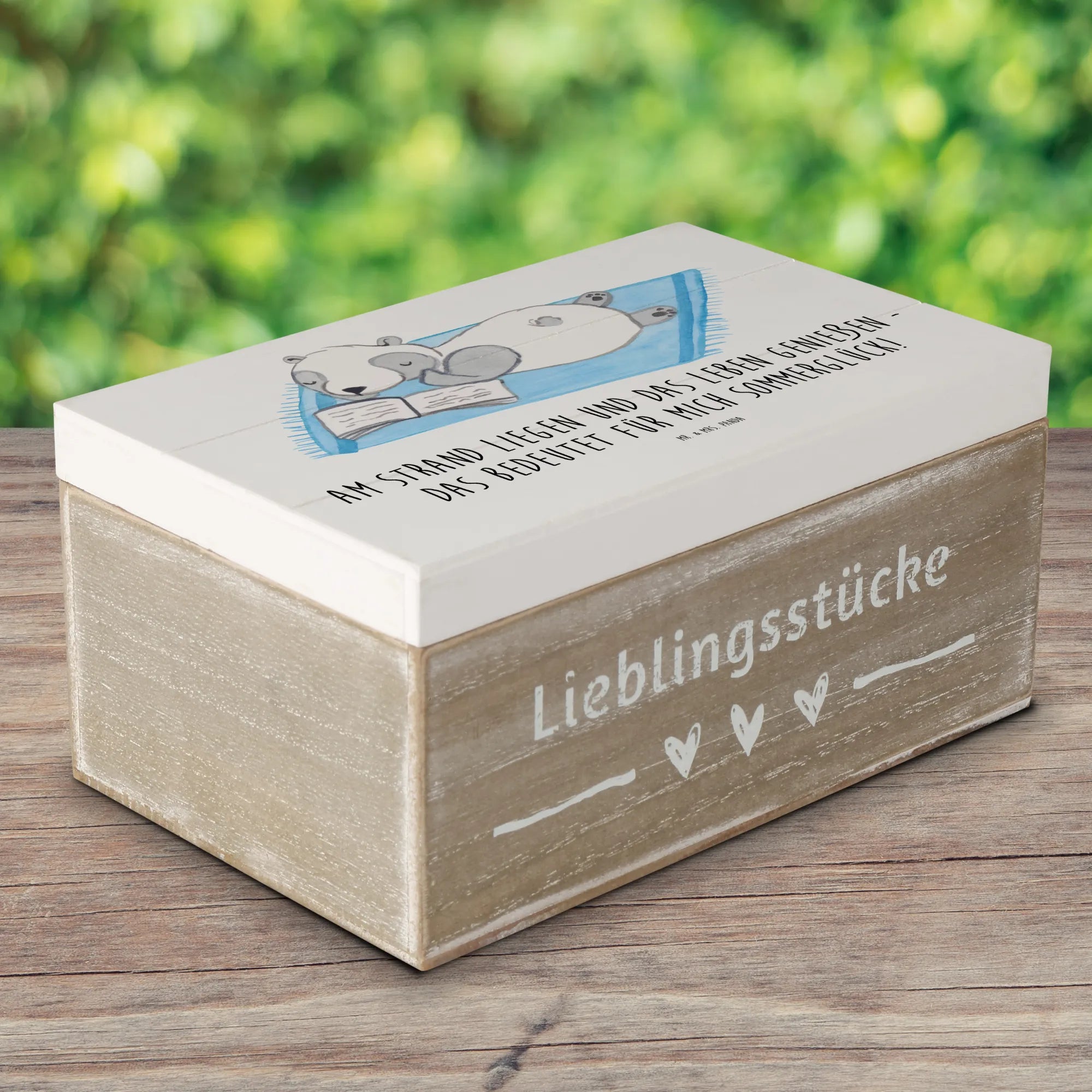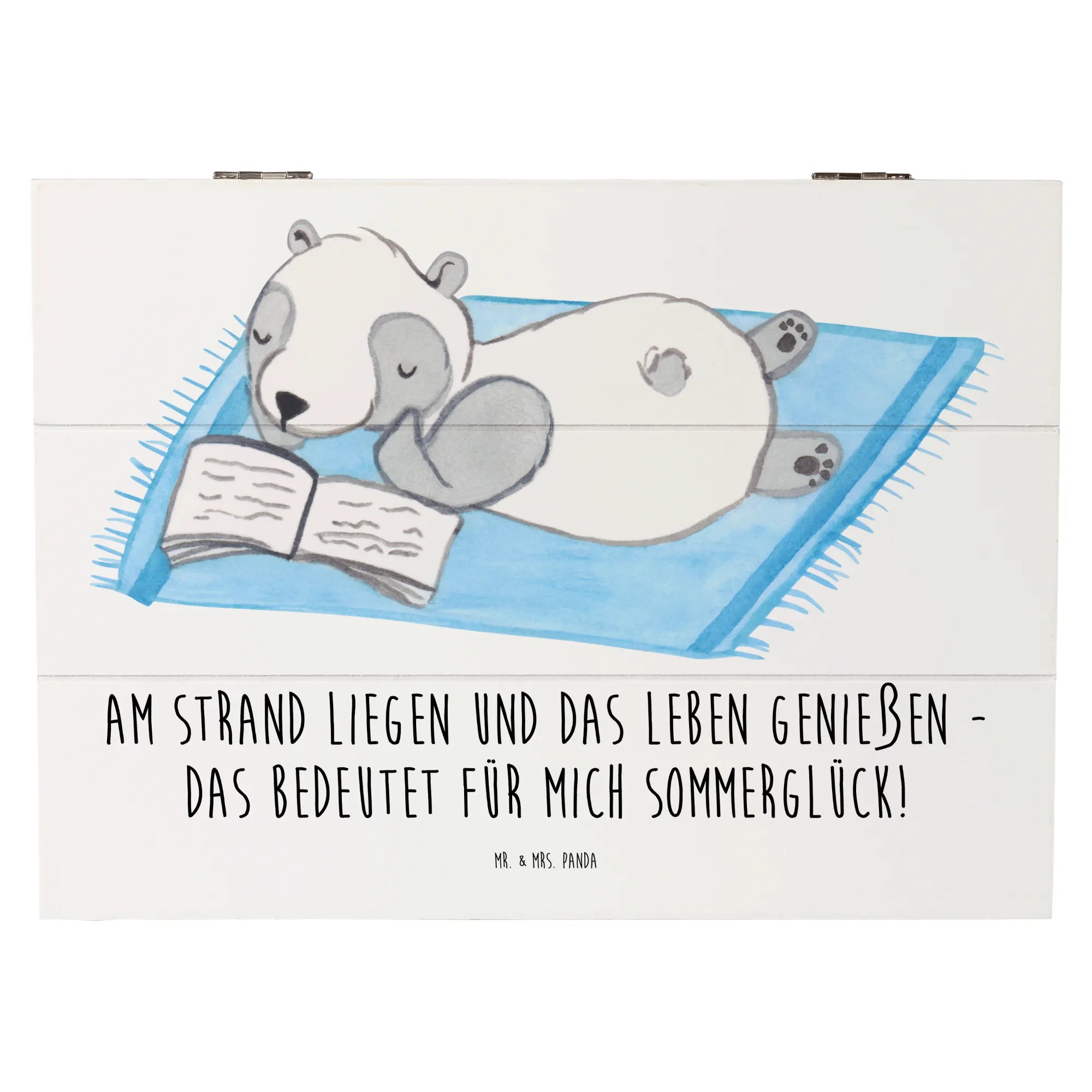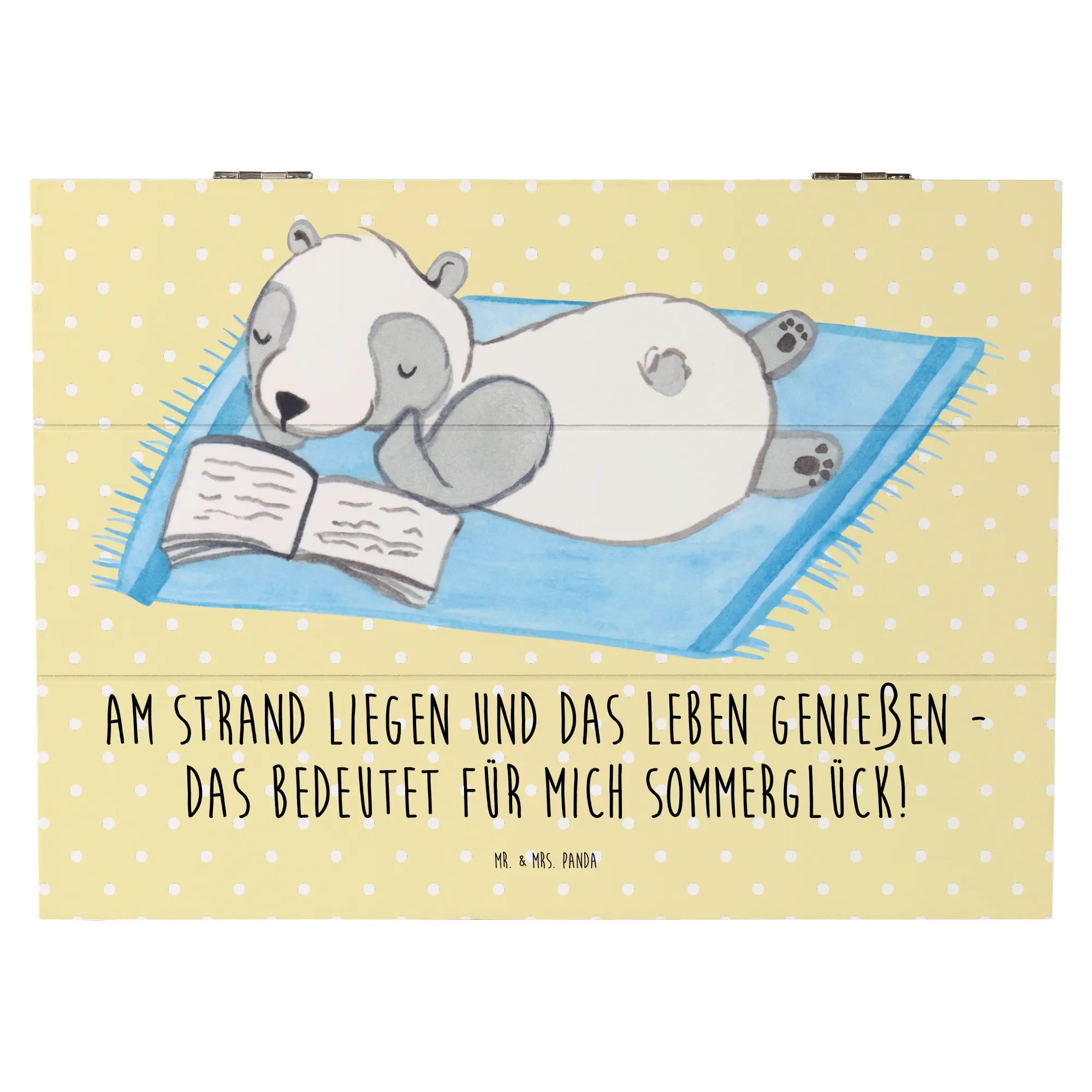 Die wunderschöne Holzkiste "Sommer" von Mr. & Mrs. Panda ist der perfekte Begleiter für alle, die die sonnige Jahreszeit in vollen Zügen genießen möchten. Mit ihrem charmanten Design und dem inspirierenden Slogan "Am Strand liegen und das Leben genießen - das bedeutet für mich Sommerglück!" fängt diese Kiste die Essenz des Sommers ein.