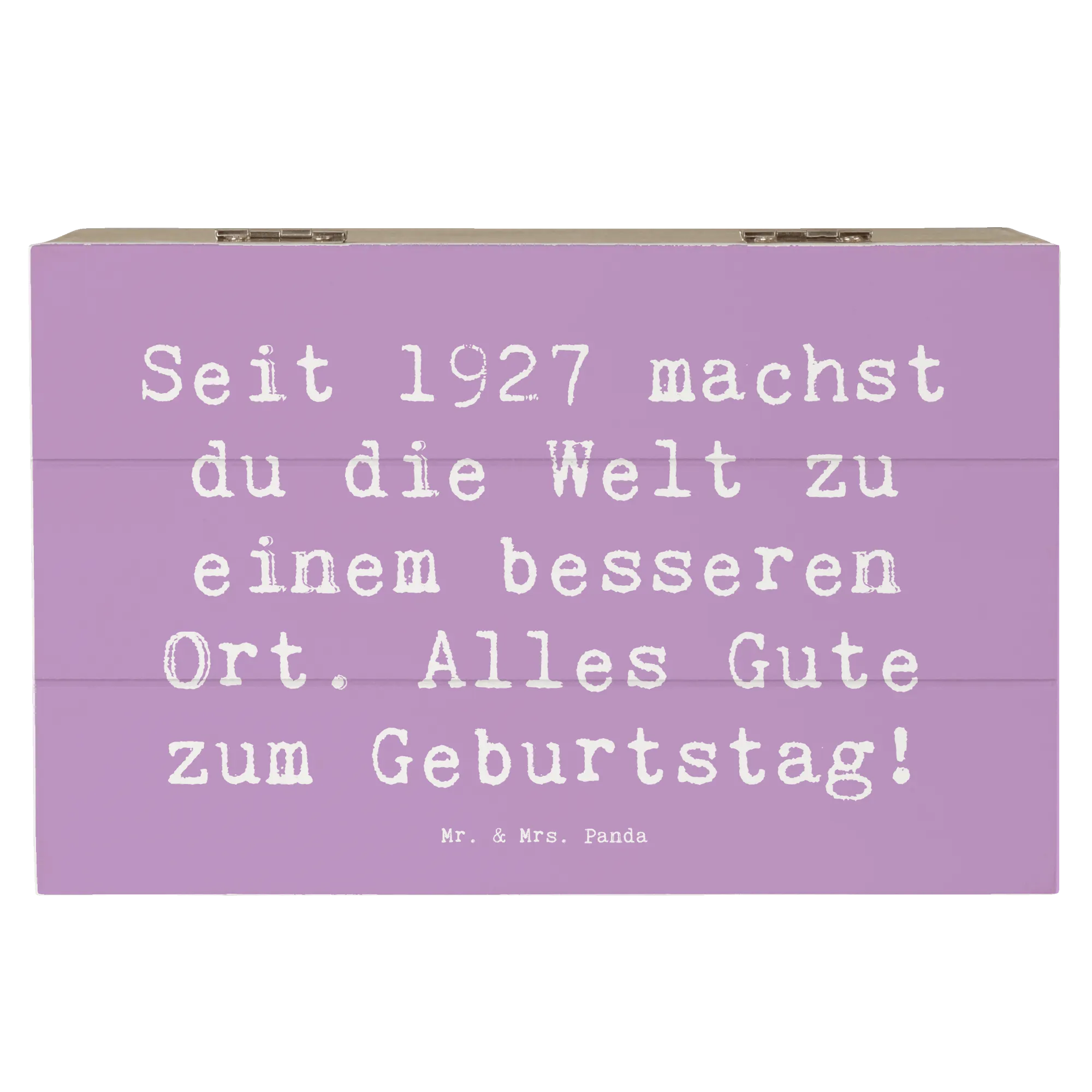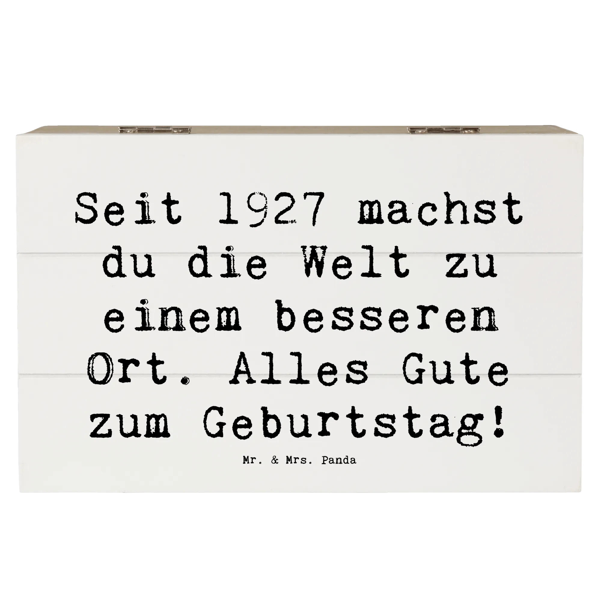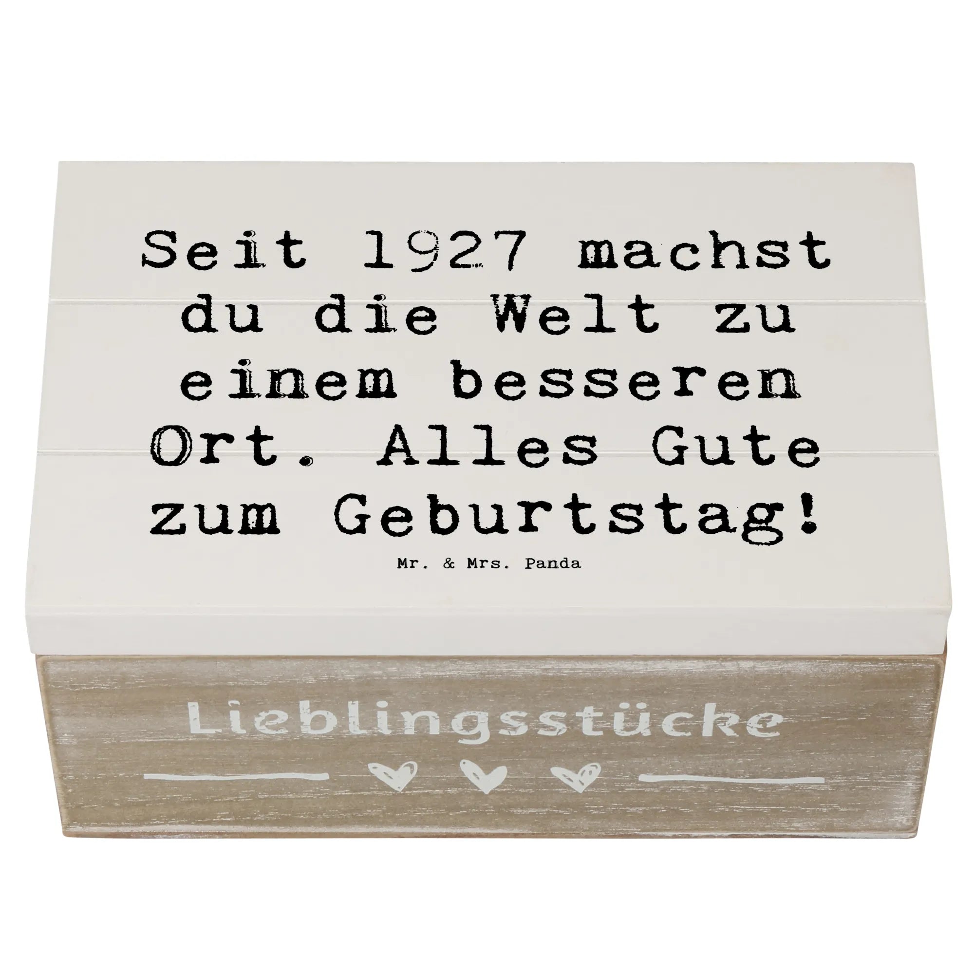 Die wunderschöne Holzkiste von Mr. & Mrs. Panda ist das perfekte Geschenk für jeden Geburtstag! Diese spezielle Erinnerungskiste mit dem Motiv "1927 Geburtstag" und dem liebevollen Spruch "Seit 1927 machst du die Welt zu einem besseren Ort. Alles Gute zum Geburtstag!" ist nicht nur ein Hingucker, sondern auch eine nachhaltige und praktische Aufbewahrungsbox.