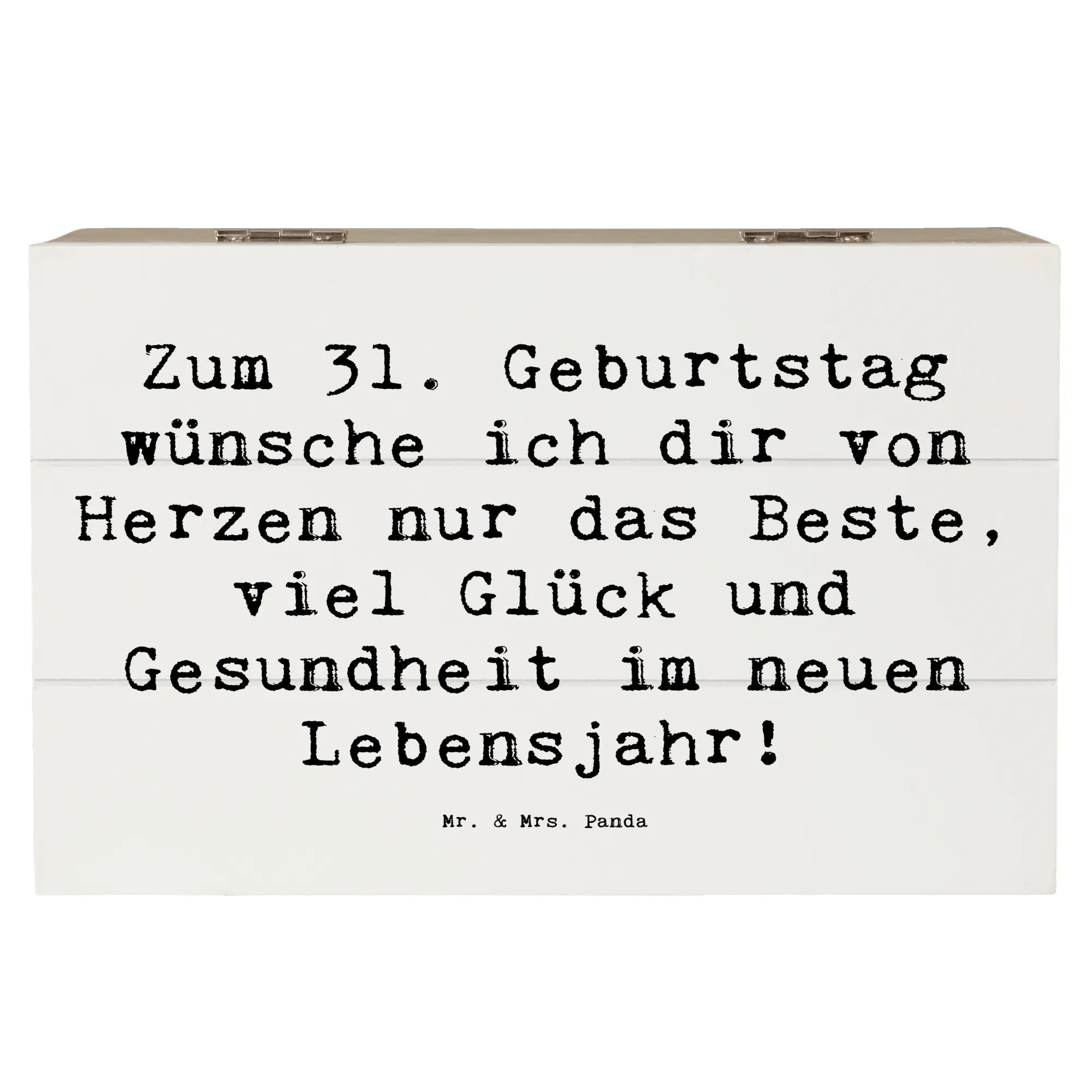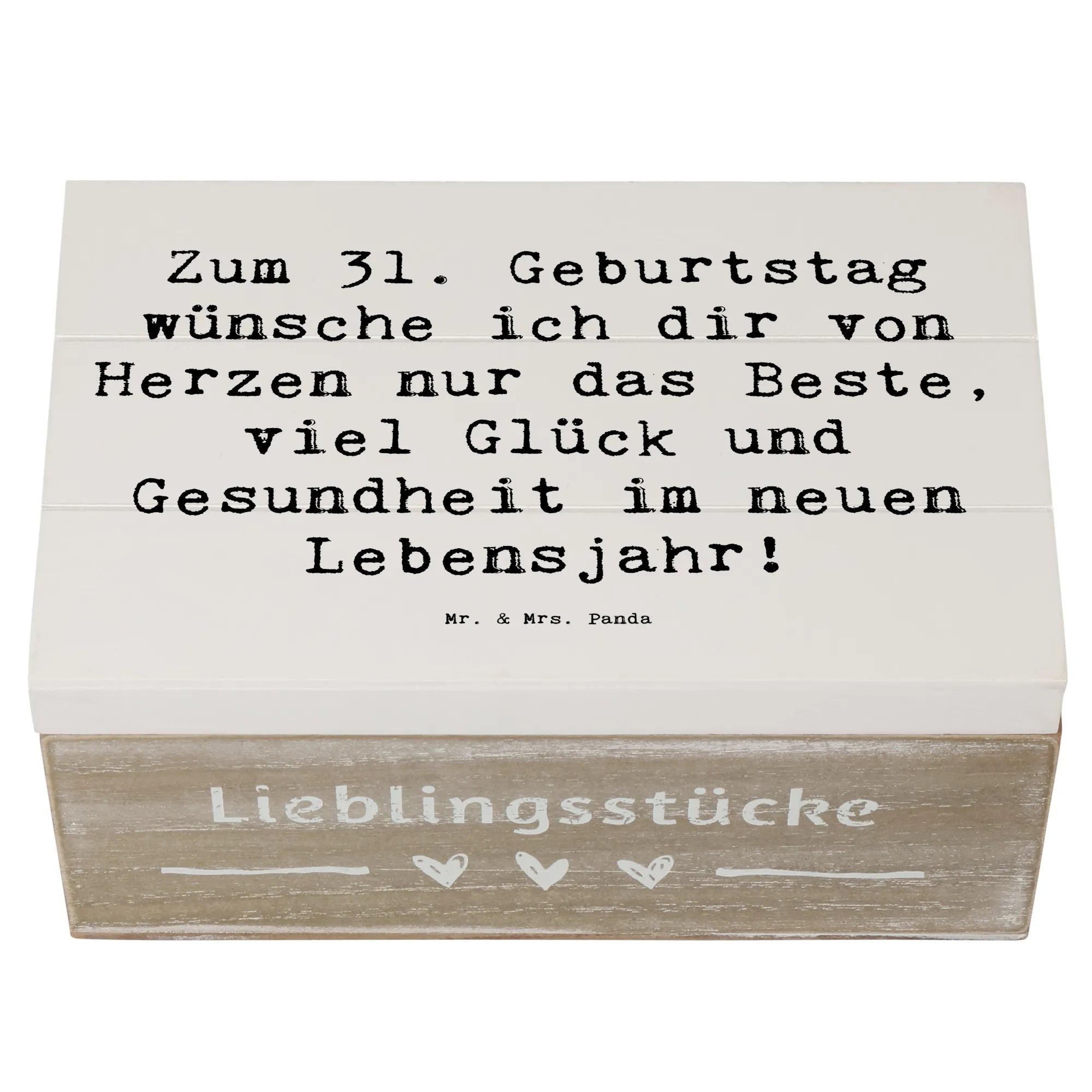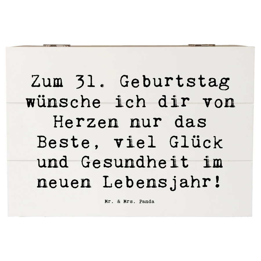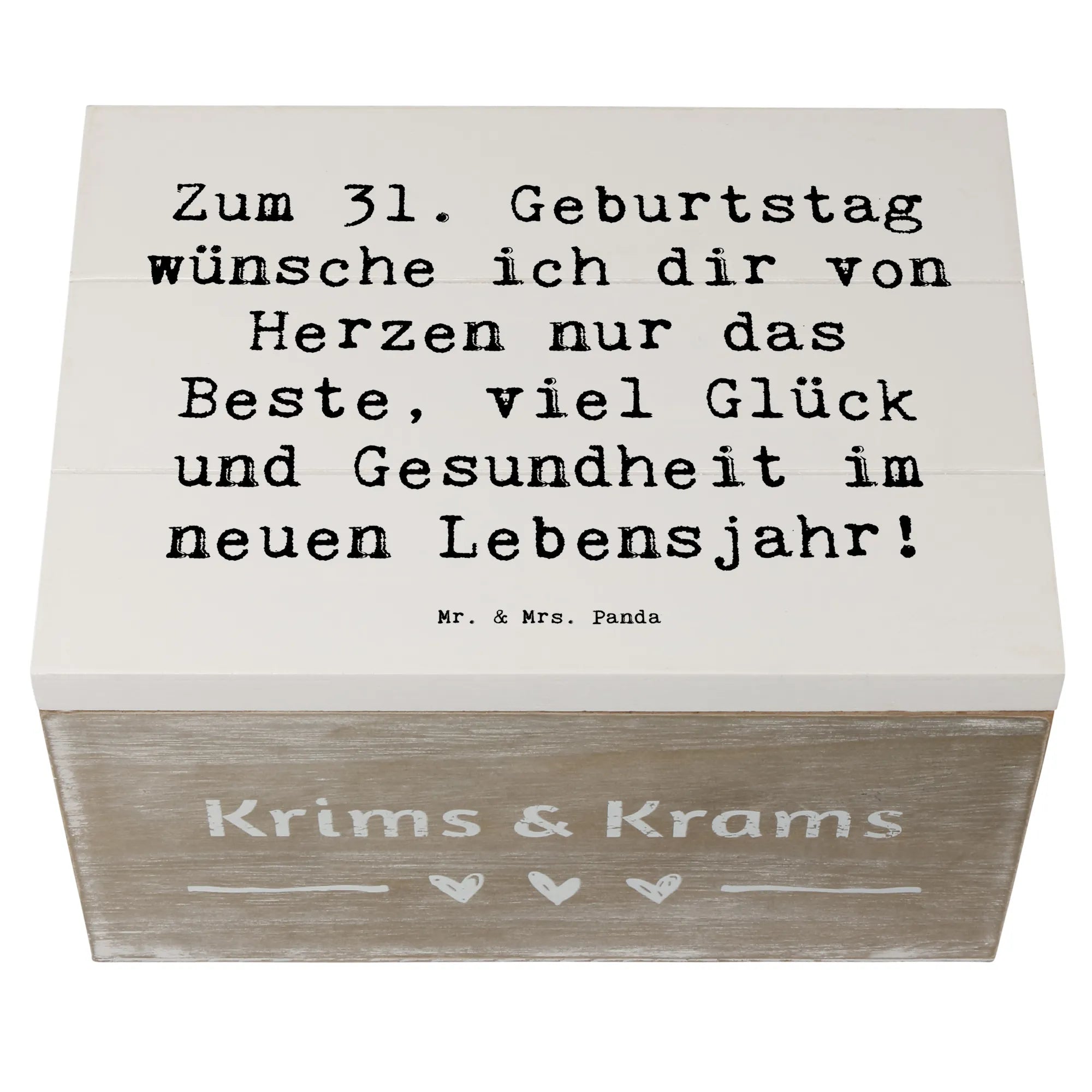 Die wunderschöne Holzkiste von Mr. & Mrs. Panda ist das perfekte Geschenk zum 31. Geburtstag! Bedruckt mit einem liebevollen Spruch: 'Zum 31. Geburtstag wünsche ich dir von Herzen nur das Beste, viel Glück und Gesundheit im neuen Lebensjahr!' wird diese Schatzkiste zum unvergesslichen Erinnerungsort für schöne Momente.