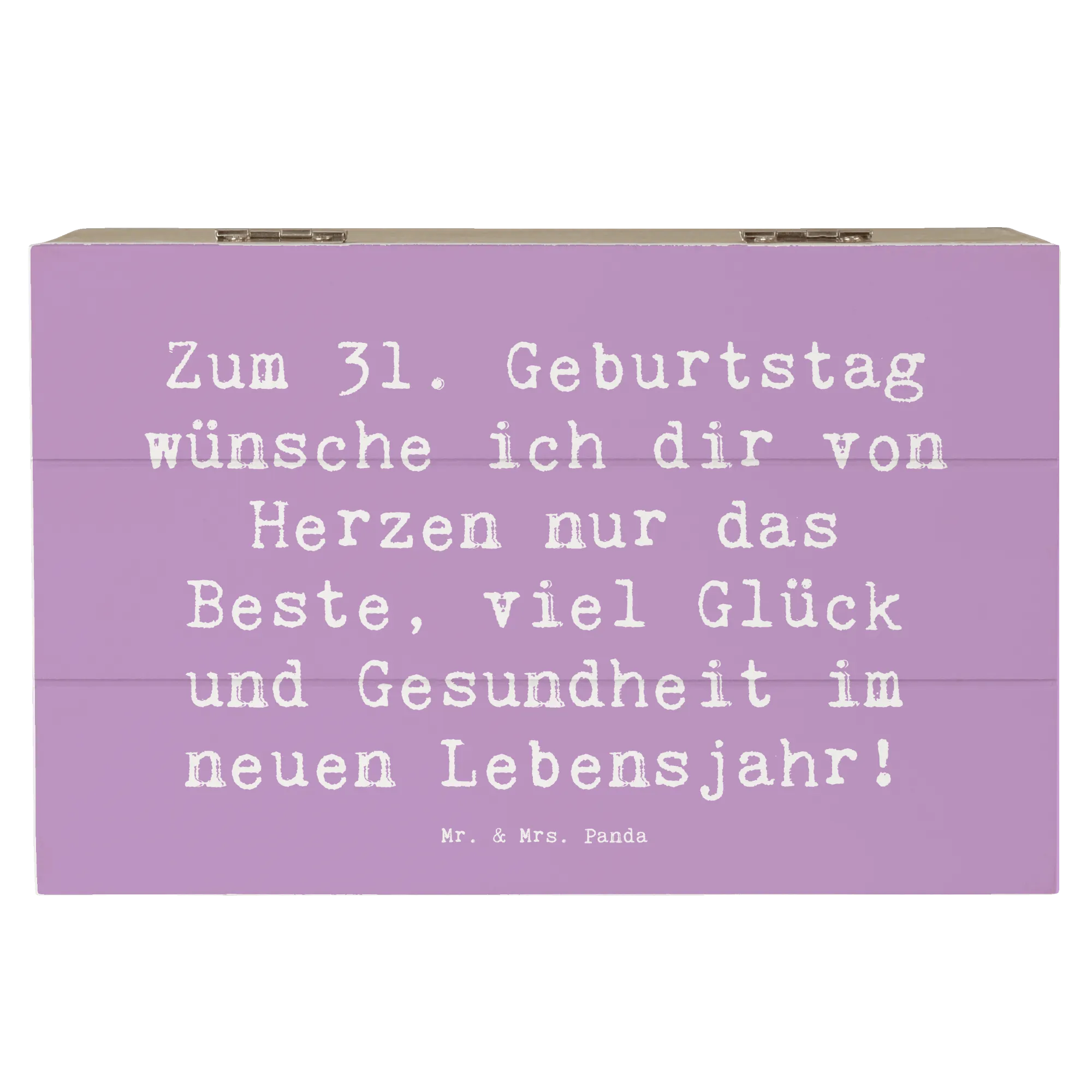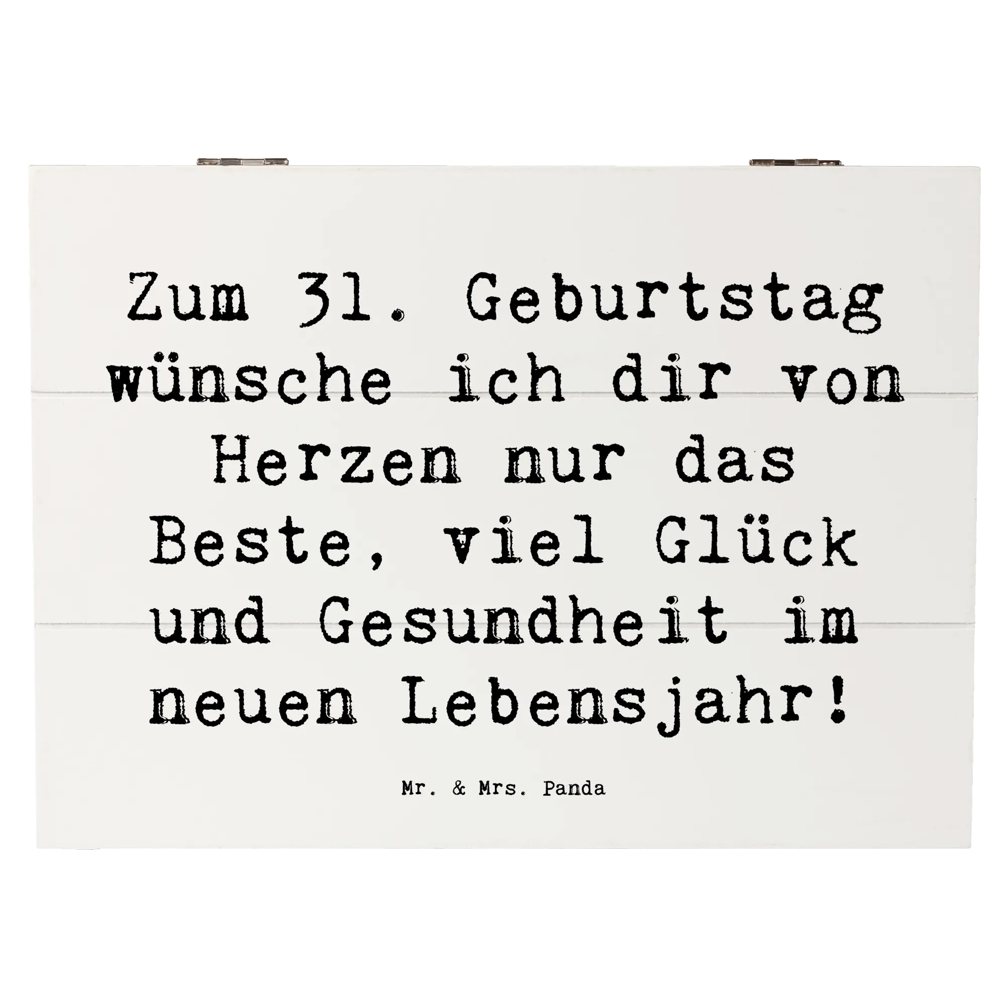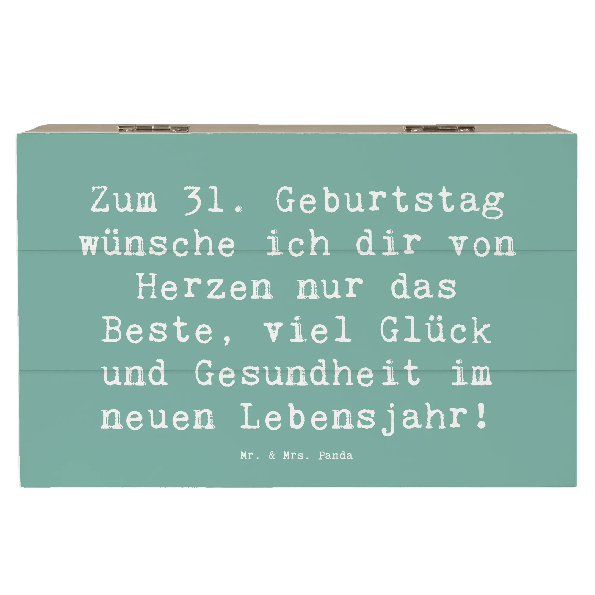 Die wunderschöne Holzkiste von Mr. & Mrs. Panda ist das perfekte Geschenk zum 31. Geburtstag! Bedruckt mit einem liebevollen Spruch: 'Zum 31. Geburtstag wünsche ich dir von Herzen nur das Beste, viel Glück und Gesundheit im neuen Lebensjahr!' wird diese Schatzkiste zum unvergesslichen Erinnerungsort für schöne Momente.