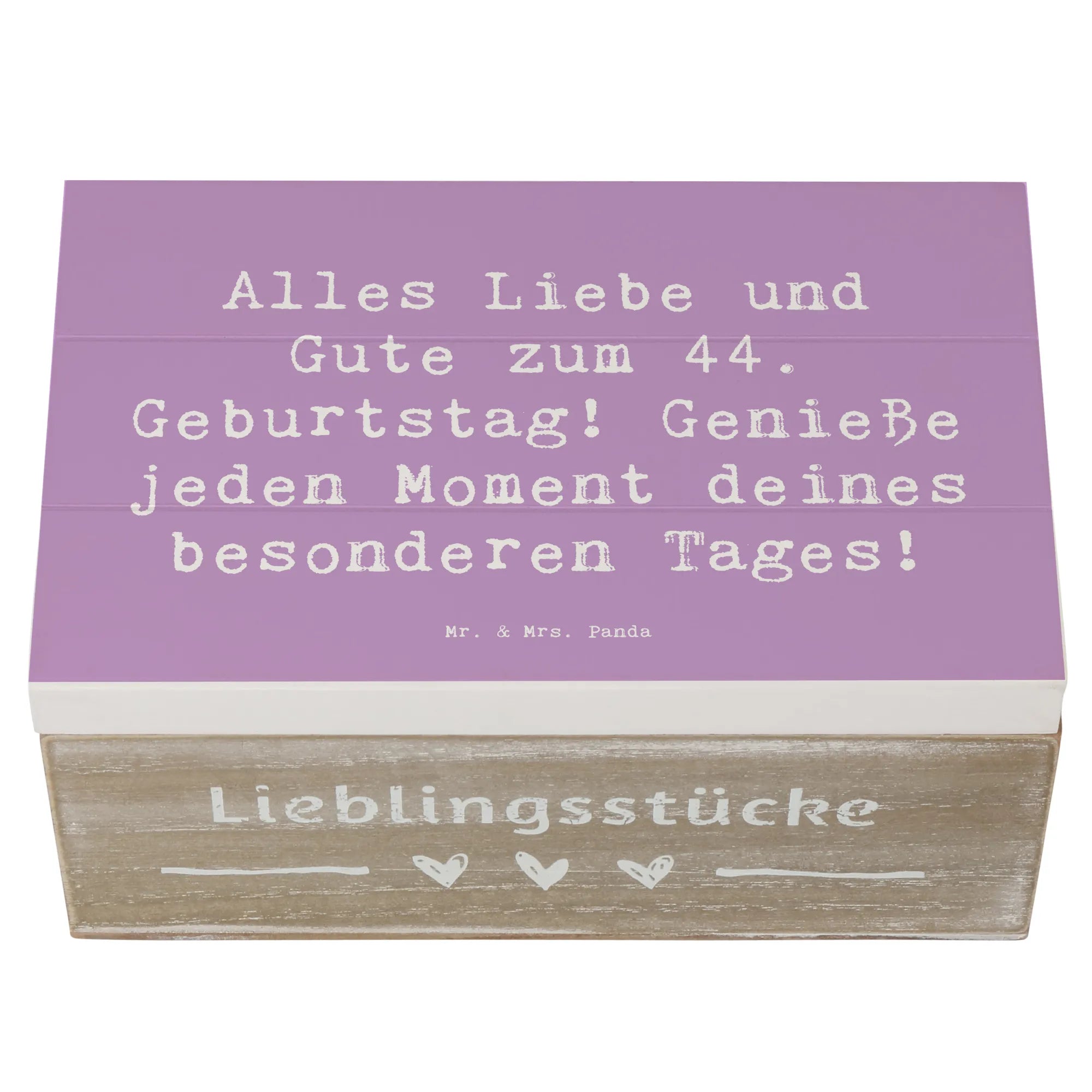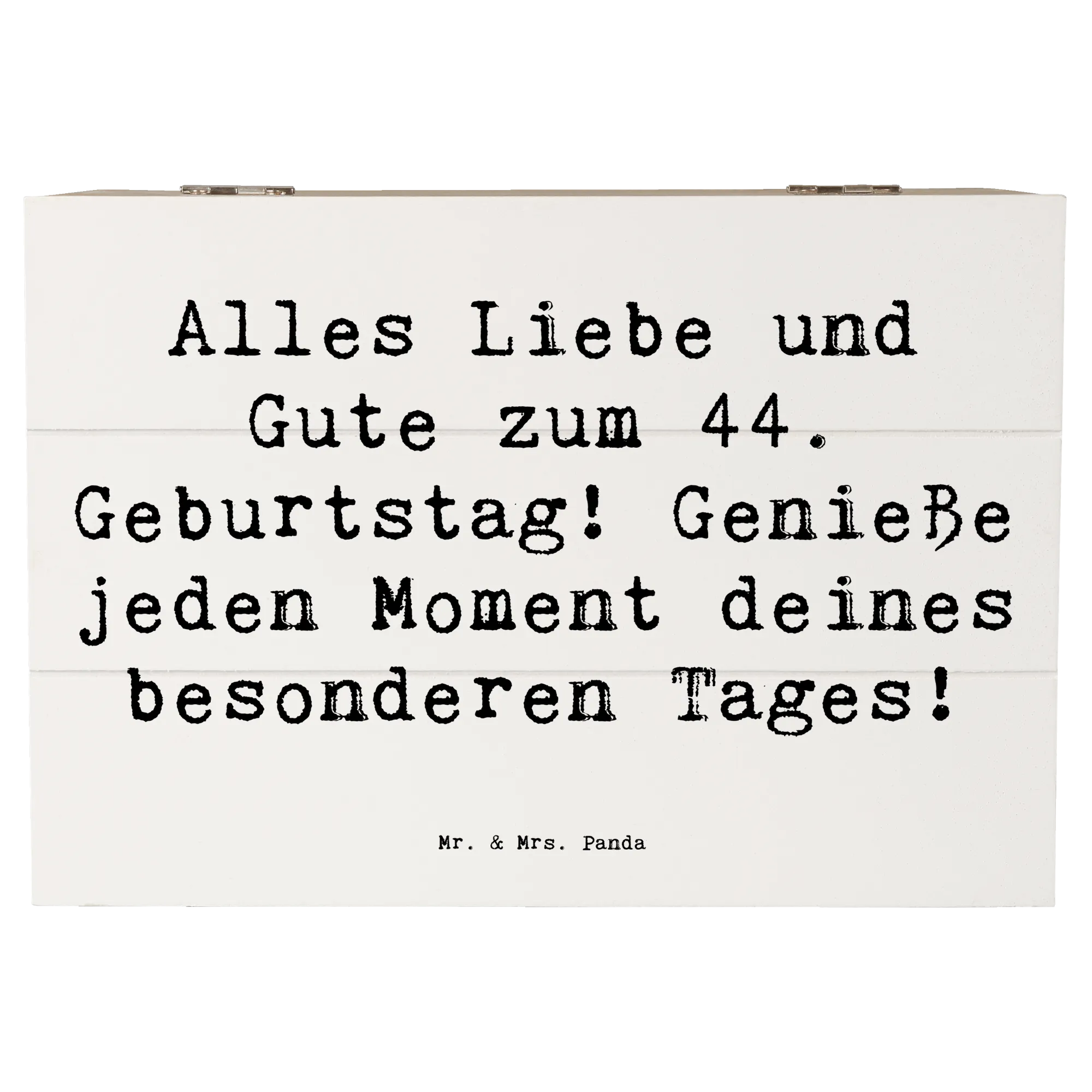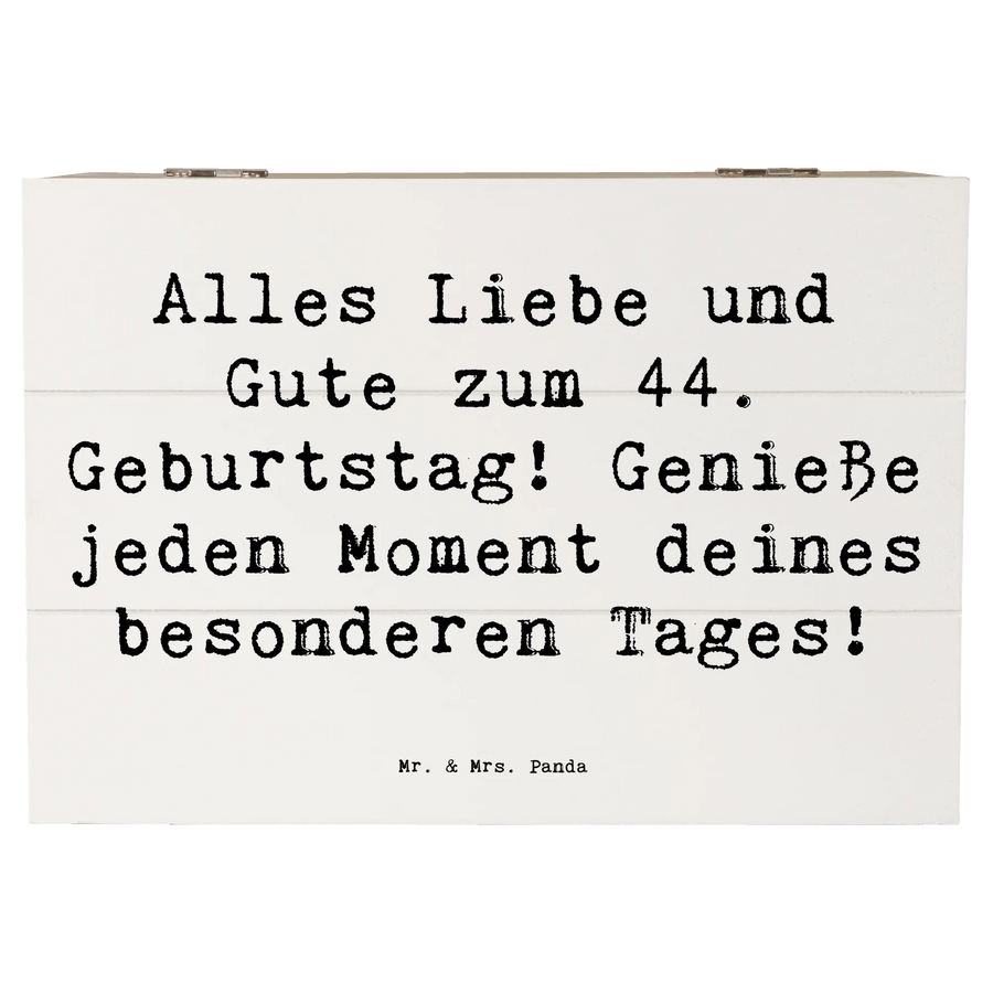 Die wunderschöne Holzkiste von Mr. & Mrs. Panda ist das perfekte Geschenk für den 44. Geburtstag. Mit dem liebevollen Motiv "Alles Liebe und Gute zum 44. Geburtstag! Genieße jeden Moment deines besonderen Tages!" ist diese außergewöhnliche Kiste nicht nur ein optisches Highlight, sondern auch ein echter Aufbewahrungsort für all die kleinen Schätze und Erinnerungen zum Feiern.