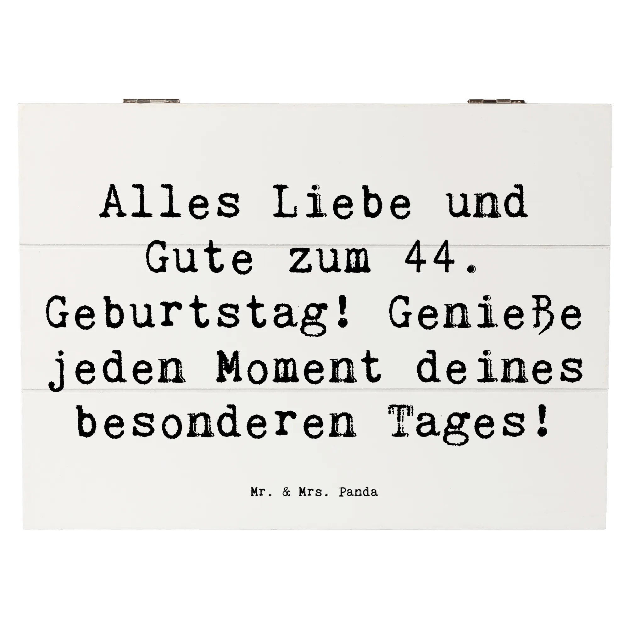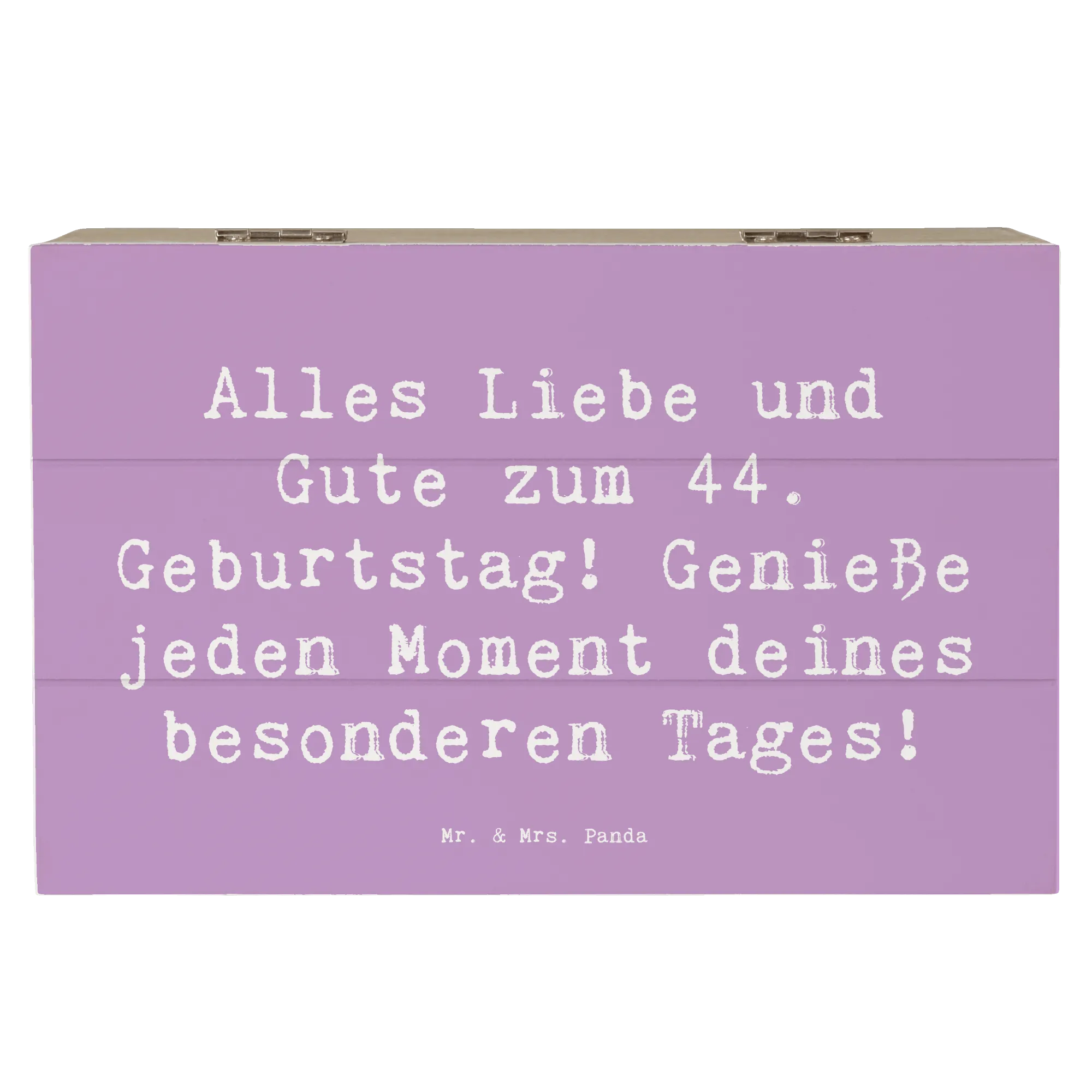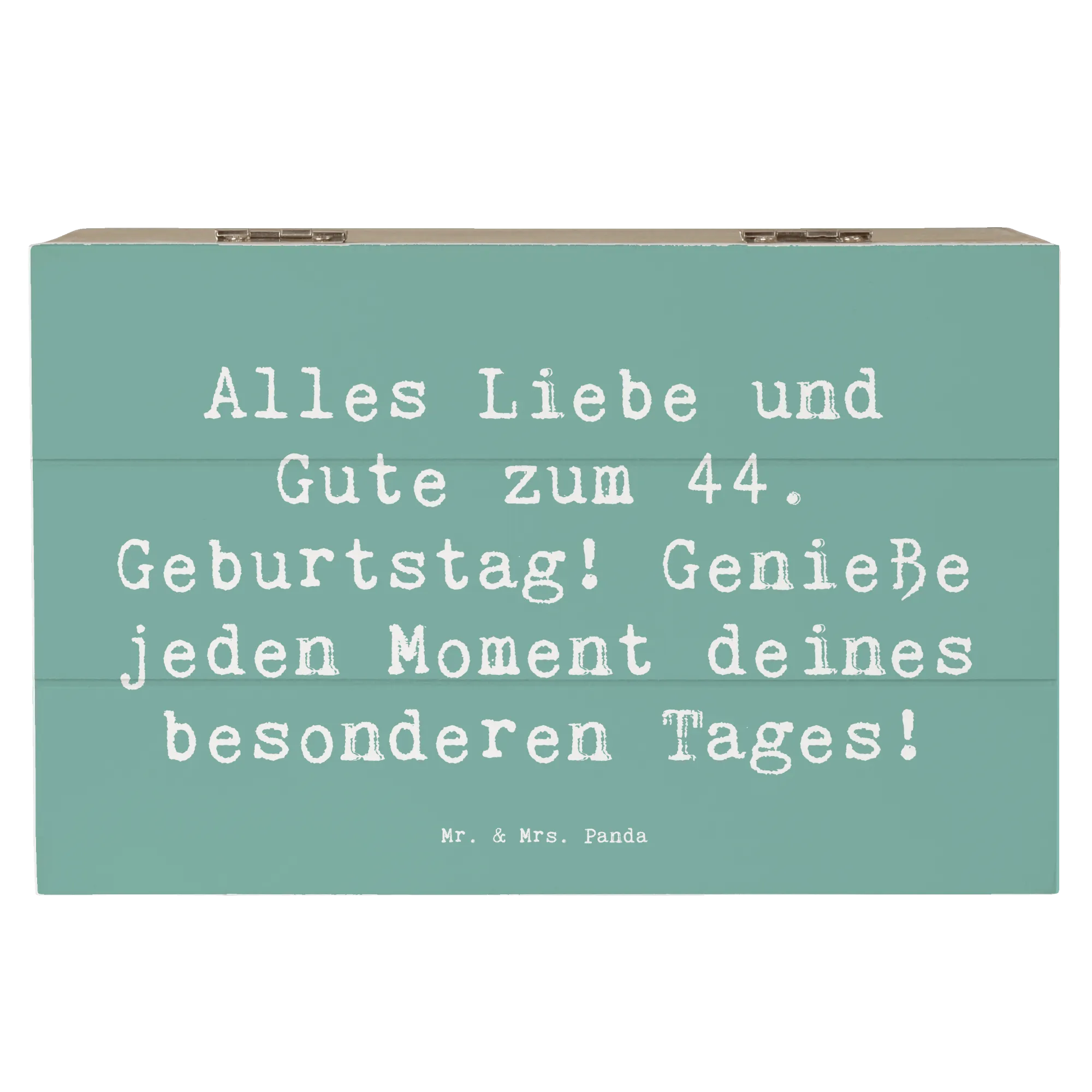 Die wunderschöne Holzkiste von Mr. & Mrs. Panda ist das perfekte Geschenk für den 44. Geburtstag. Mit dem liebevollen Motiv "Alles Liebe und Gute zum 44. Geburtstag! Genieße jeden Moment deines besonderen Tages!" ist diese außergewöhnliche Kiste nicht nur ein optisches Highlight, sondern auch ein echter Aufbewahrungsort für all die kleinen Schätze und Erinnerungen zum Feiern.