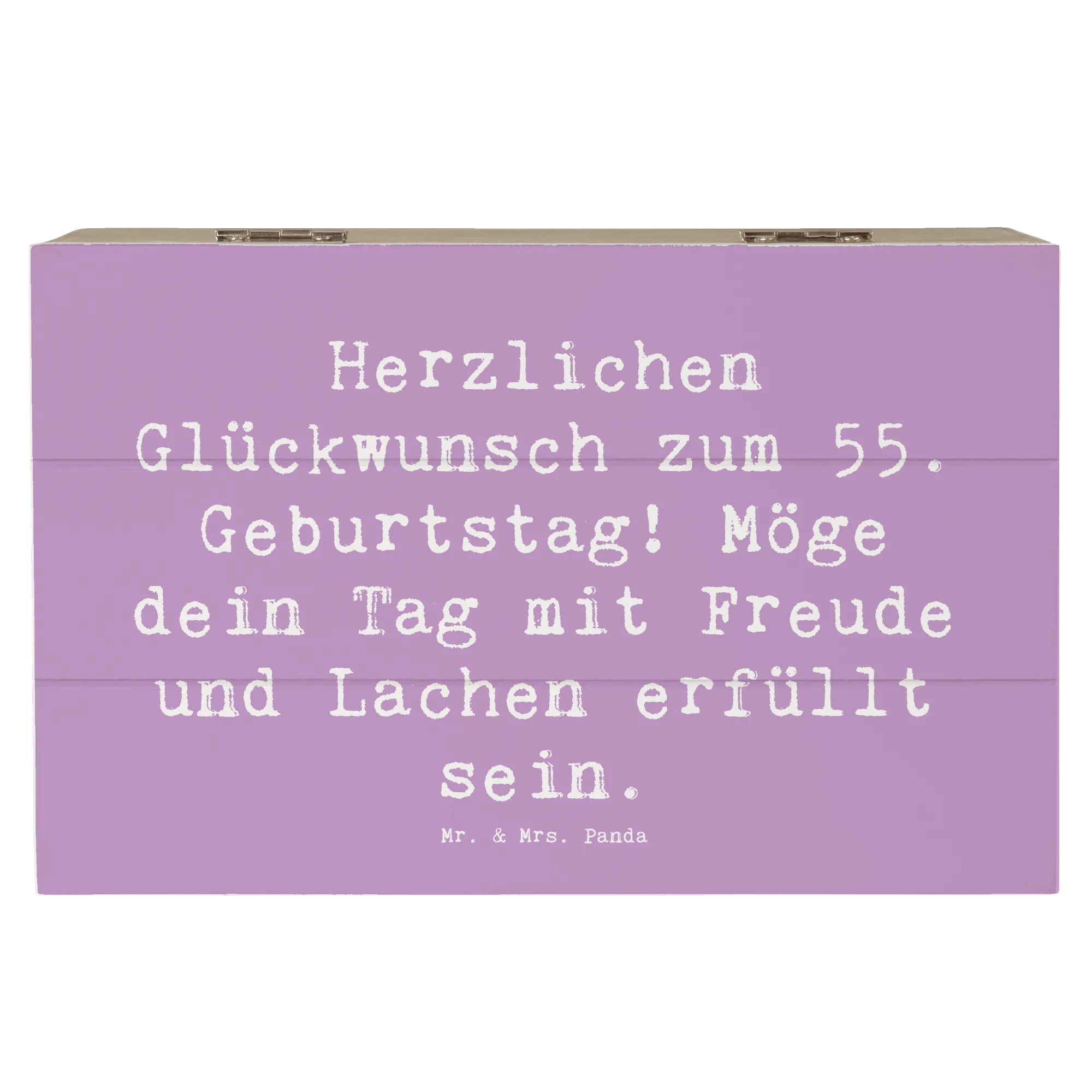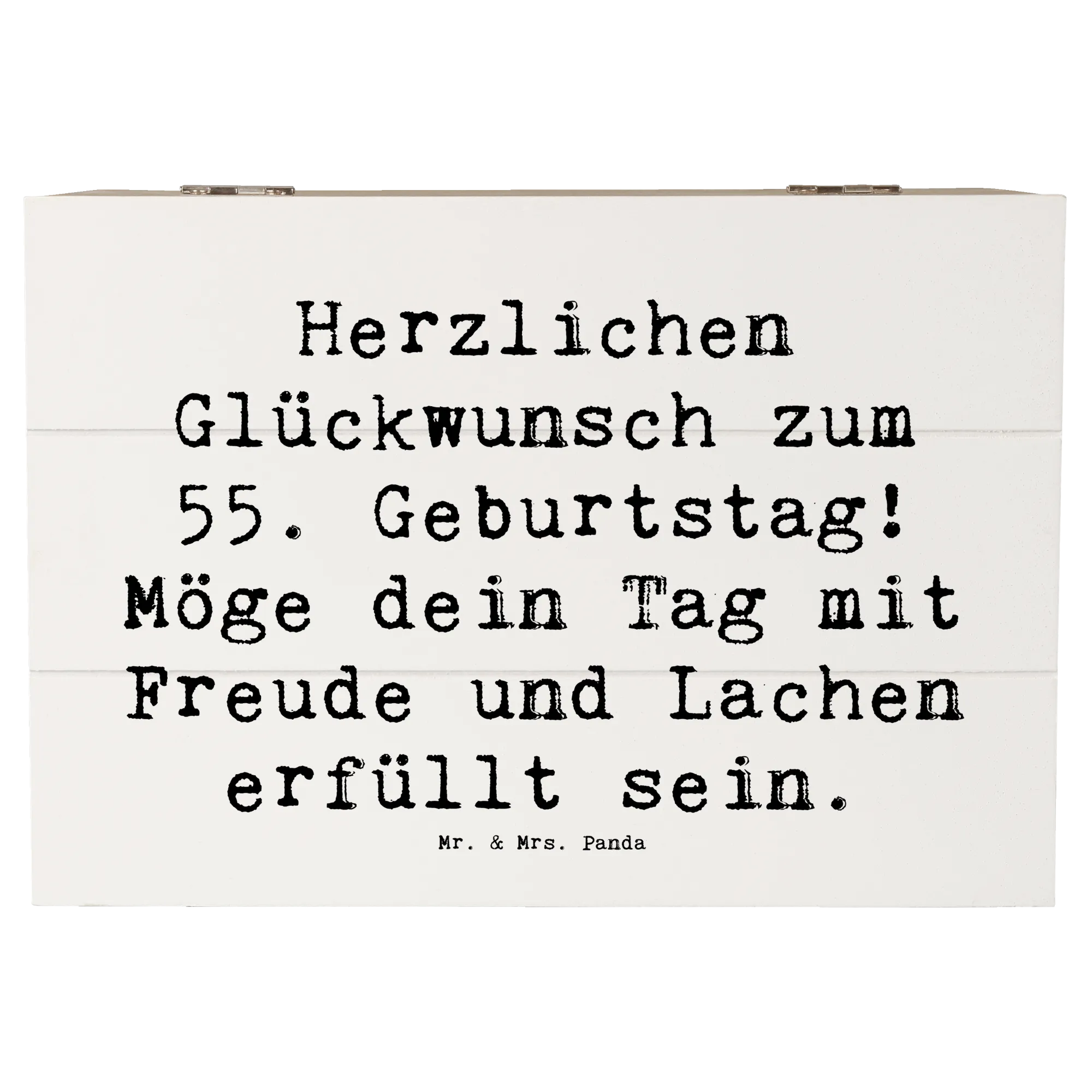 Die wunderschöne Holzkiste von Mr. & Mrs. Panda ist das perfekte Geschenk zum 55. Geburtstag! Diese besonders gestaltete Kiste, bedruckt mit dem Spruch "Herzlichen Glückwunsch zum 55. Geburtstag! Möge dein Tag mit Freude und Lachen erfüllt sein.", ist nicht nur ein praktisches Aufbewahrungsort für deine wertvollen Erinnerungen, sondern auch ein echter Hingucker. Ob für Geburtstagsgeschenke oder einfach als Dekoration, diese Holzkiste wird ganz sicher ein Lächeln auf die Gesichter der Beschenkten zaubern.