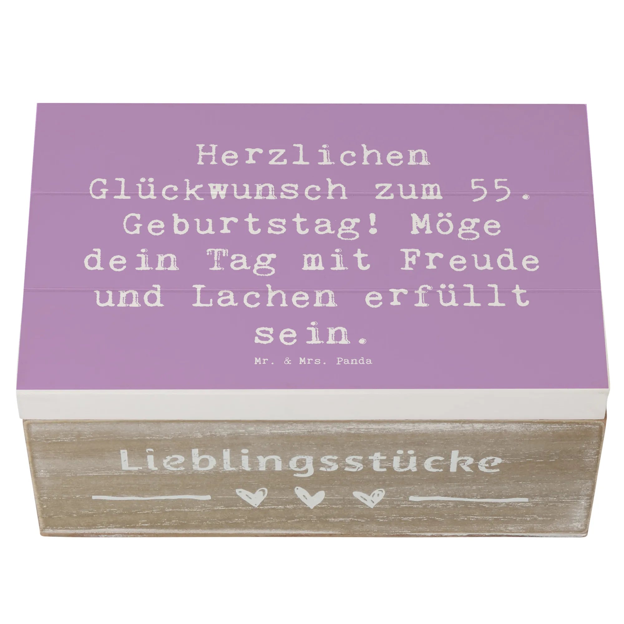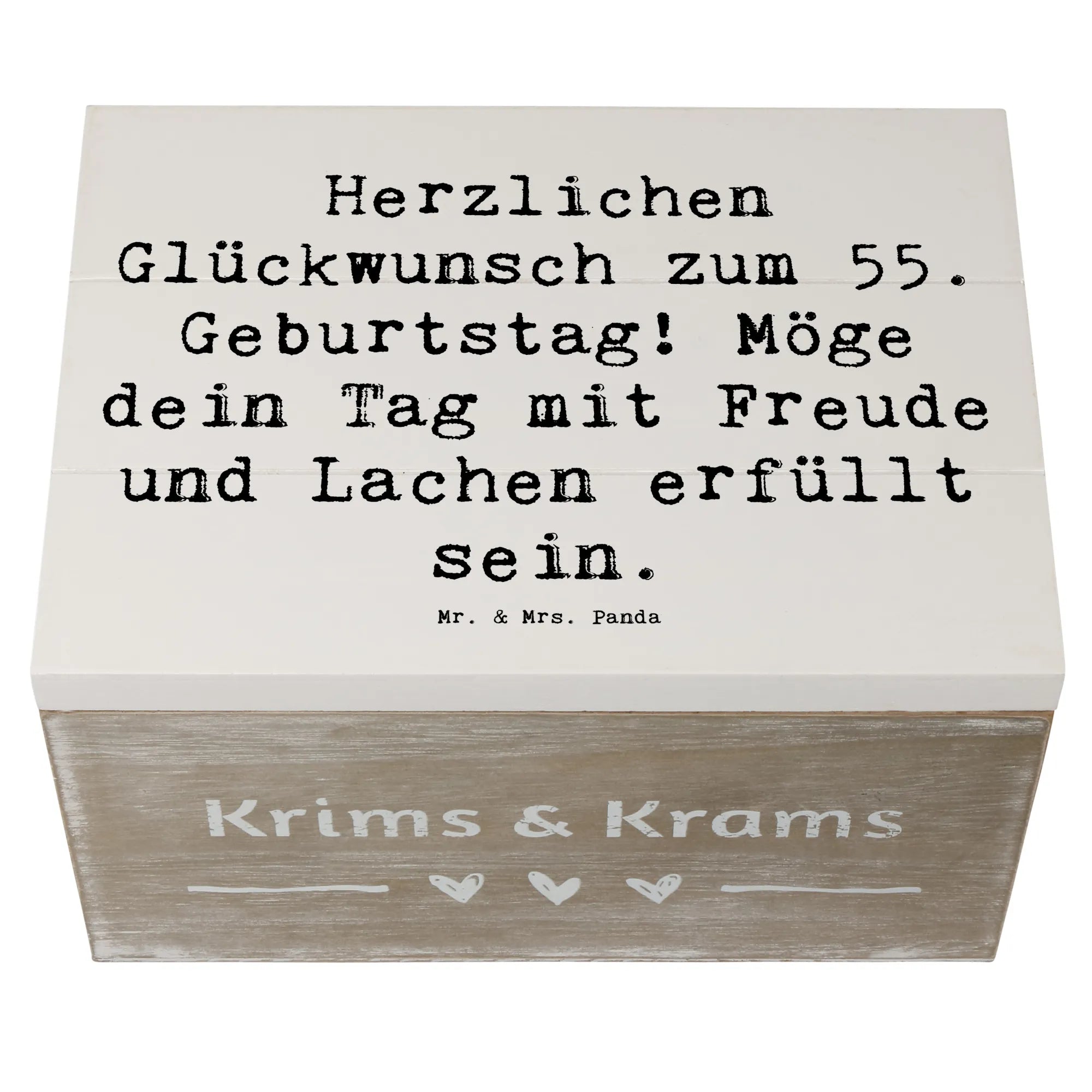 Die wunderschöne Holzkiste von Mr. & Mrs. Panda ist das perfekte Geschenk zum 55. Geburtstag! 🎉 Sie bringt nicht nur Freude und Lachen, sondern bietet auch einen liebevollen Aufbewahrungsort für wertvolle Erinnerungen. Egal ob Fotos, kleine Schätze aus Kindheitstagen oder besondere Geschenke – diese Erinnerungskiste ist ein wahres Must-Have für jeden, der den besonderen Tag gebührend feiern möchte. Mit einem liebevoll gestalteten Motiv und dem herzlichen Spruch 'Herzlichen Glückwunsch zum 55. Geburtstag! Möge dein Tag mit Freude und Lachen erfüllt sein.', wird die Kiste zum Highlight jeder Feier.