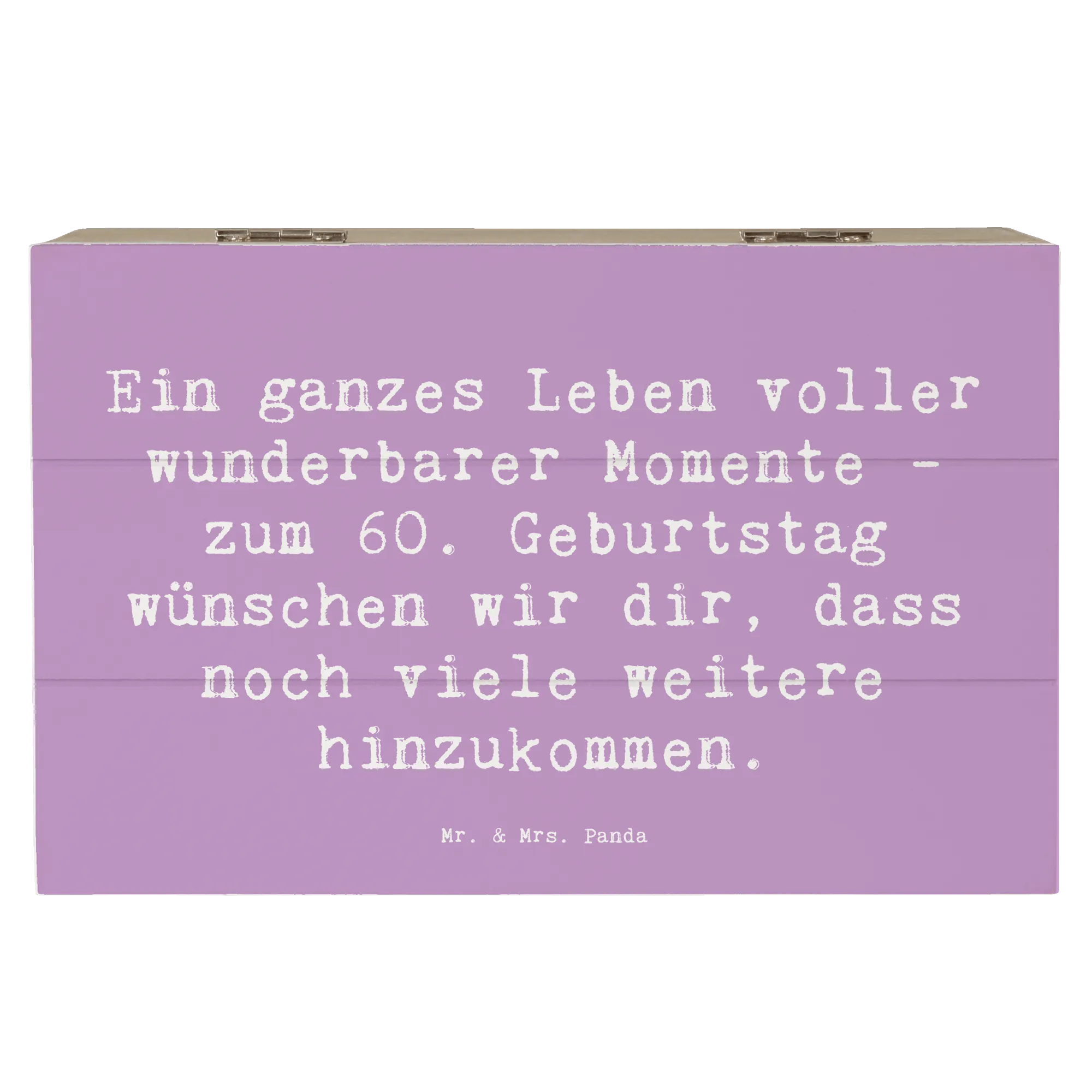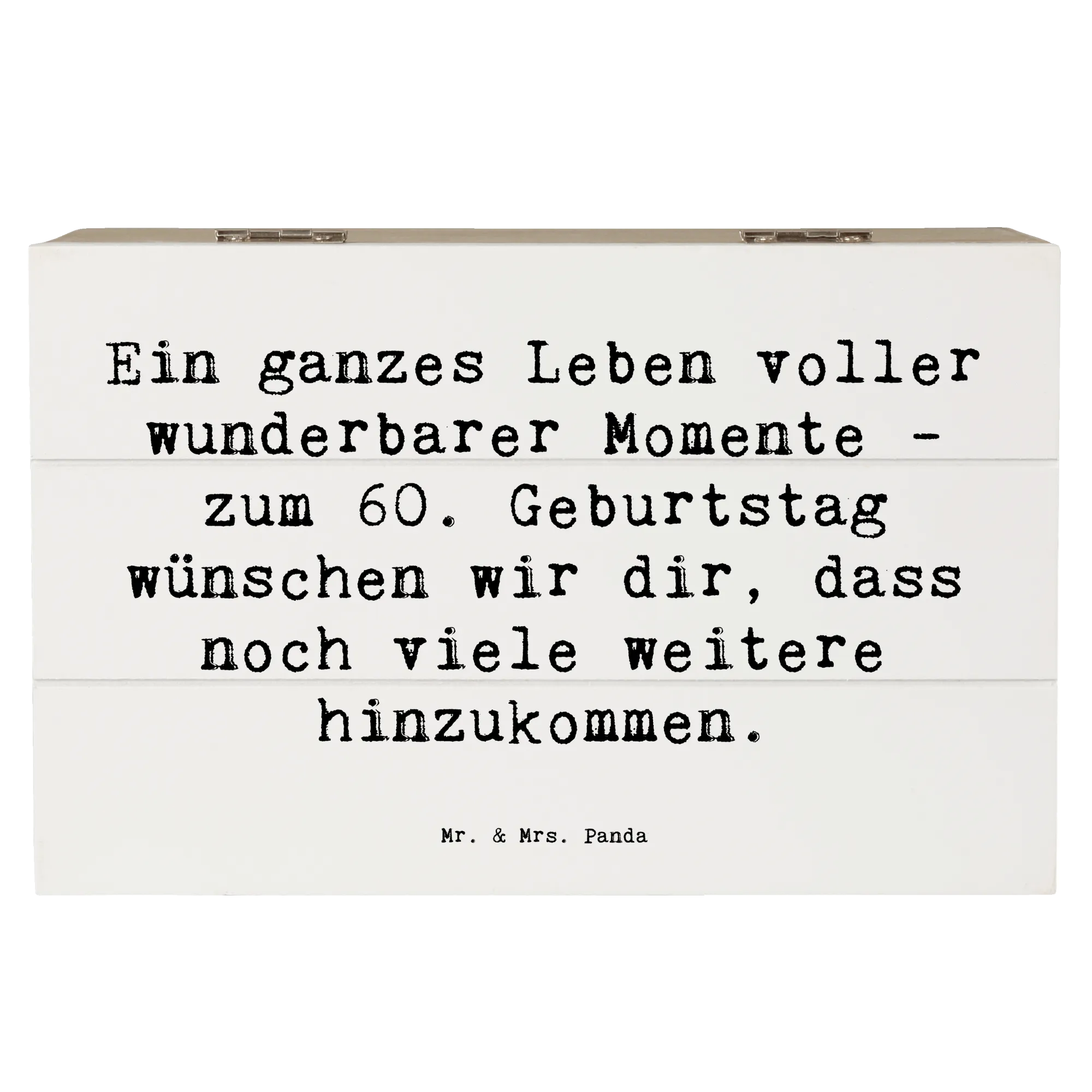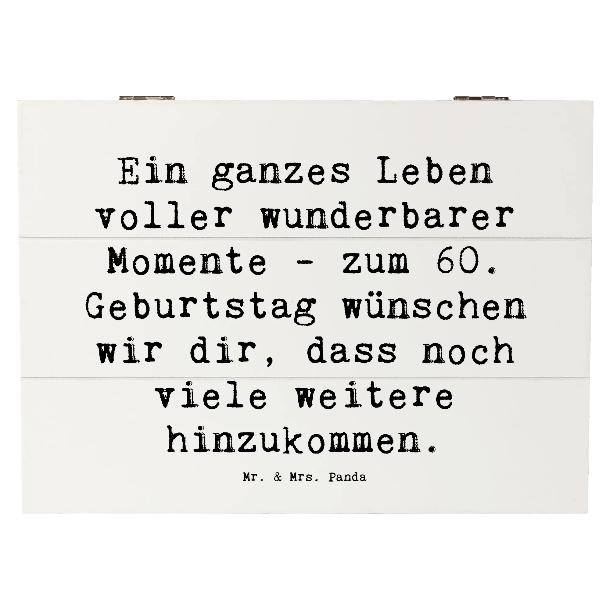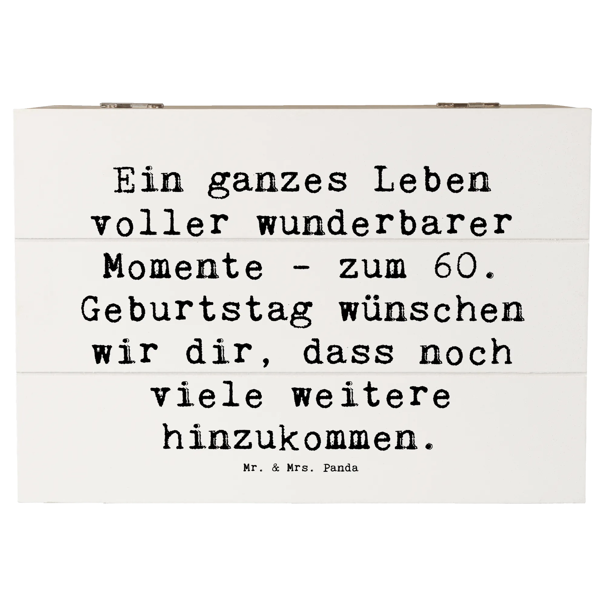 Die Holzkiste von Mr. & Mrs. Panda zum 60. Geburtstag ist das perfekte Geschenk für all jene, die diesen besonderen Tag gebührend feiern möchten.