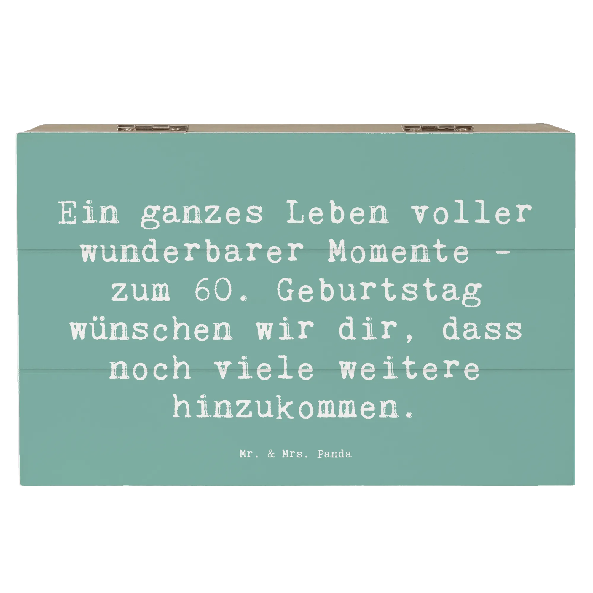 Du suchst ein nachhaltiges und wiederverwendbares Geschenk? Diese Kiste erfüllt genau diesen Wunsch. Nach dem Fest kann sie ganz einfach als Dekokiste genutzt oder für andere Anlässe hervorgeholt werden. Sie passt perfekt in jedes Zuhause und ist ein wunderbares Erinnerungsstück, das ein Leben lang Freude bereitet. Mach den 60. Geburtstag eines lieben Menschen unvergesslich mit dieser einzigartigen Geschenkbox von Mr. & Mrs. Panda.