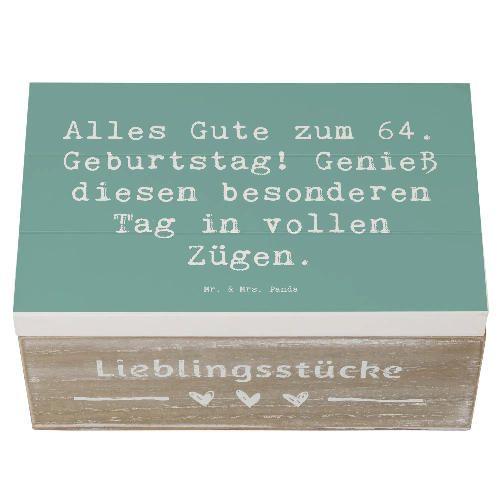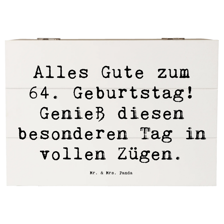 Du suchst nach dem perfekten Geschenk für einen ganz besonderen Menschen, der seinen 64. Geburtstag feiert? Unsere wunderschöne Holzkiste von Mr. & Mrs. Panda ist genau das richtige. Diese einzigartige Kiste ist nicht nur ein wunderbarer Aufbewahrungsort für wertvolle Erinnerungen, sondern auch eine liebevolle Geschenkidee, die im Herzen bleibt. Bedruckt mit dem herzlichen Spruch 'Alles Gute zum 64. Geburtstag! Genieß diesen besonderen Tag in vollen Zügen.' ist sie ein echter Hingucker für jeden Geburtstag.
