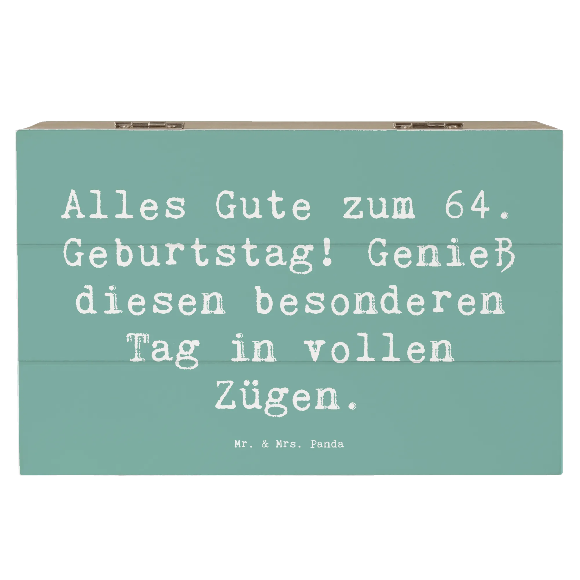 Wenn du auf der Suche nach etwas Einzigartigem zum 64. Geburtstag bist, dann ist diese Holzkiste genau das Richtige für dich! Sie ist ein fester Bestandteil der Geburtstagskollektion von Mr. & Mrs. Panda, die für Freude und gute Laune sorgt. Mit einem originellen Geschenk wie dieser Kiste schaffst du Erinnerungen, die ein Leben lang halten!