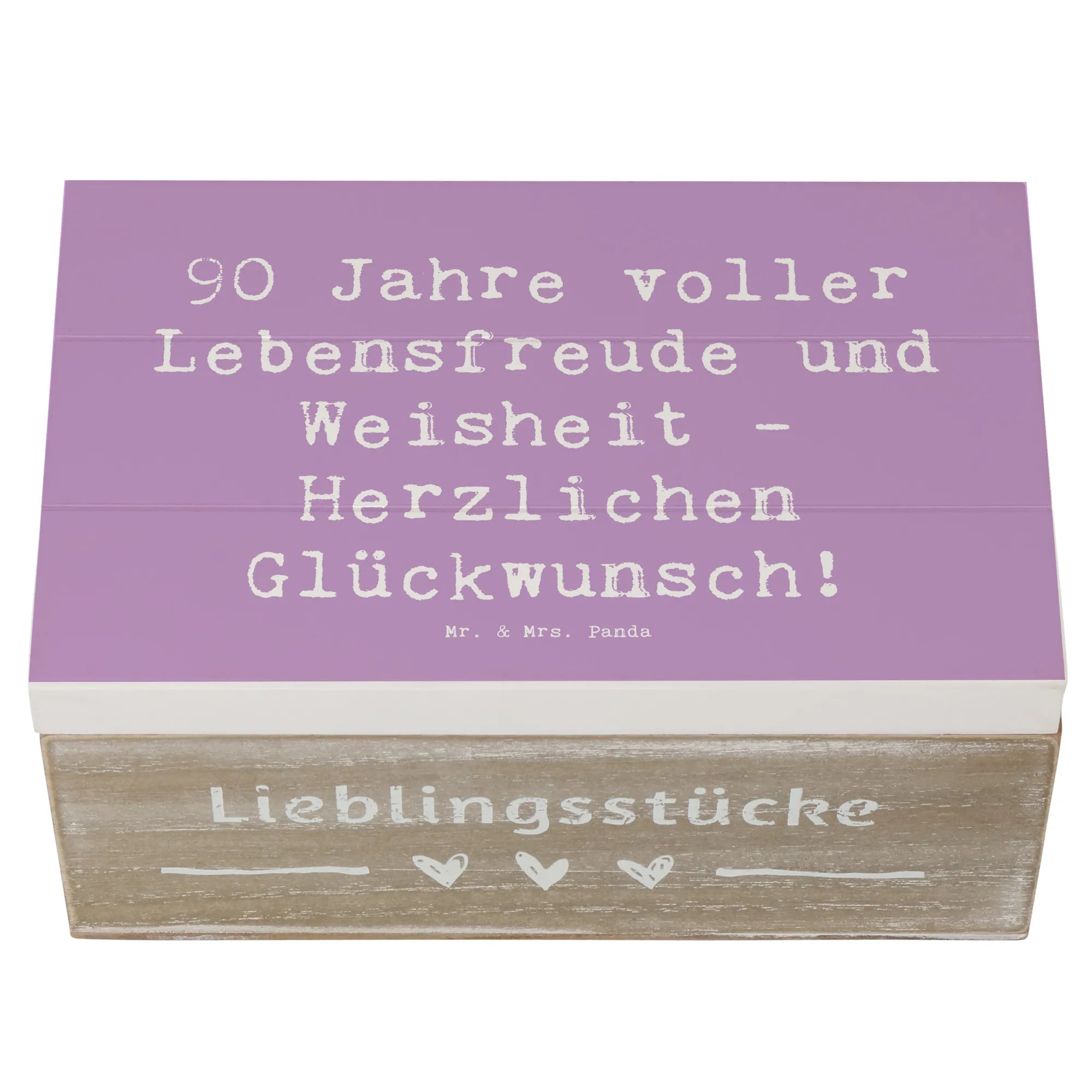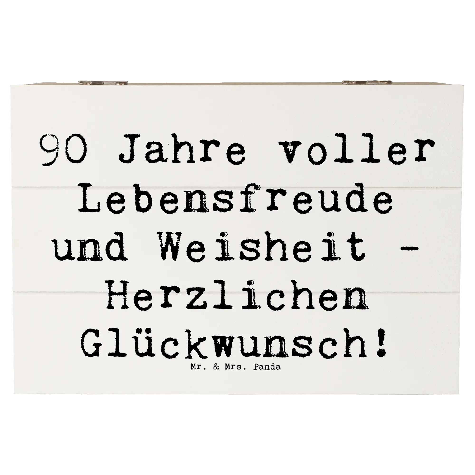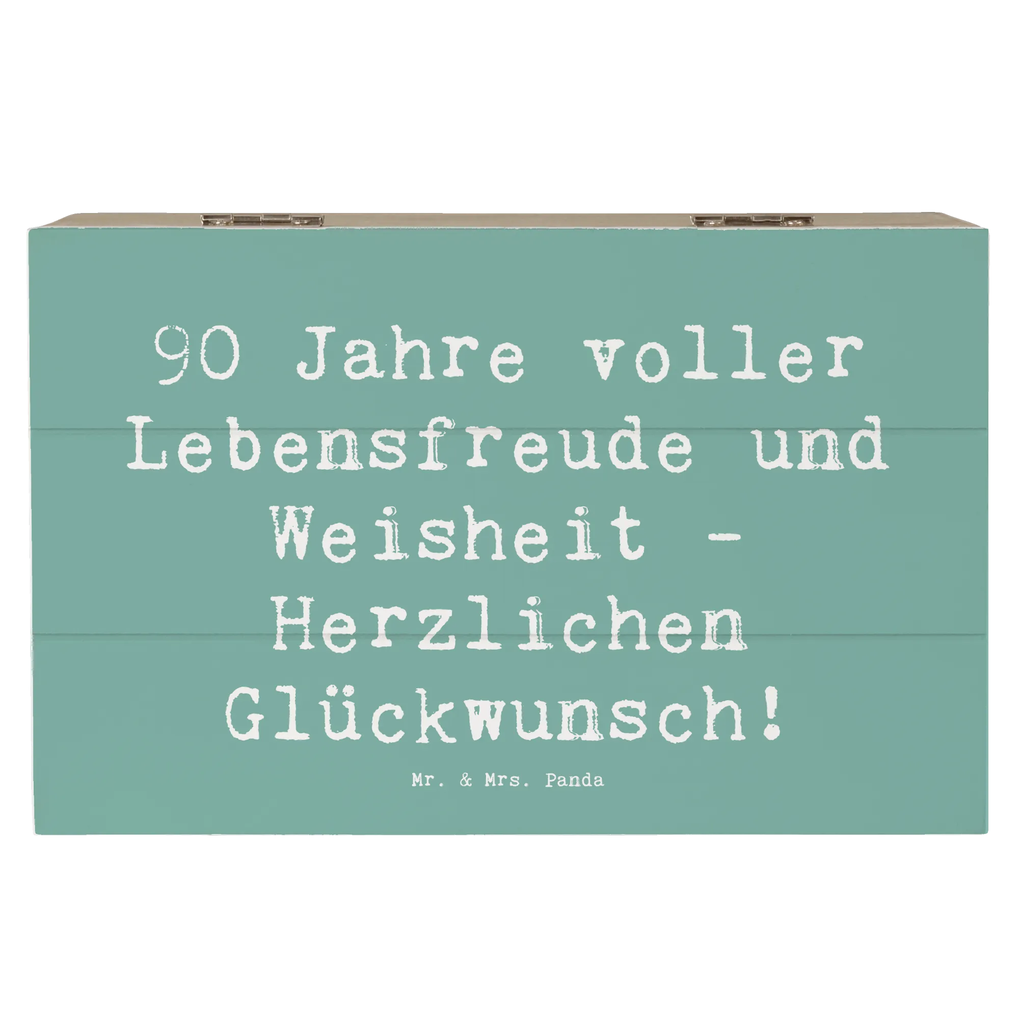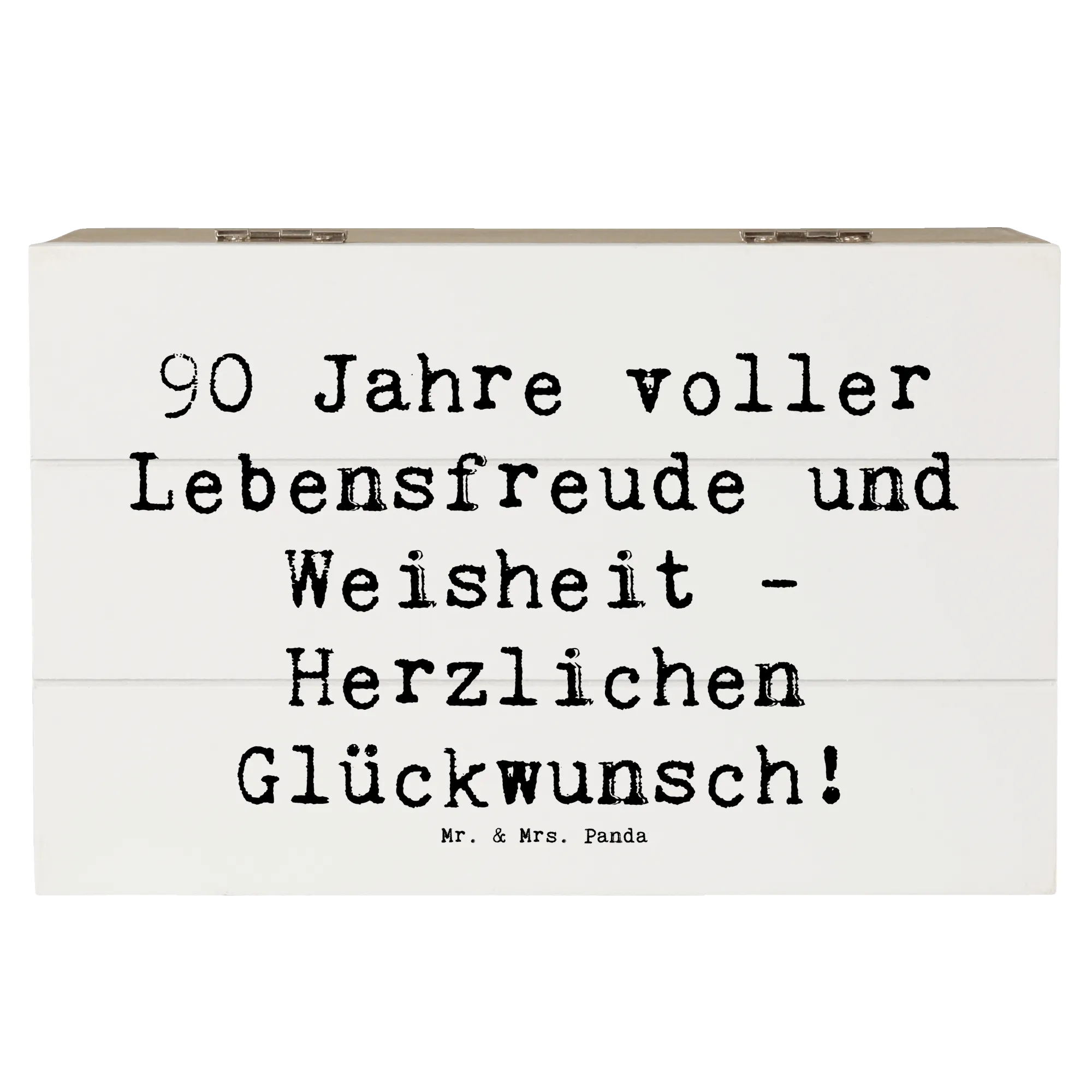Die wunderschöne Holzkiste von Mr. & Mrs. Panda ist das perfekte Geschenk zum 90. Geburtstag! 🎉 Mit dem liebevollen Motiv "90 Jahre voller Lebensfreude und Weisheit - Herzlichen Glückwunsch!" ist diese Erinnerungskiste nicht nur ein echter Hingucker, sondern auch ein ganz besonderer Aufbewahrungsort für die wertvollsten Schätze und Erinnerungen. Ob Fotos, kleine Andenken oder andere Kostbarkeiten - in dieser schönen Truhe finden alle tollen Dinge ihren Platz.