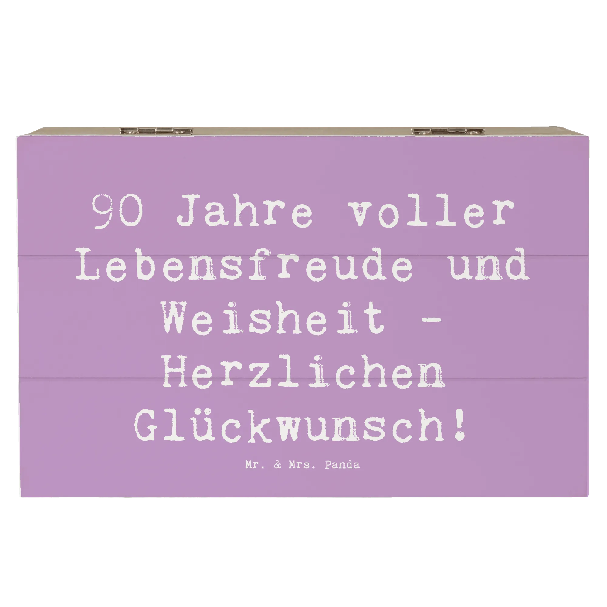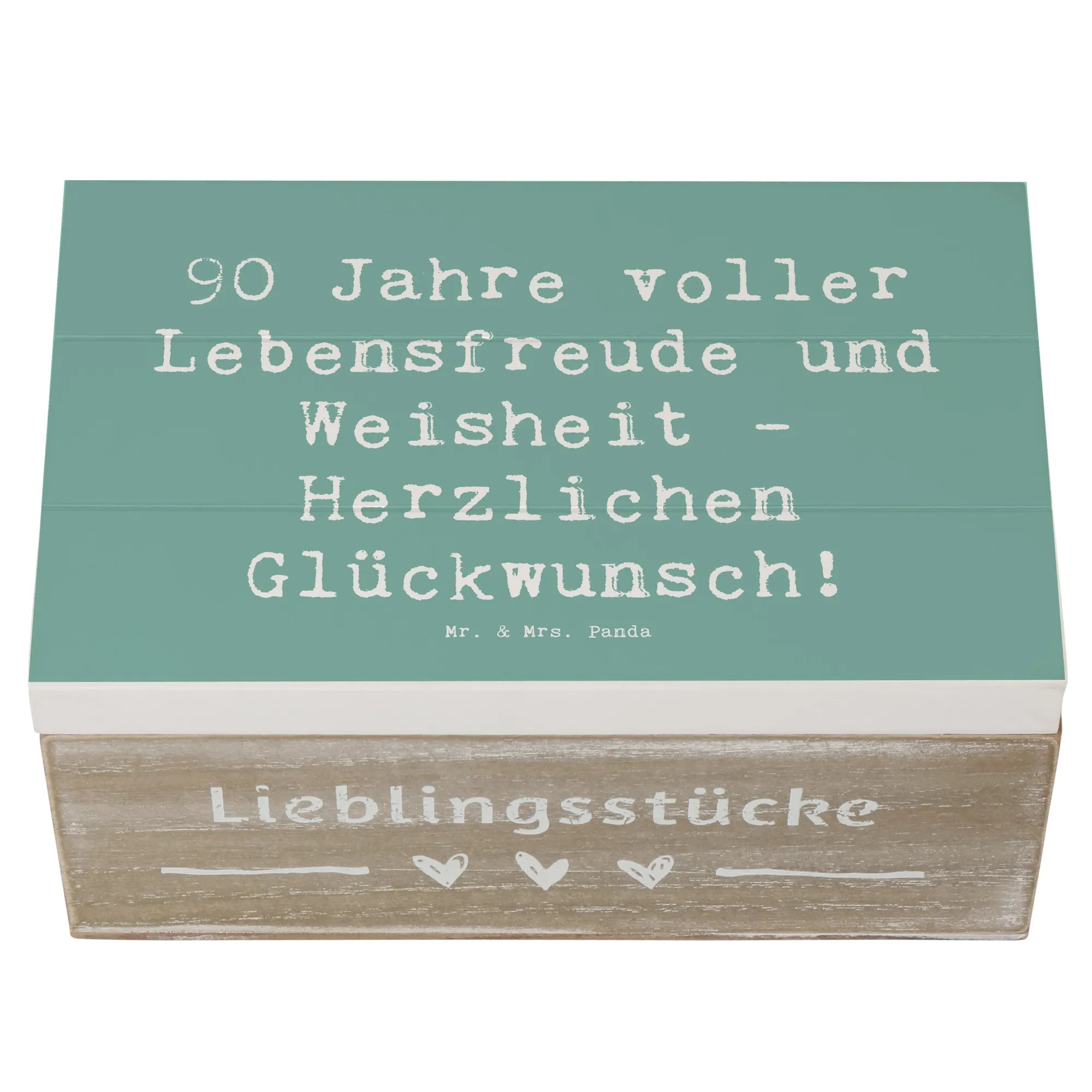 Die wunderschöne Holzkiste von Mr. & Mrs. Panda ist das ideale Geschenk zum 90. Geburtstag für all jene, die diesen besonderen Tag in vollen Zügen genießen und in Erinnerung behalten möchten. Sie ist nicht nur eine stabile und langlebige Aufbewahrungslösung, sondern auch eine bezaubernde Dekokiste, die mit einem herzerwärmenden Spruch verziert ist: "90 Jahre voller Lebensfreude und Weisheit - Herzlichen Glückwunsch!" Diese Erinnerungskiste ist perfekt geeignet, um angesammelte Schätze aus der Kindheit, Fotos oder andere wertvolle Erinnerungen sicher aufzubewahren.