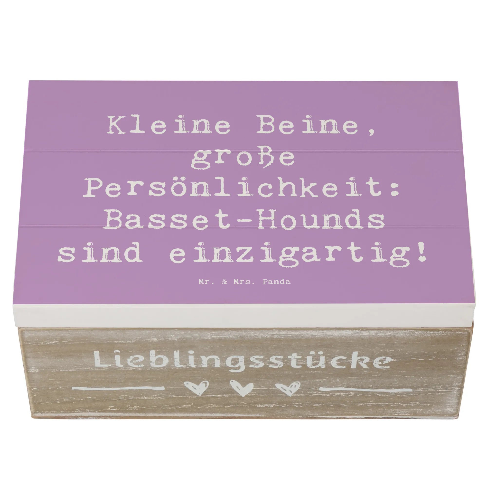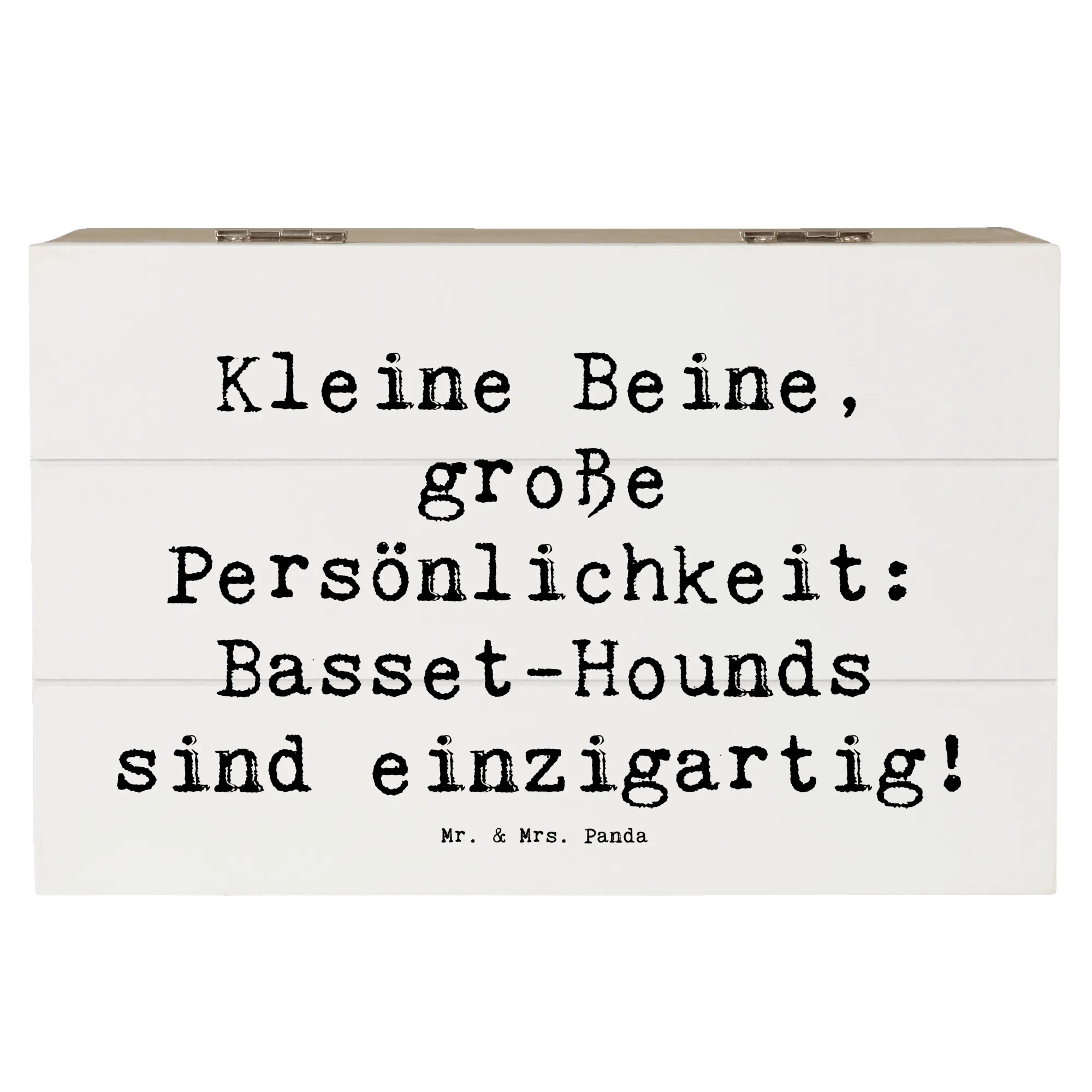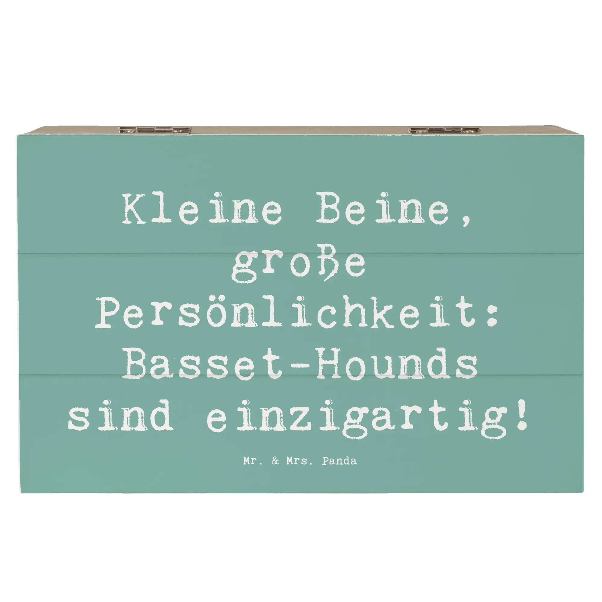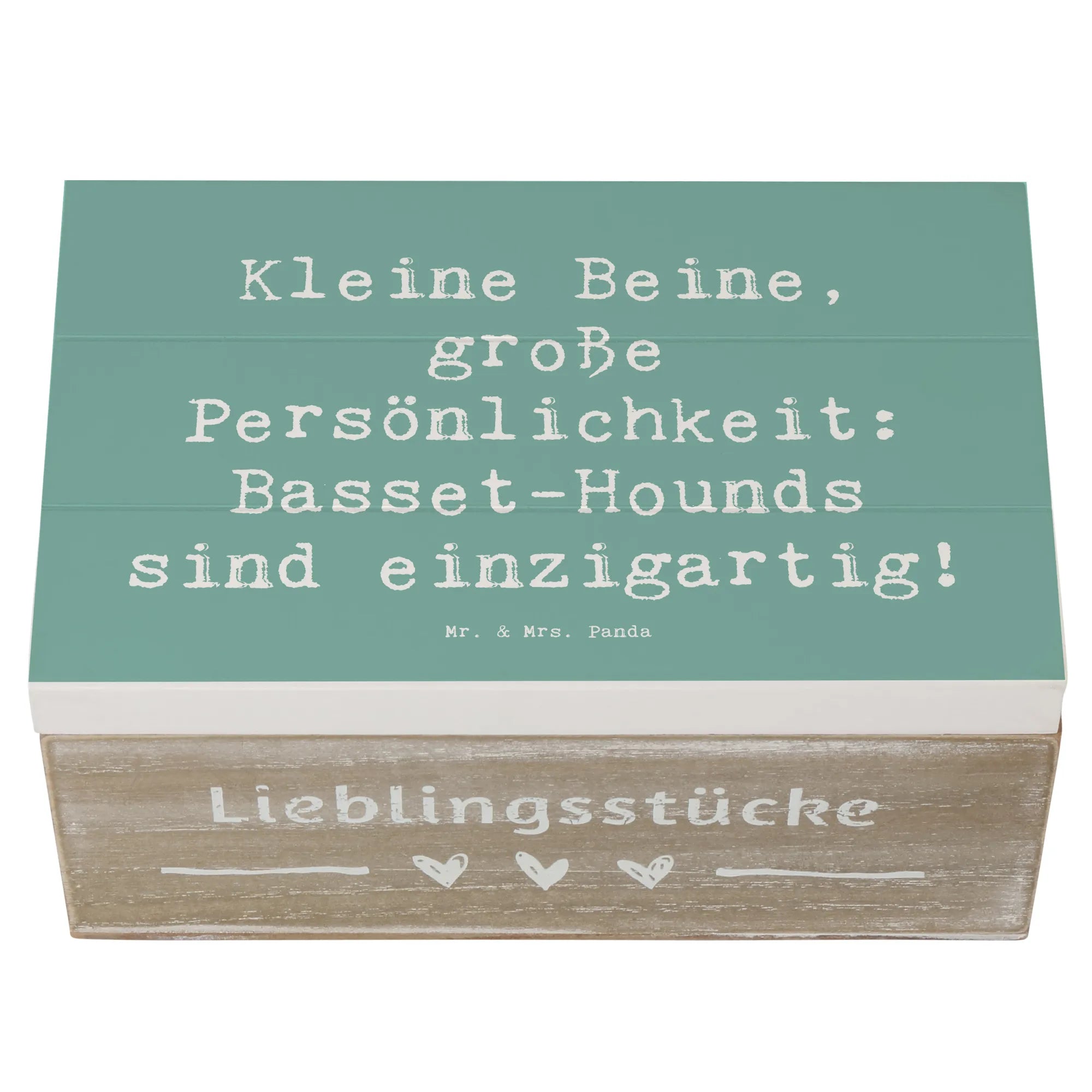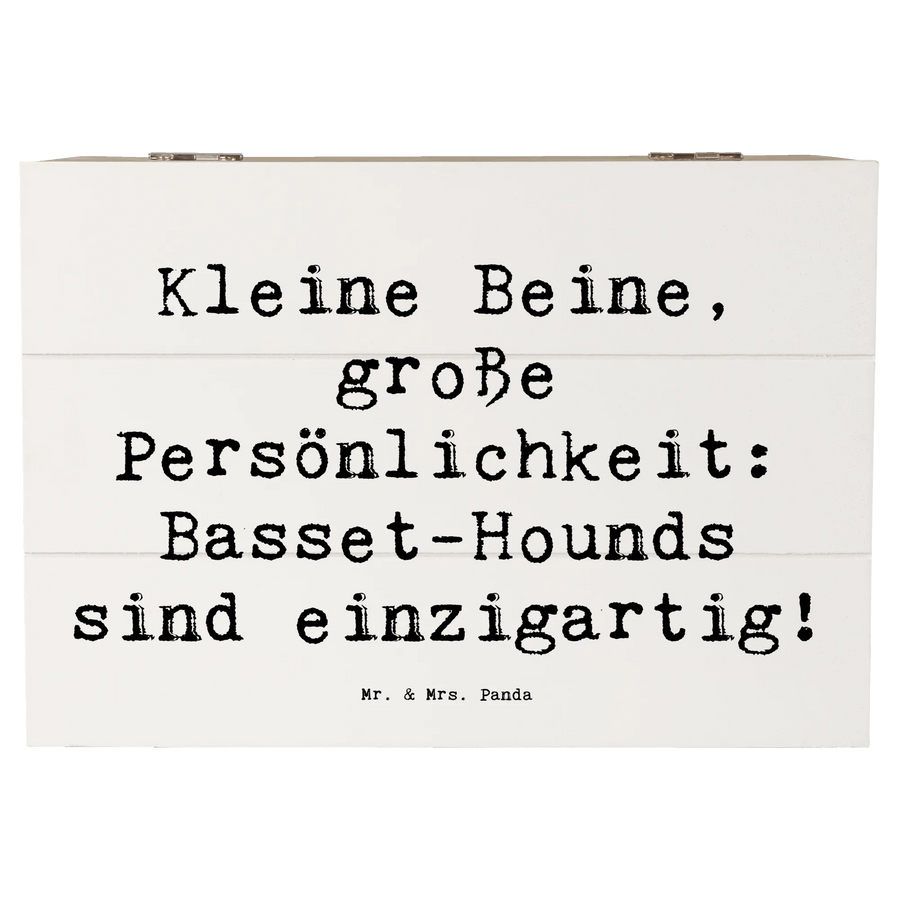 Die wunderschöne Holzkiste mit dem zauberhaften Basset Hound Motiv von Mr. & Mrs. Panda ist das perfekte Geschenk für jeden Hundeliebhaber! Mit ihrem Spruch "Kleine Beine, große Persönlichkeit: Basset-Hounds sind einzigartig!" bringt diese Kiste ein Lächeln auf jedes Gesicht.