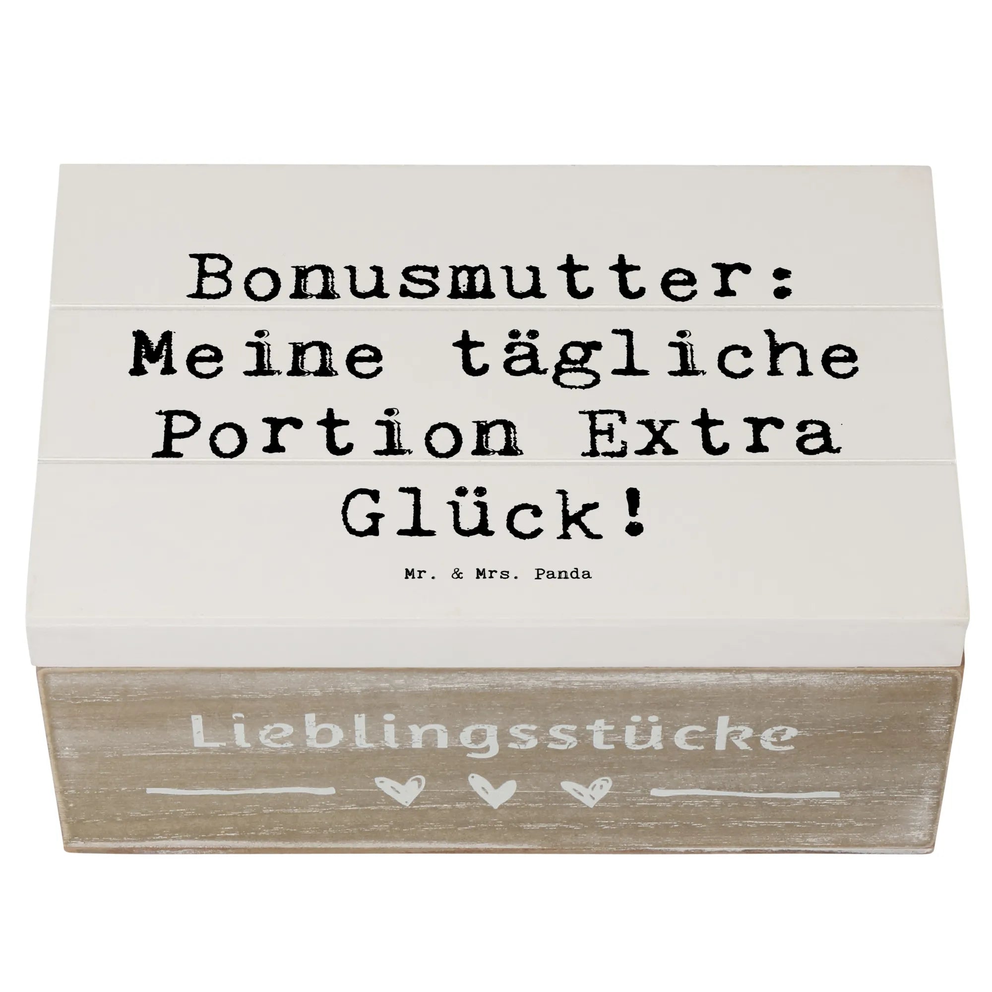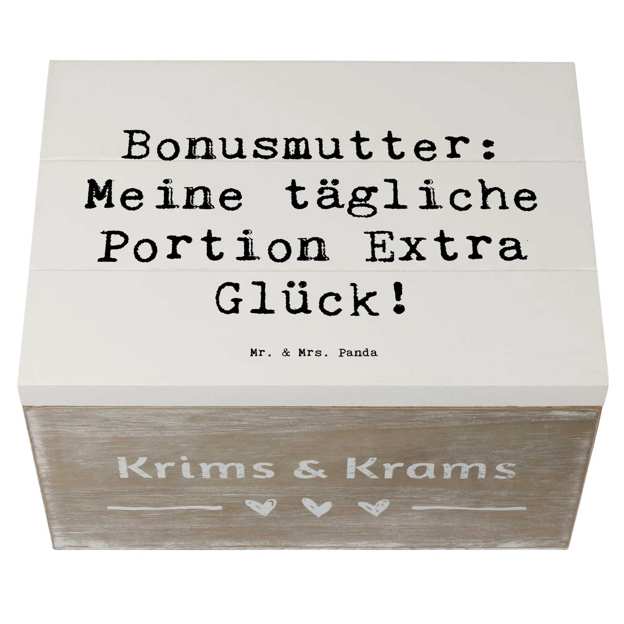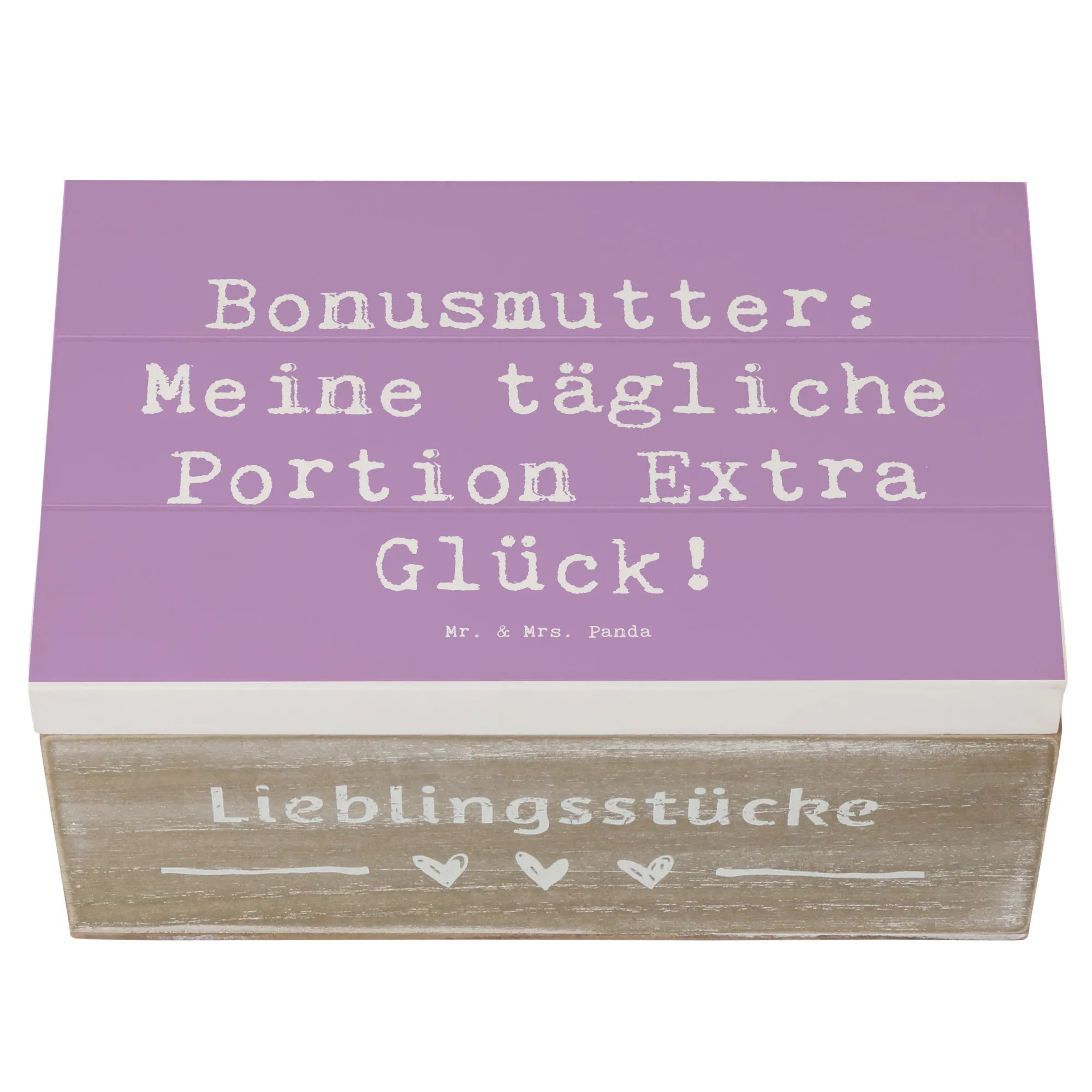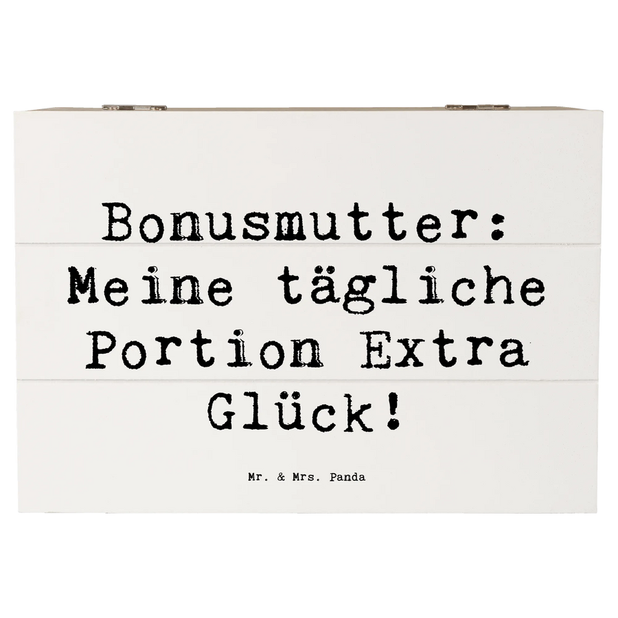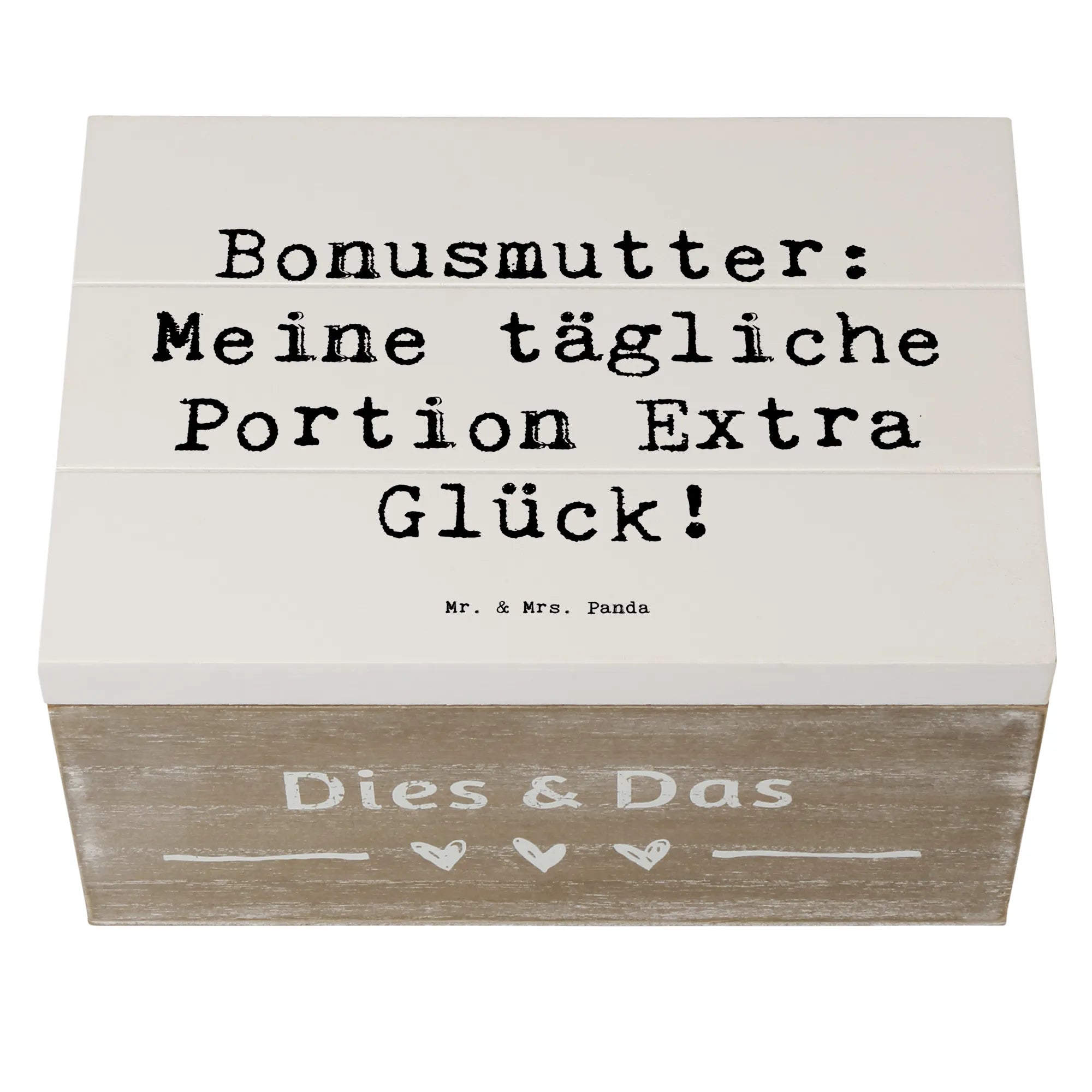 Entdecke die liebevoll gestaltete Holzkiste "Bonusmutter: Meine tägliche Portion Extra Glück!" von Mr. & Mrs. Panda. Diese wunderschöne Kiste aus robuster Holzfaser ist nicht nur eine praktische Aufbewahrungslösung, sondern auch ein ganz besonderes Geschenk für alle Bonusmütter, Stiefmütter oder einfach für Frauen, die eine herausragende Rolle in deinem Leben spielen.