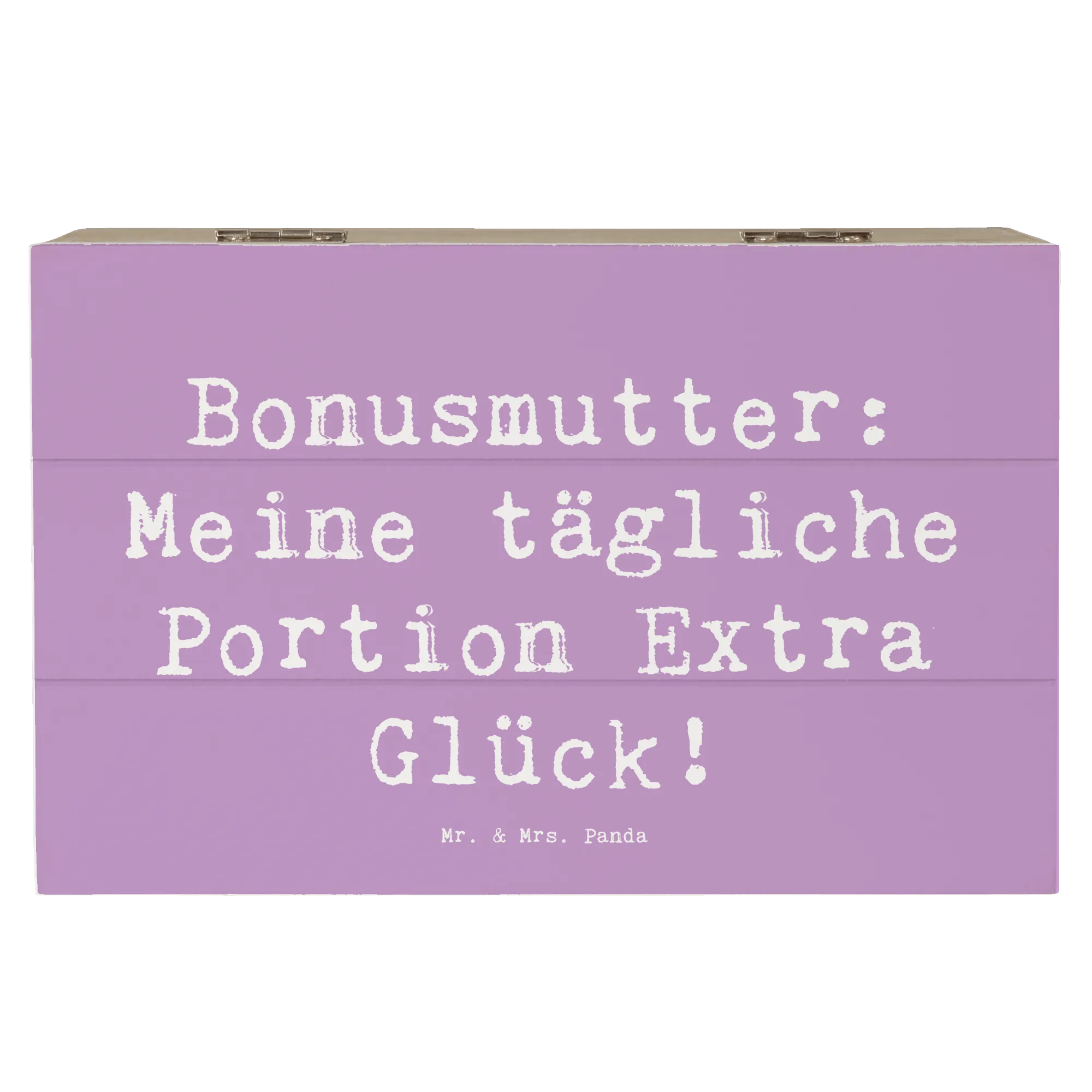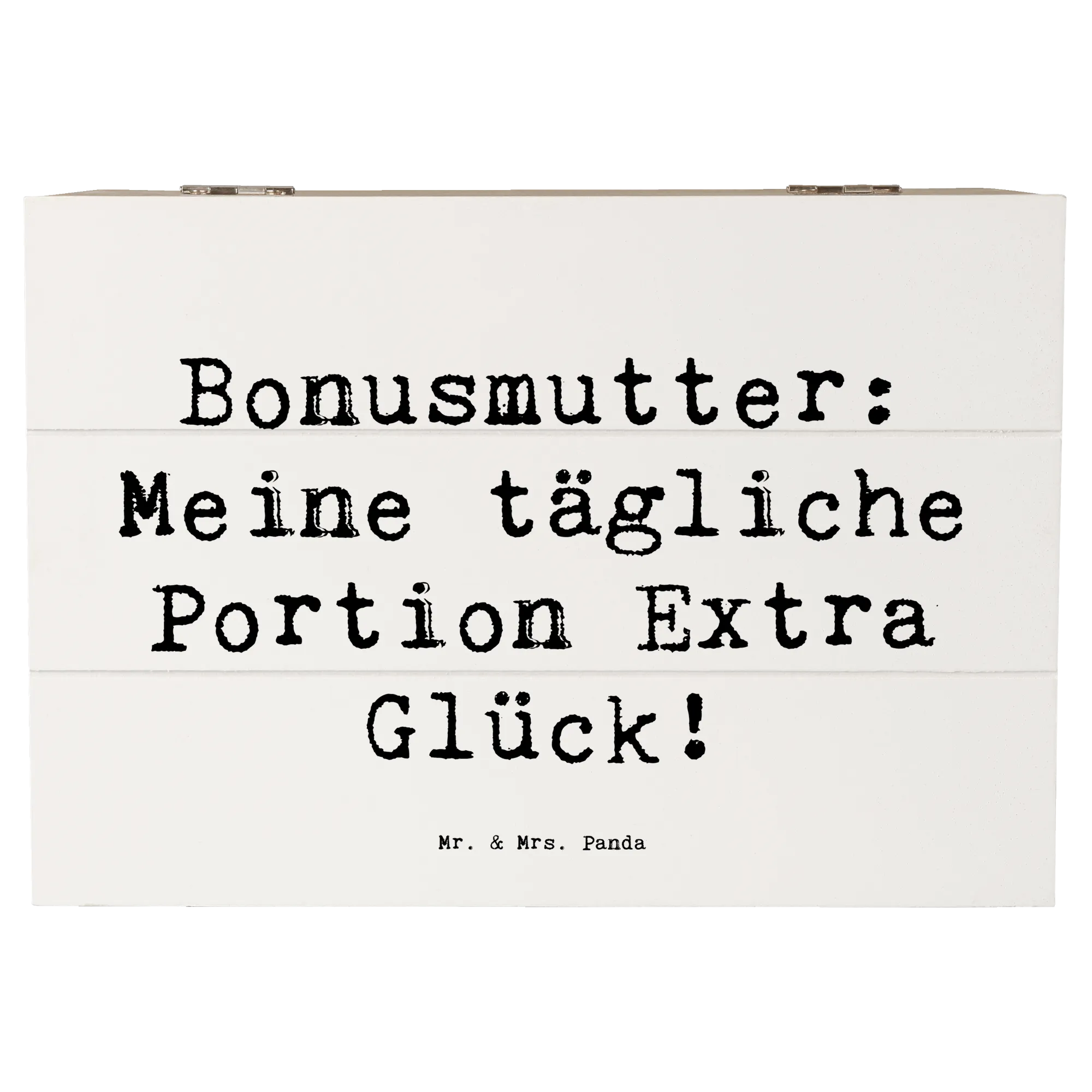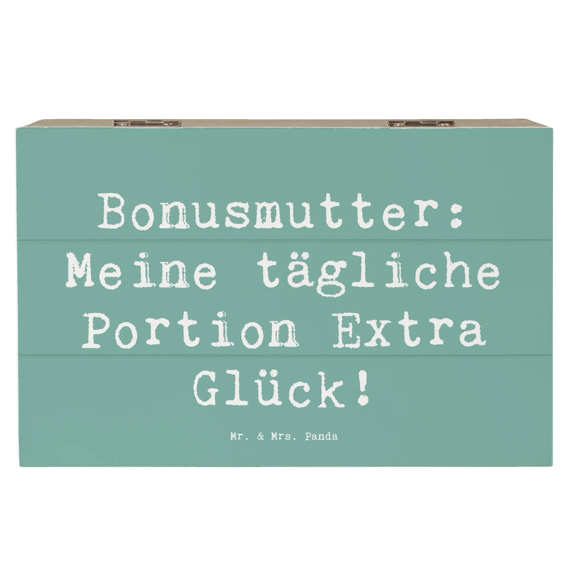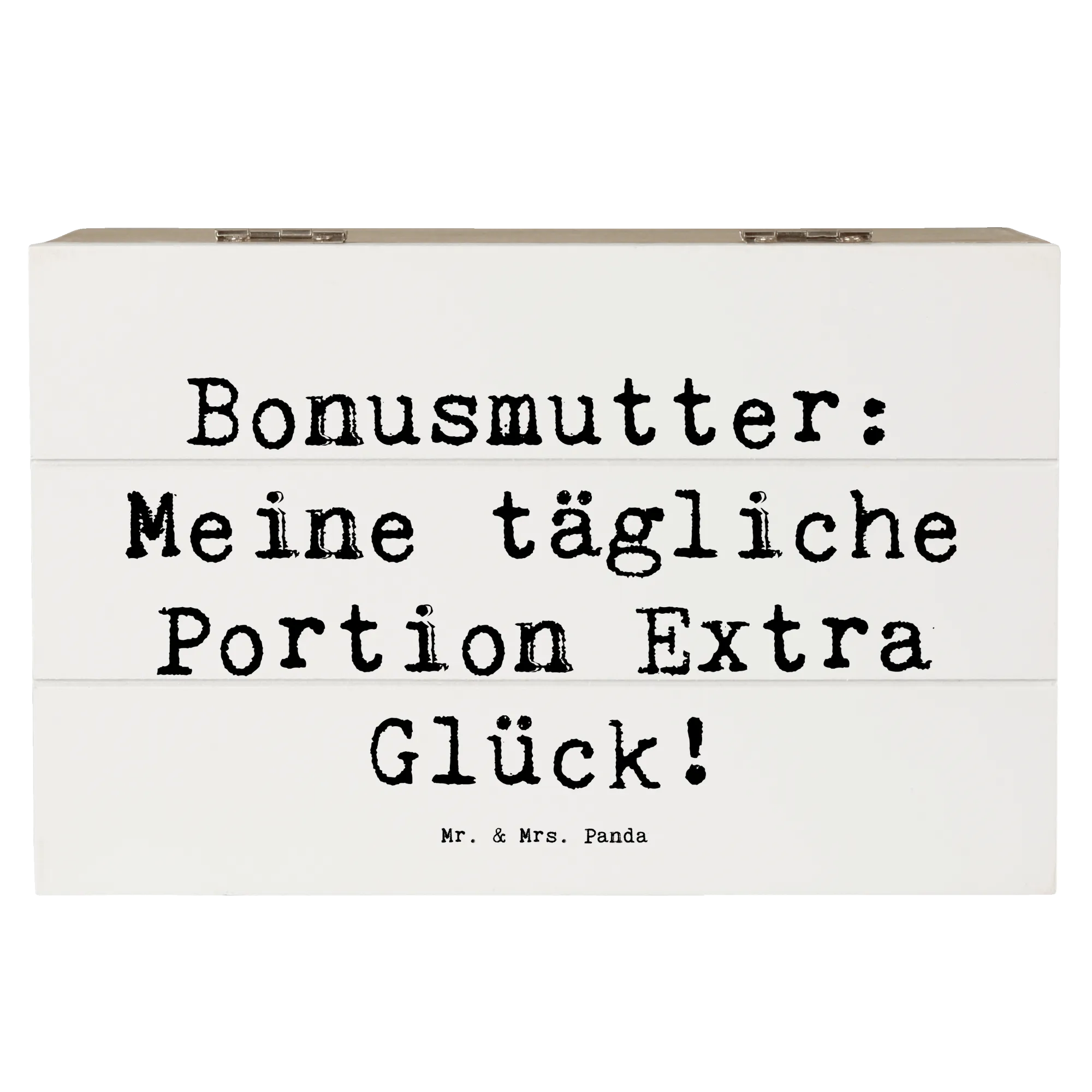 Entdecke die liebevoll gestaltete Holzkiste "Bonusmutter: Meine tägliche Portion Extra Glück!" von Mr. & Mrs. Panda. Diese wunderschöne Kiste aus robuster Holzfaser ist nicht nur eine praktische Aufbewahrungslösung, sondern auch ein ganz besonderes Geschenk für alle Bonusmütter, Stiefmütter oder einfach für Frauen, die eine herausragende Rolle in deinem Leben spielen.