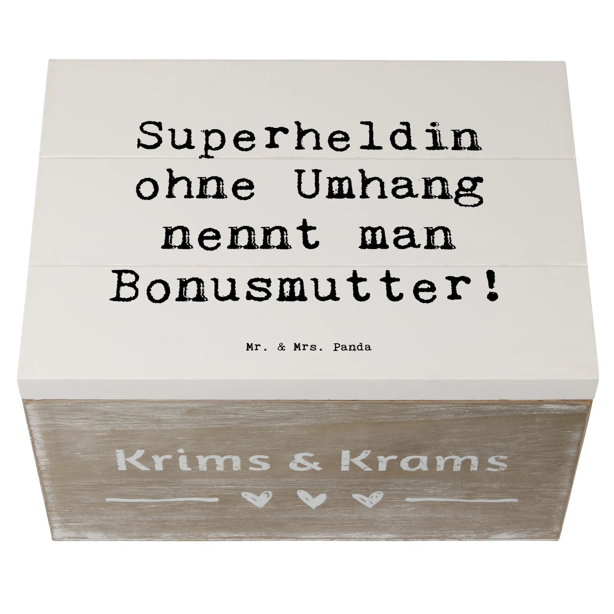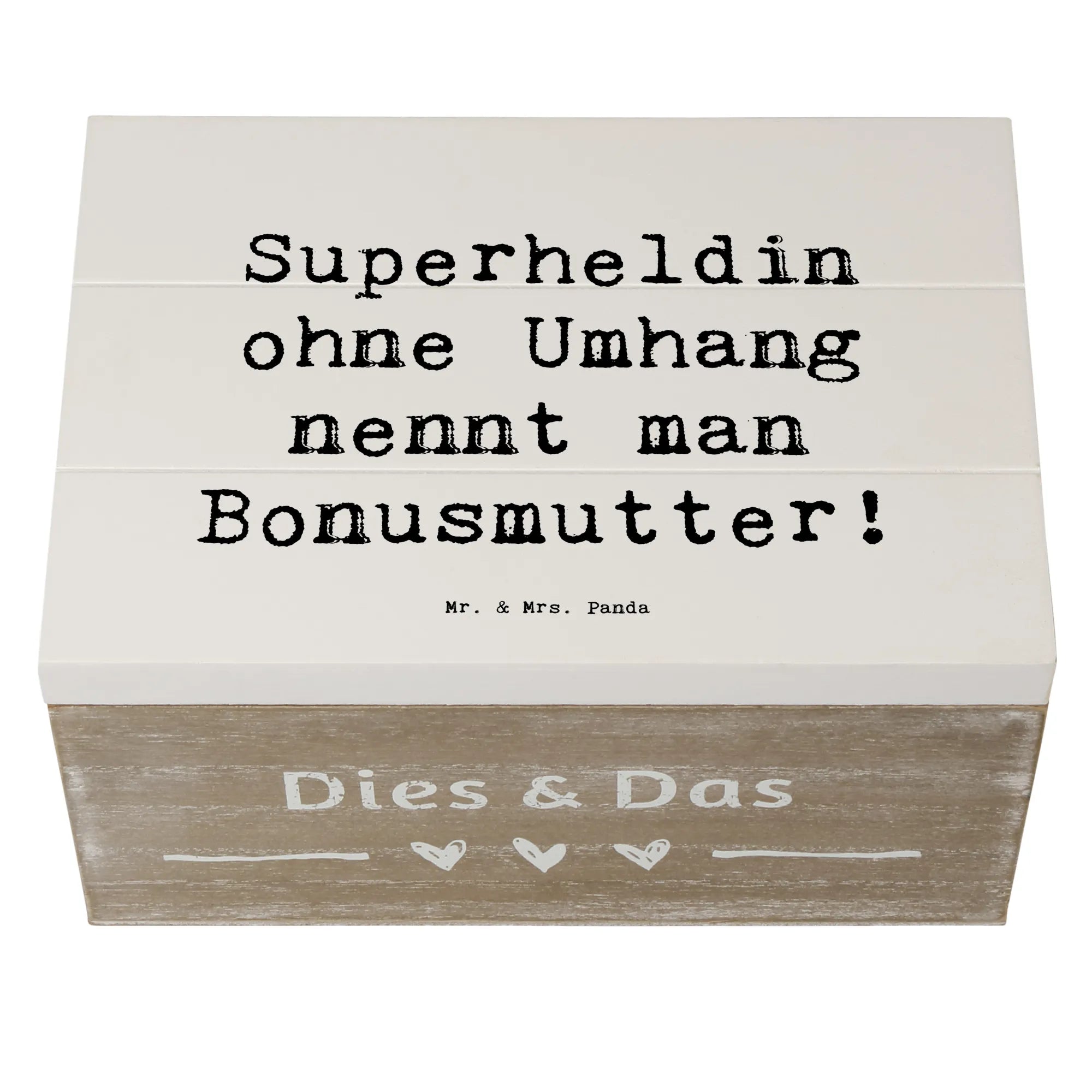 Die wunderschöne Holzkiste von Mr. & Mrs. Panda ist ein absolutes Must-have für jede Bonusmutter! Mit dem liebevollen Spruch "Superheldin ohne Umhang nennt man Bonusmutter!" wird diese Kiste nicht nur zum praktischen Aufbewahrungsort, sondern auch zu einem emotionalen Erinnerungsstück.
