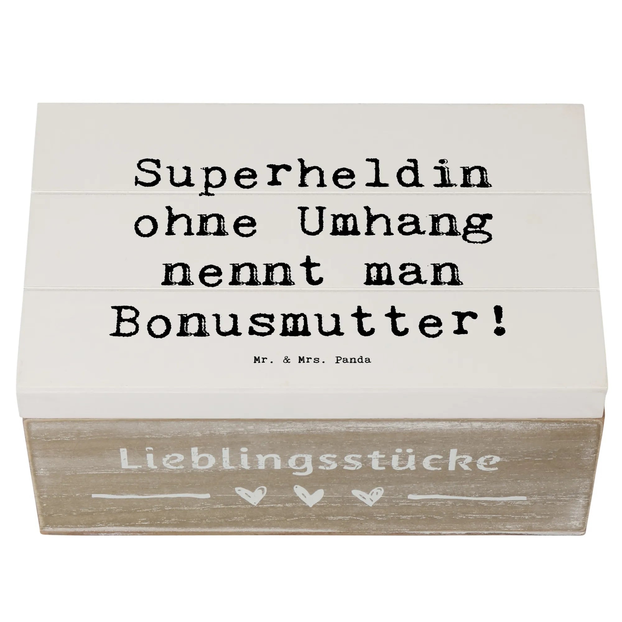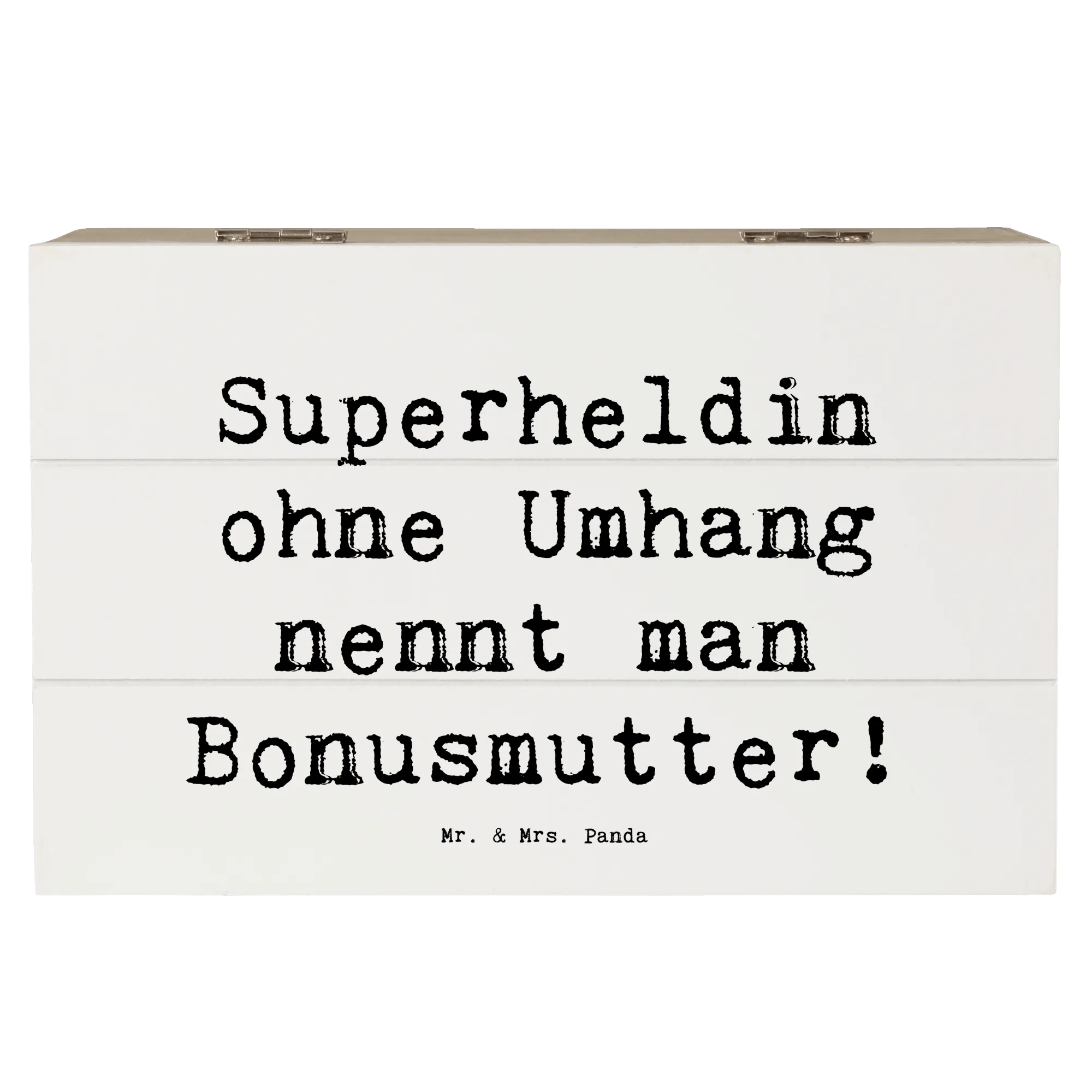 Holzkiste Spruch Bonusmutter Superheld - 22 x 15 cm - Weiß