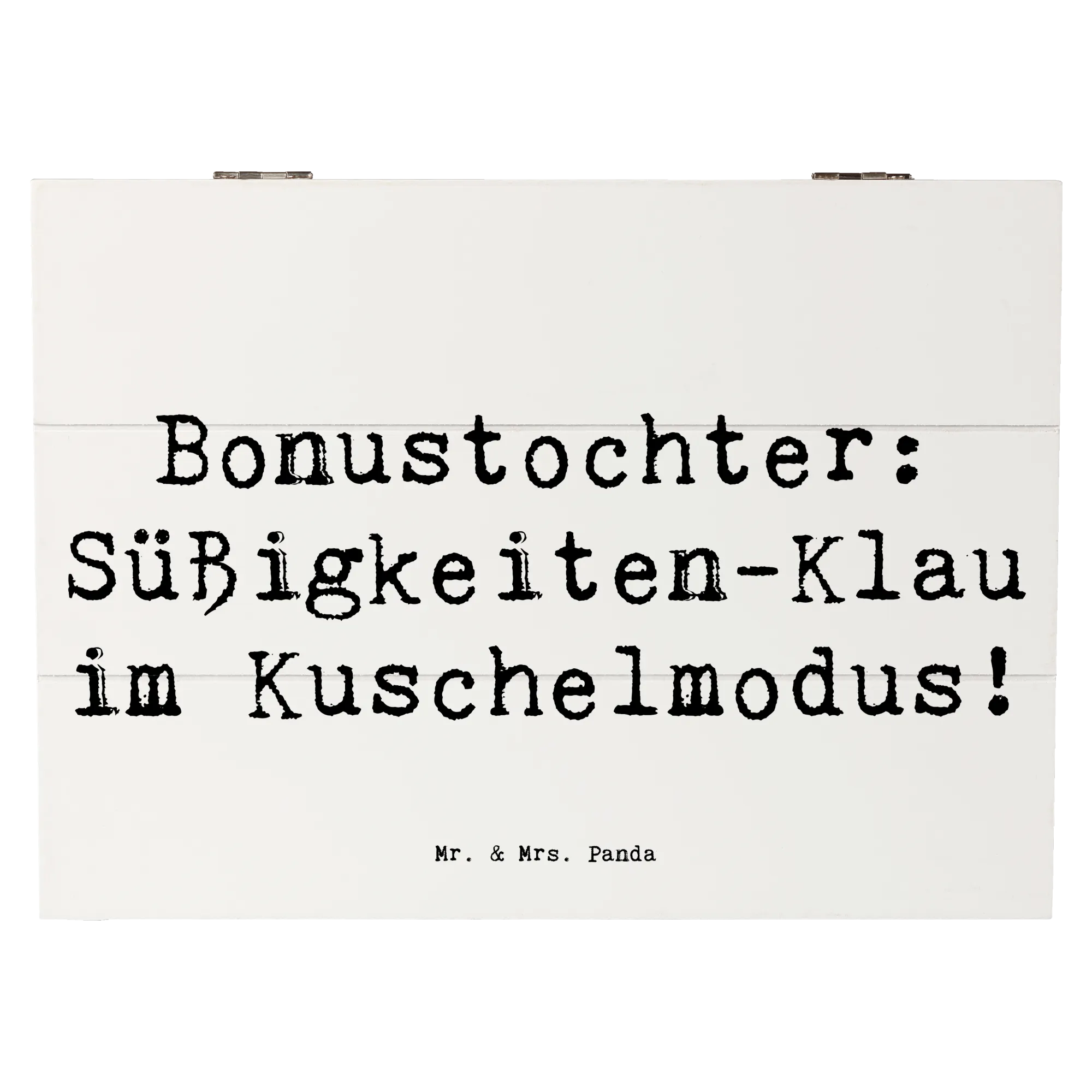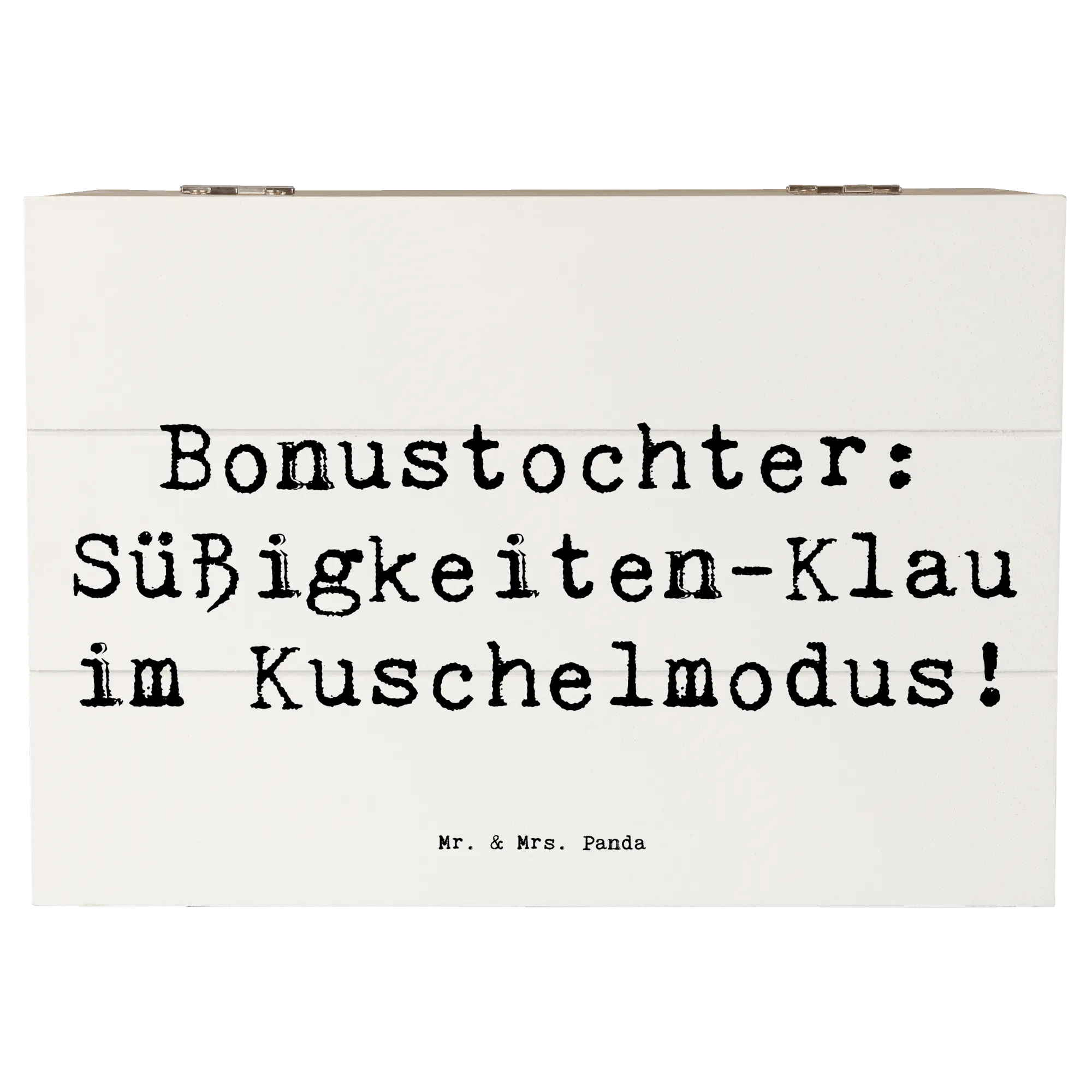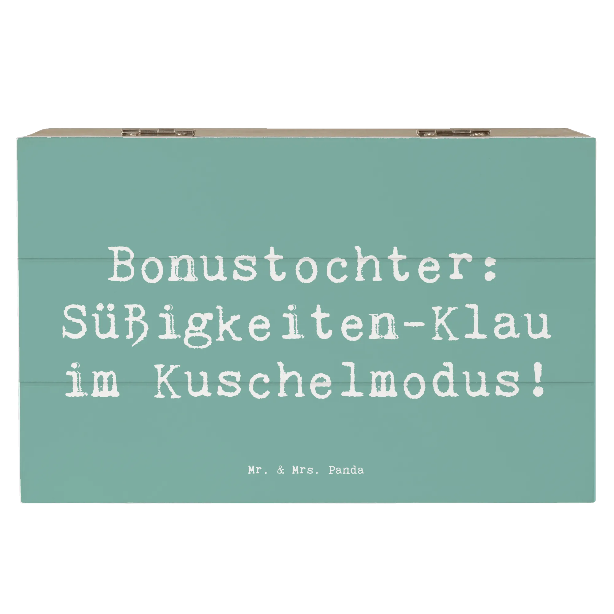 Entdecke die zauberhafte Holzkiste von Mr. & Mrs. Panda, die perfekt für Deine Bonustochter ist! Diese wunderschöne Schatzkiste ist mehr als nur ein Aufbewahrungsort für kleine Schätze. Sie ist ein Ausdruck der besonderen Beziehung, die Du zu Deiner Stieftochter hast. Mit dem charmanten Spruch "Bonustochter: Süßigkeiten-Klau im Kuschelmodus!" zauberst Du ein Lächeln auf ihr Gesicht und zeigst ihr, wie wichtig sie für Dich ist.
