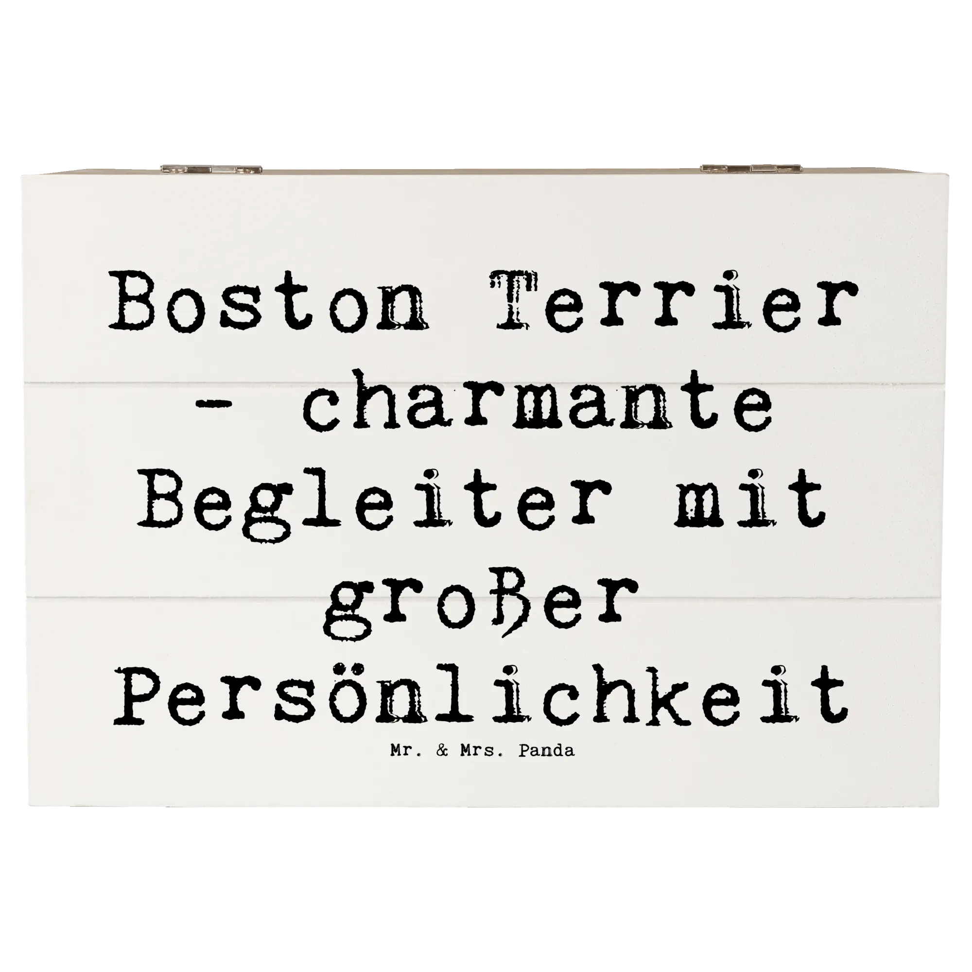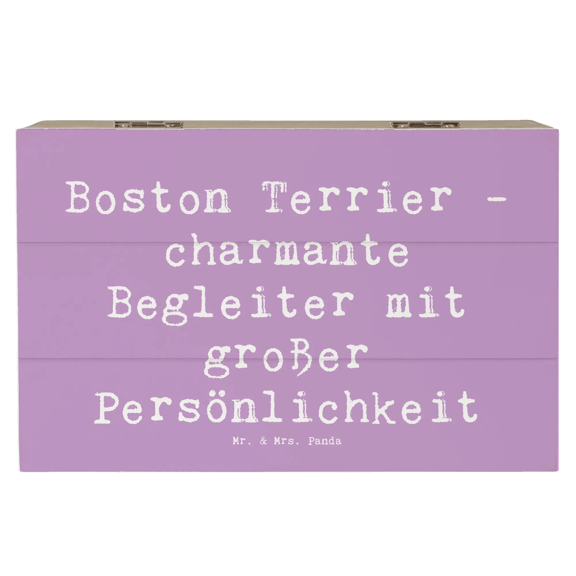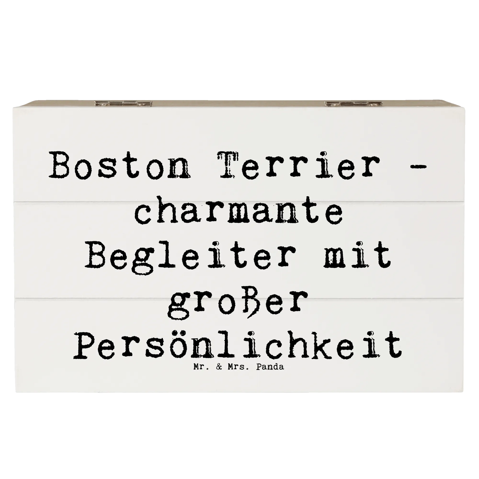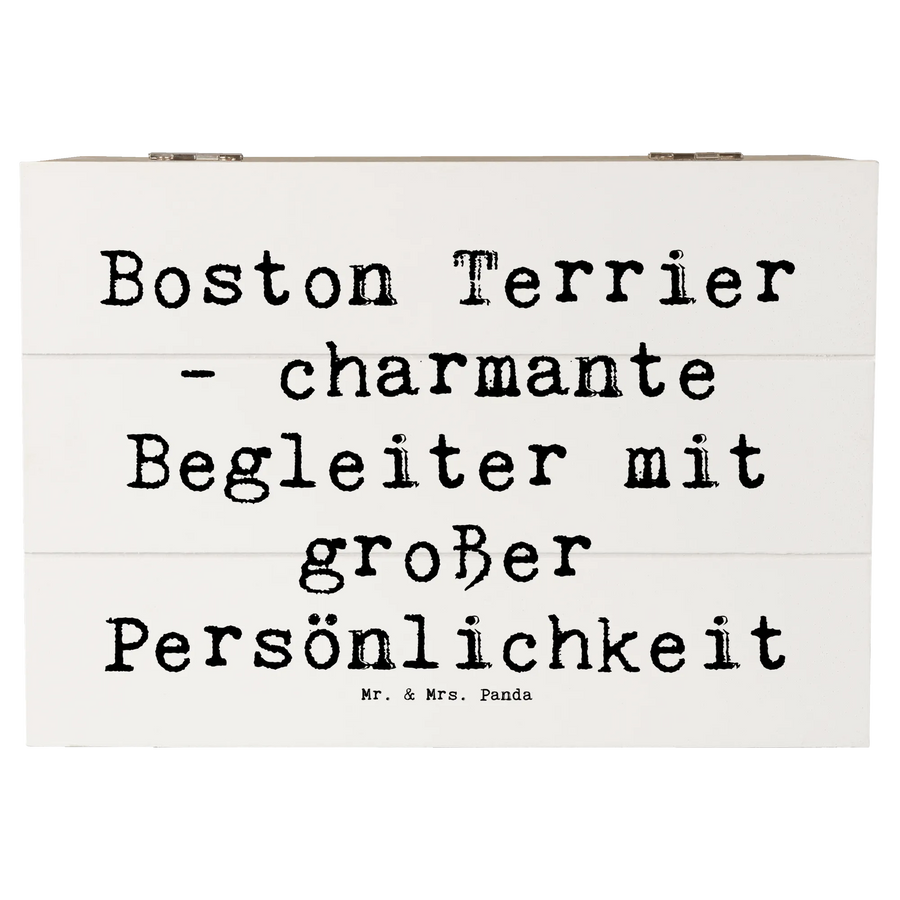 Die wunderschöne Holzkiste von Mr. & Mrs. Panda mit dem Motiv "Boston Terrier - charmante Begleiter mit großer Persönlichkeit" ist das perfekte Geschenk für alle Hundefans! Diese dekorative Kiste ist nicht nur ein stilvoller Hingucker, sondern auch ein praktischer Aufbewahrungsort für all deine Schätze.