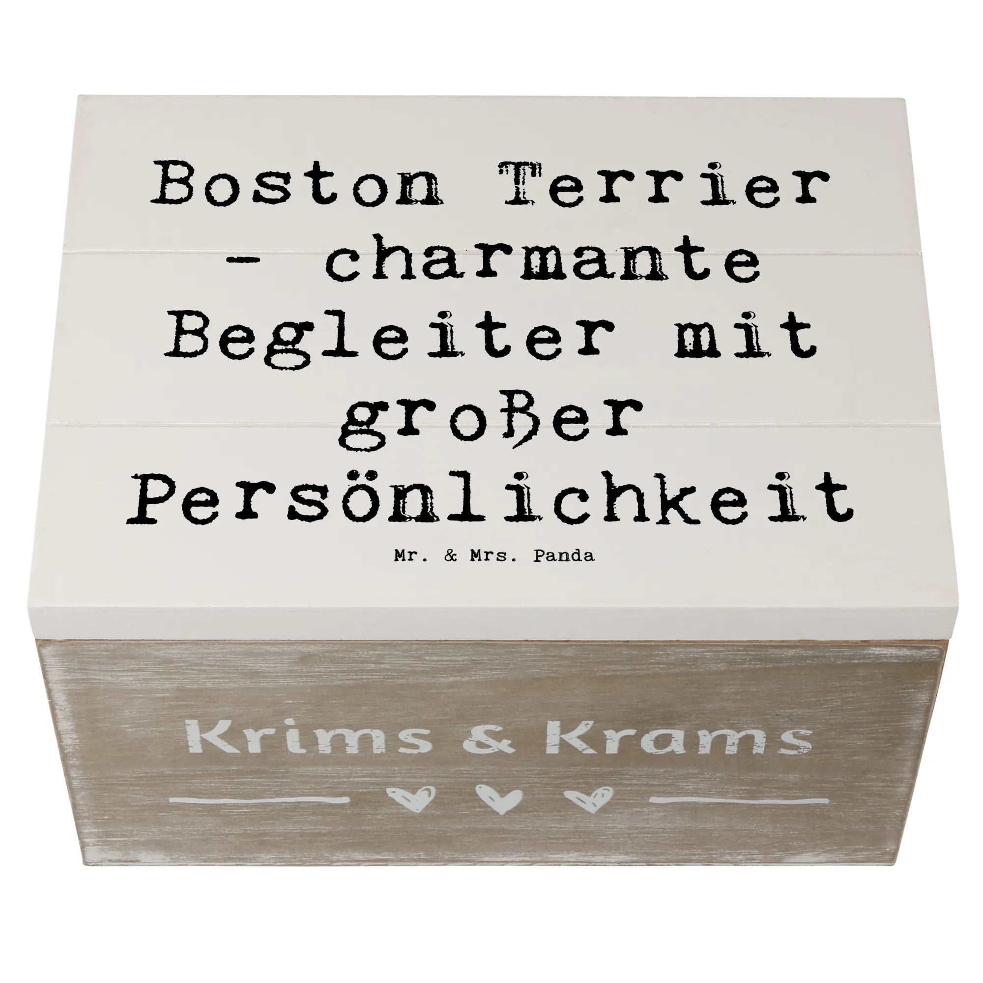 Entdecke die bezaubernde Holzkiste von Mr. & Mrs. Panda, gefertigt aus robuster Premium Hartfaser! Diese Kiste ist nicht nur ein praktischer Aufbewahrungsort, sondern auch ein echter Hingucker mit ihrem süßen Boston Terrier Motiv.
