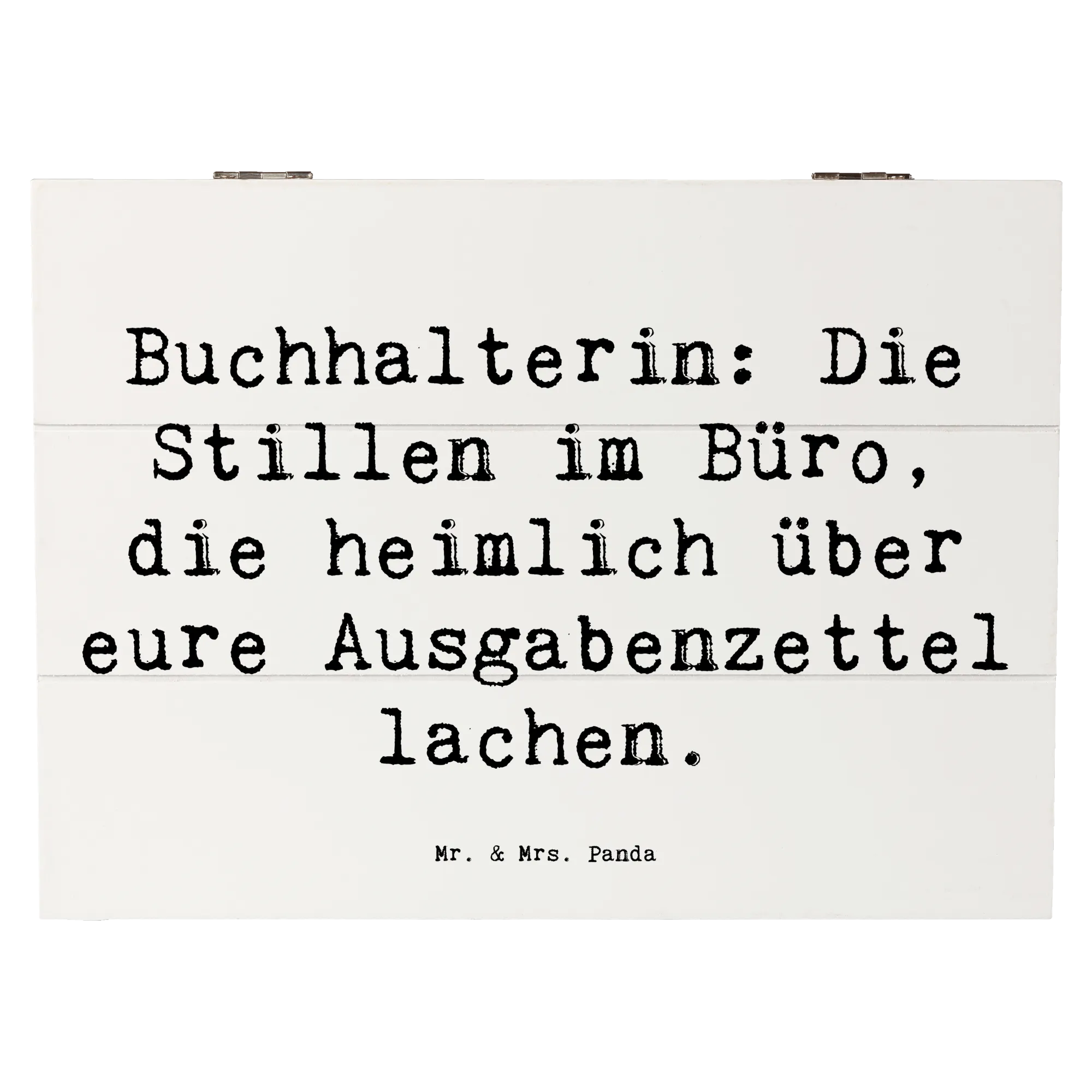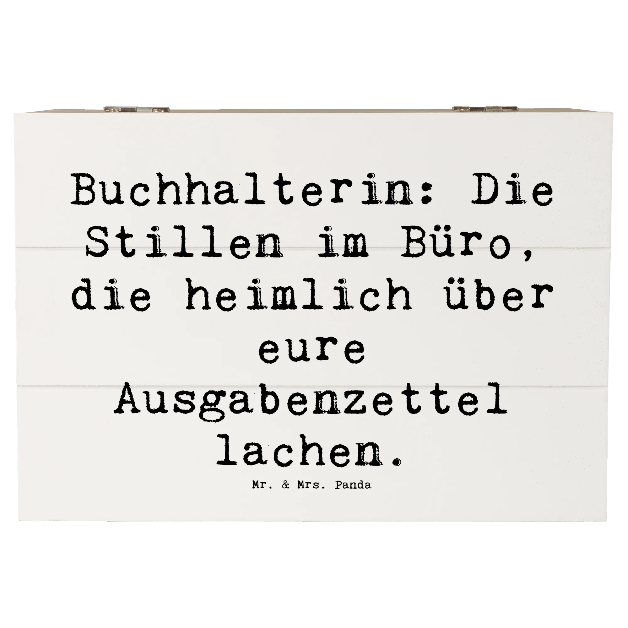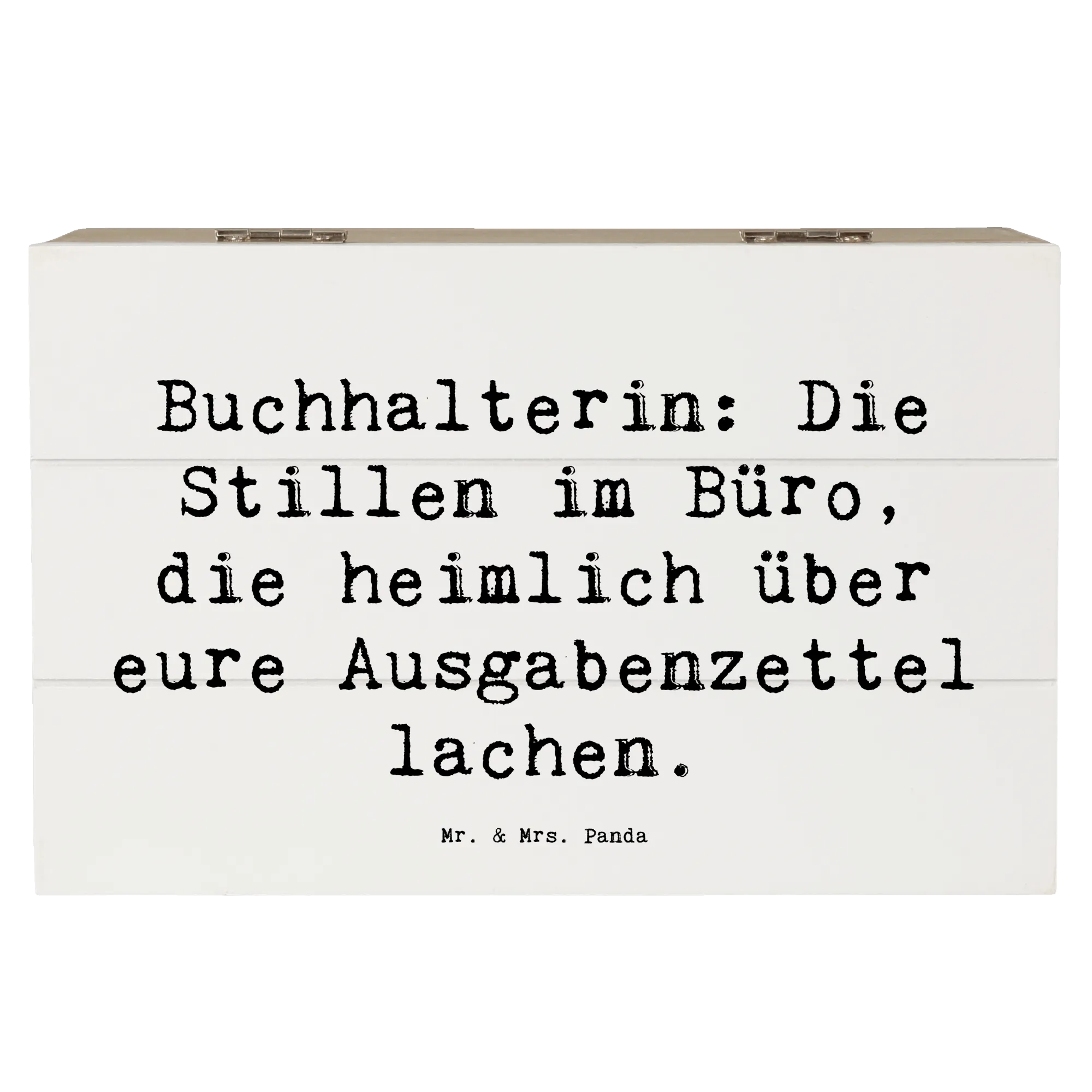 Holzkiste Spruch Buchhalterin: Die Stillen im Büro, die heimlich über eure Ausgabenzettel lachen. - 22 x 15 cm - Weiß