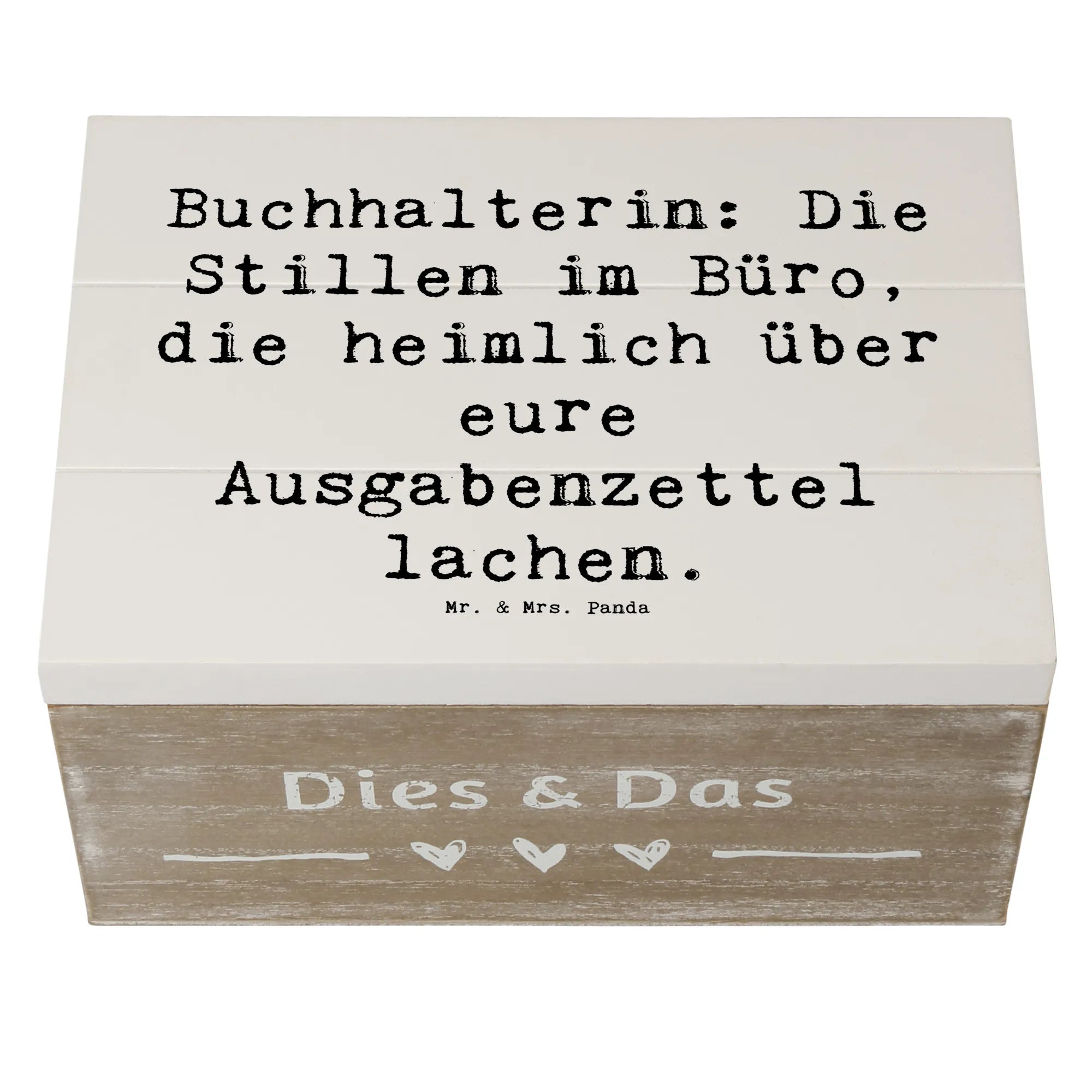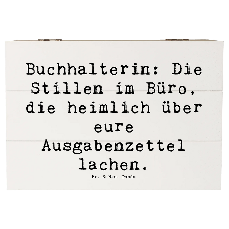 Die wunderschöne Holzkiste von Mr. & Mrs. Panda ist das perfekte Geschenk für alle Buchhalterinnen! Diese Erinnerungsbox ist nicht nur praktisch, sondern auch ein echter Hingucker. Mit dem liebevoll gestalteten Spruch "Buchhalterin: Die Stillen im Büro, die heimlich über eure Ausgabenzettel lachen" bringt die Kiste ein Lächeln in den Büroalltag.