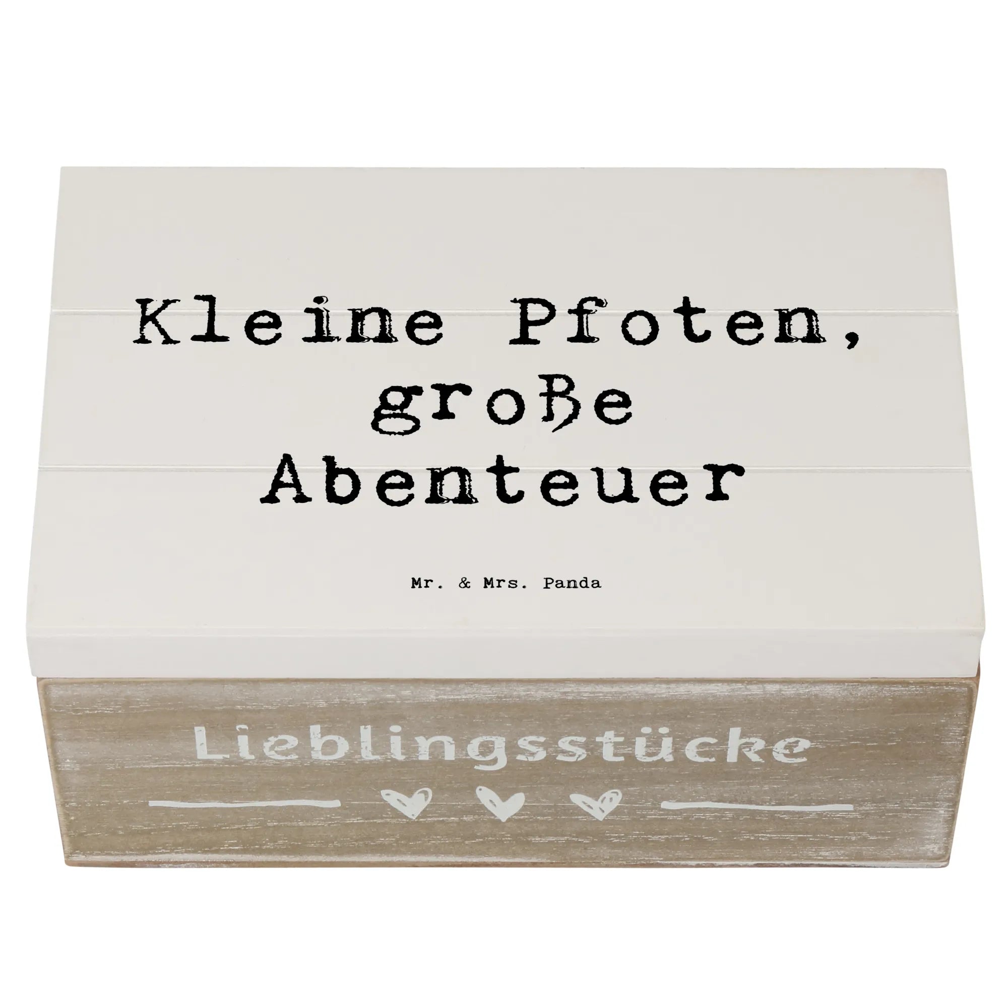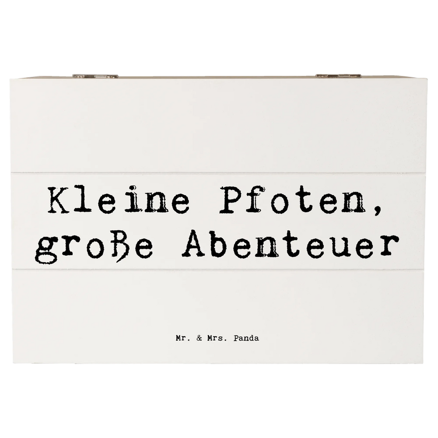 Die wunderschöne Holzkiste von Mr. & Mrs. Panda ist das perfekte Geschenk für alle Hundeliebhaber und besonders für Chihuahua-Fans! Diese einzigartige Erinnerungsbox wurde mit viel Liebe gestaltet und trägt das charmante Motto "Kleine Pfoten, große Abenteuer". Egal ob für eigene Erinnerungen oder als schönes Geschenk, diese Kiste bringt Freude und Nostalgie in jedes Zuhause. Mit den Maßen von 190 mm x 120 mm x 100 mm und einem Gewicht von 350 g bietet sie genügend Platz für all deine Schätze. Ob Du Fotos, kleine Andenken oder besondere Spielsachen aufbewahren möchtest, diese Dekokiste hilft Dir, alles stilvoll zu organisieren.