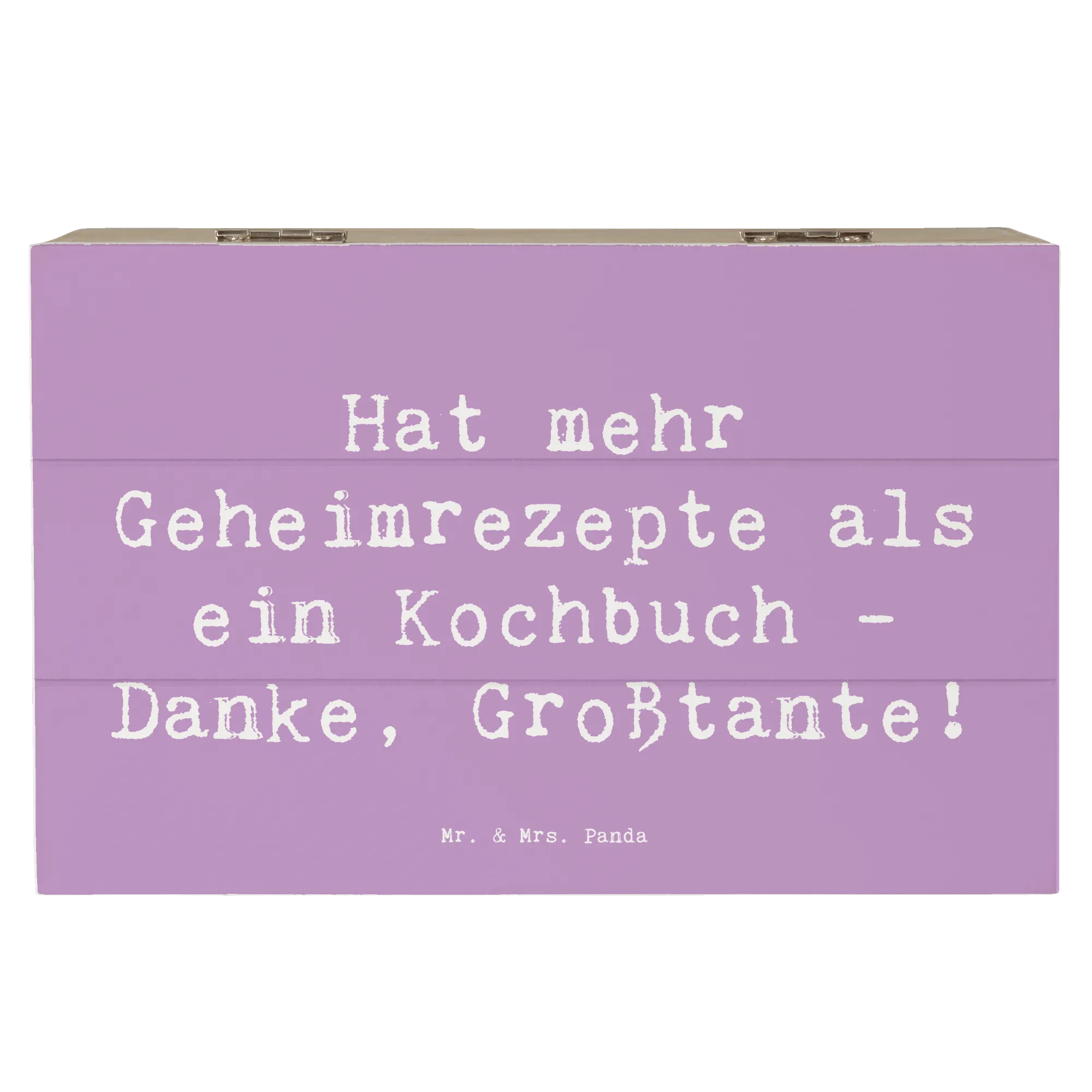 Die wunderschöne Holzkiste von Mr. & Mrs. Panda ist das perfekte Geschenk für Deine Großtante! Diese liebevoll gestaltete Schatzkiste ist nicht nur ein stilvolles Aufbewahrungsobjekt, sondern auch eine wunderschöne Erinnerungsbox, die dazu einlädt, all die besonderen Momente und Schätze des Lebens zu sammeln. Mit einem liebevollen Spruch bedruckt – "Hat mehr Geheimrezepte als ein Kochbuch - Danke, Großtante!" – drückt diese Kiste die Wertschätzung und Dankbarkeit aus, die viele von uns für diese besonderen Familienmitglieder empfinden.